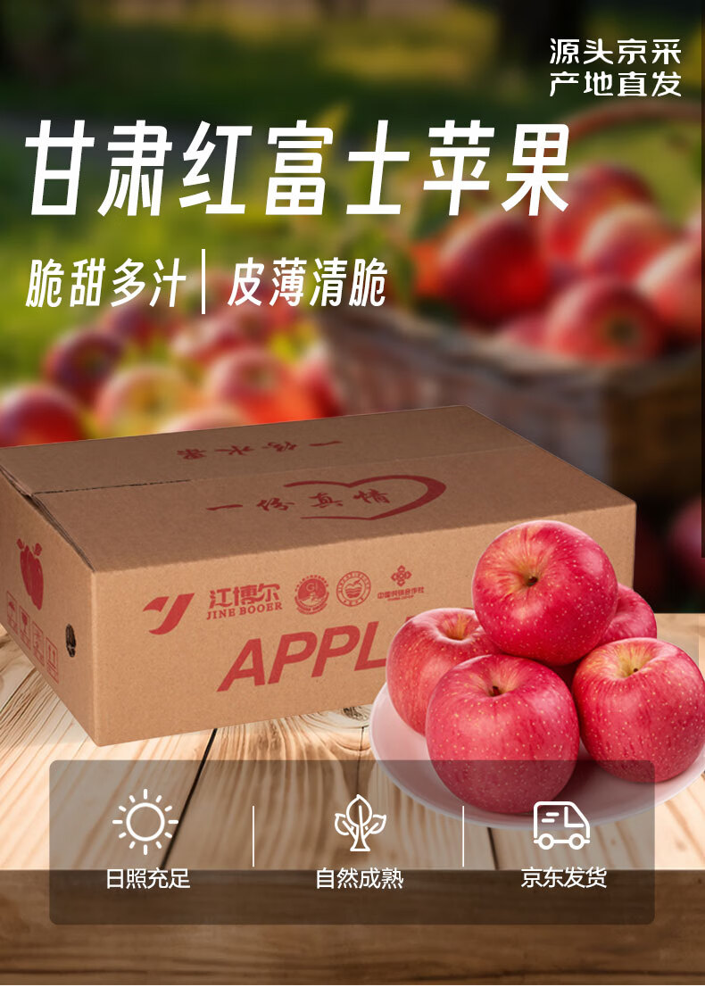 京觅甘肃冰糖心苹果 净重4.5斤单果70mm+新鲜水果红富士苹果源头直发
