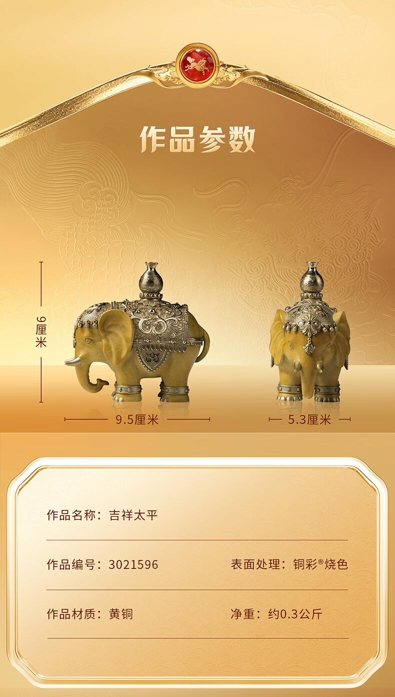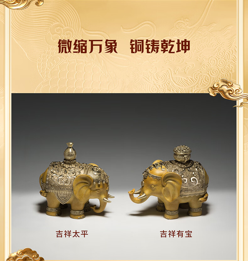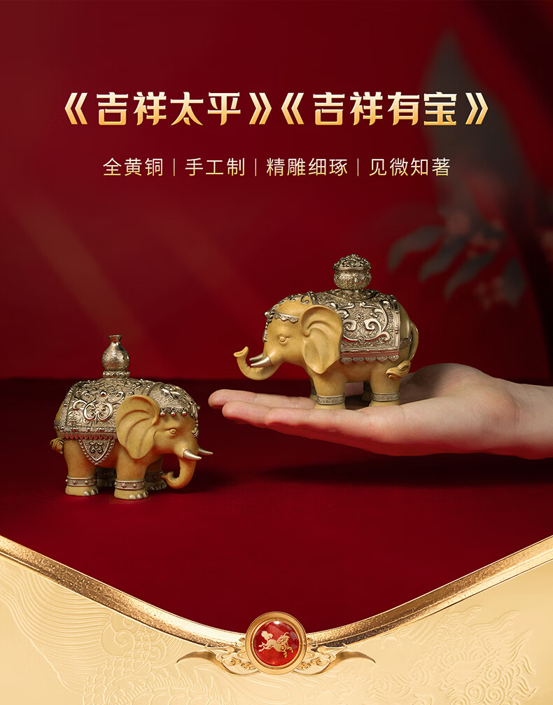 铜师傅见微系列《吉祥太平》《吉祥有宝》铜大象摆件 乔迁礼物 吉祥太平