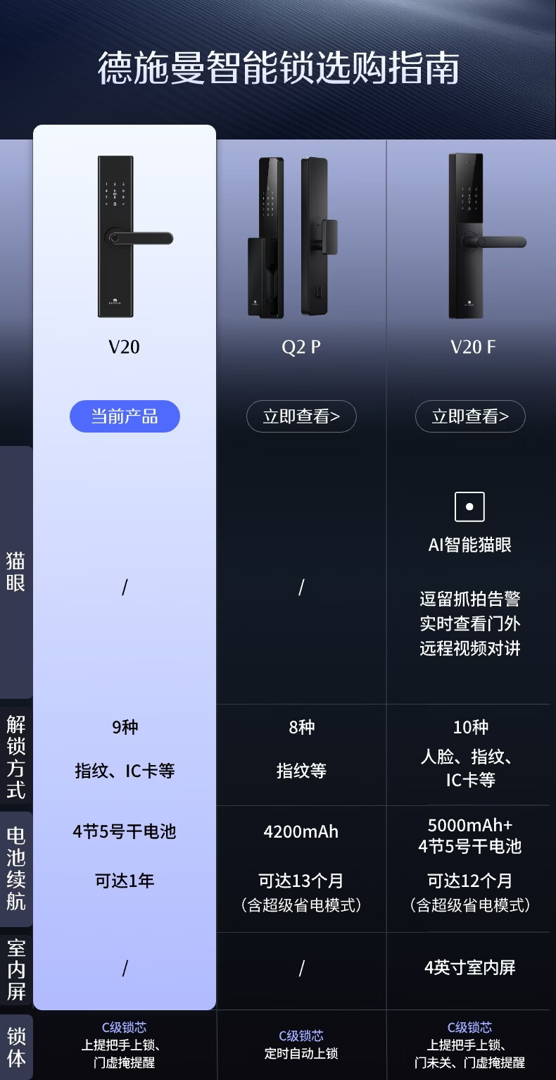 德施曼(DESMAN)智能门锁家用防盗锁指纹密码识别小嘀V20【一价全包】
