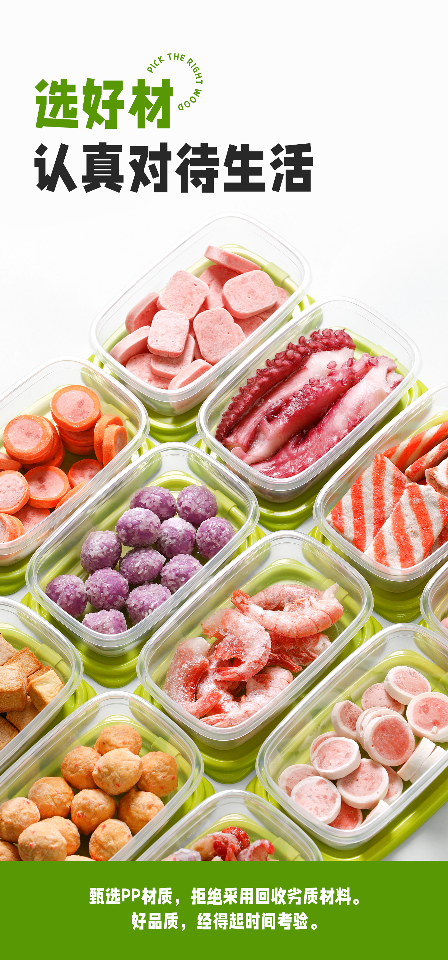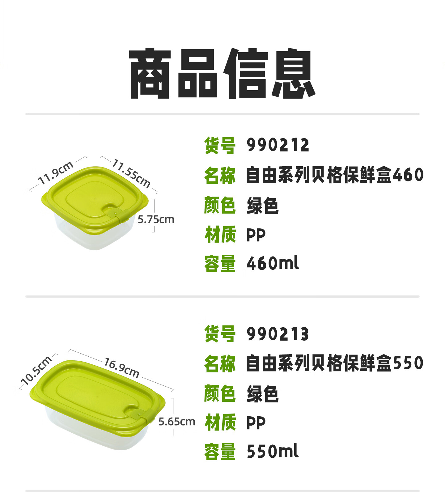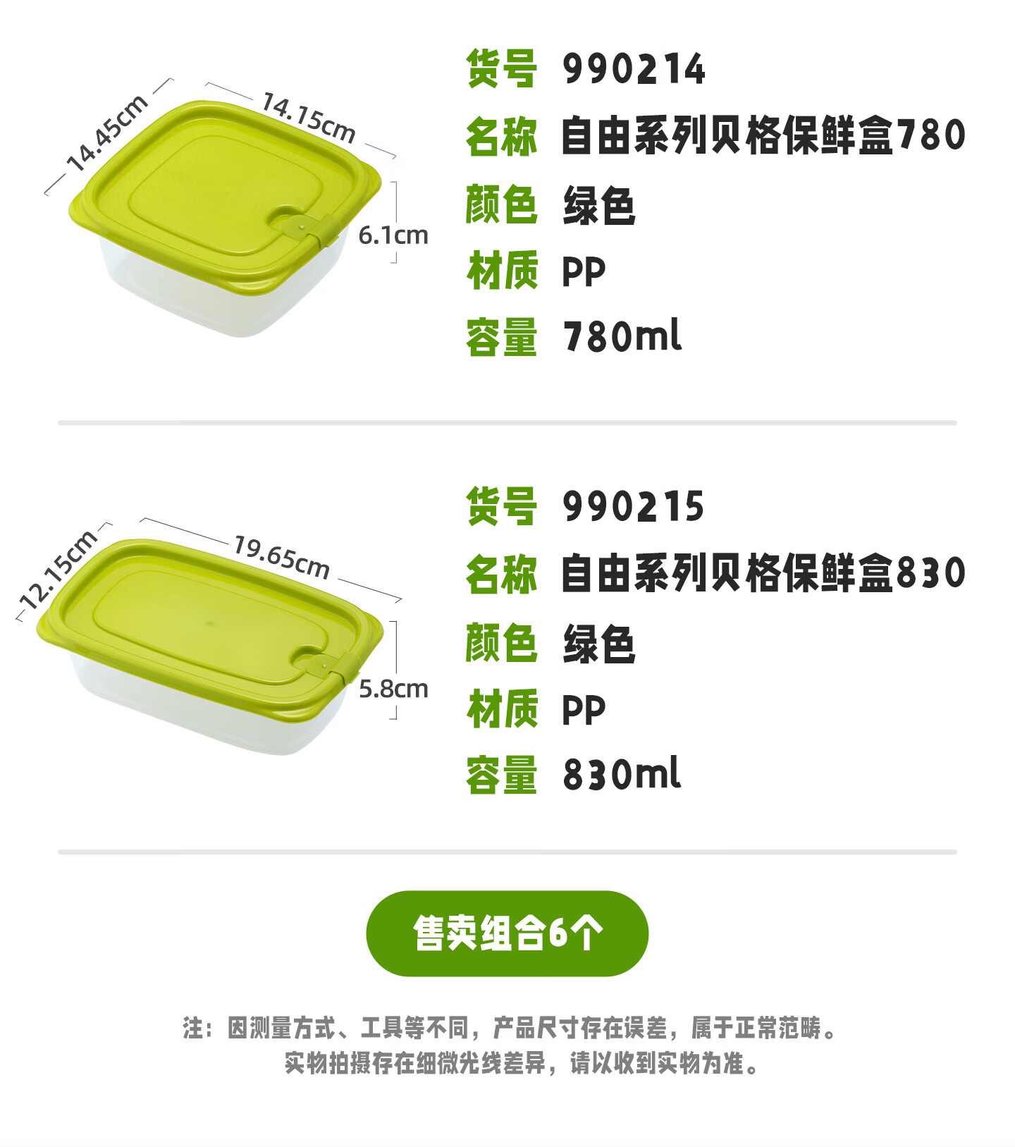 CHAHUA茶花收纳盒保鲜盒储物盒露营餐盒可循环使用 一套#6个装【绿色】830ML