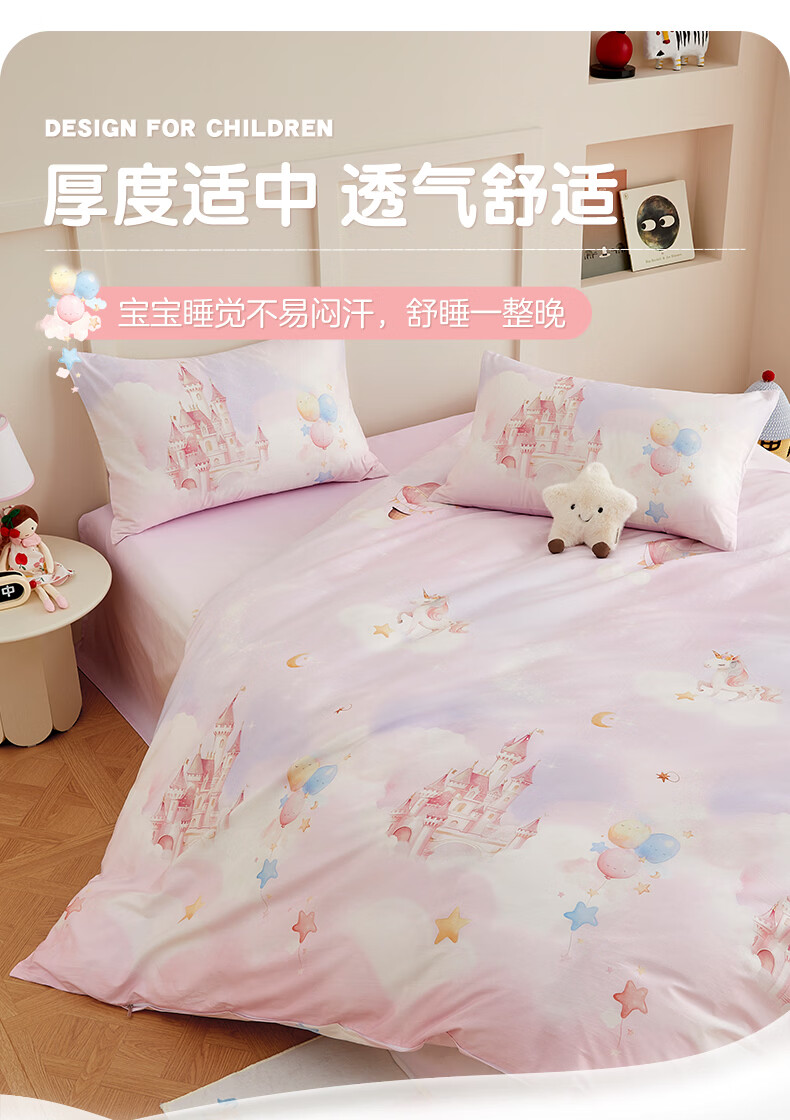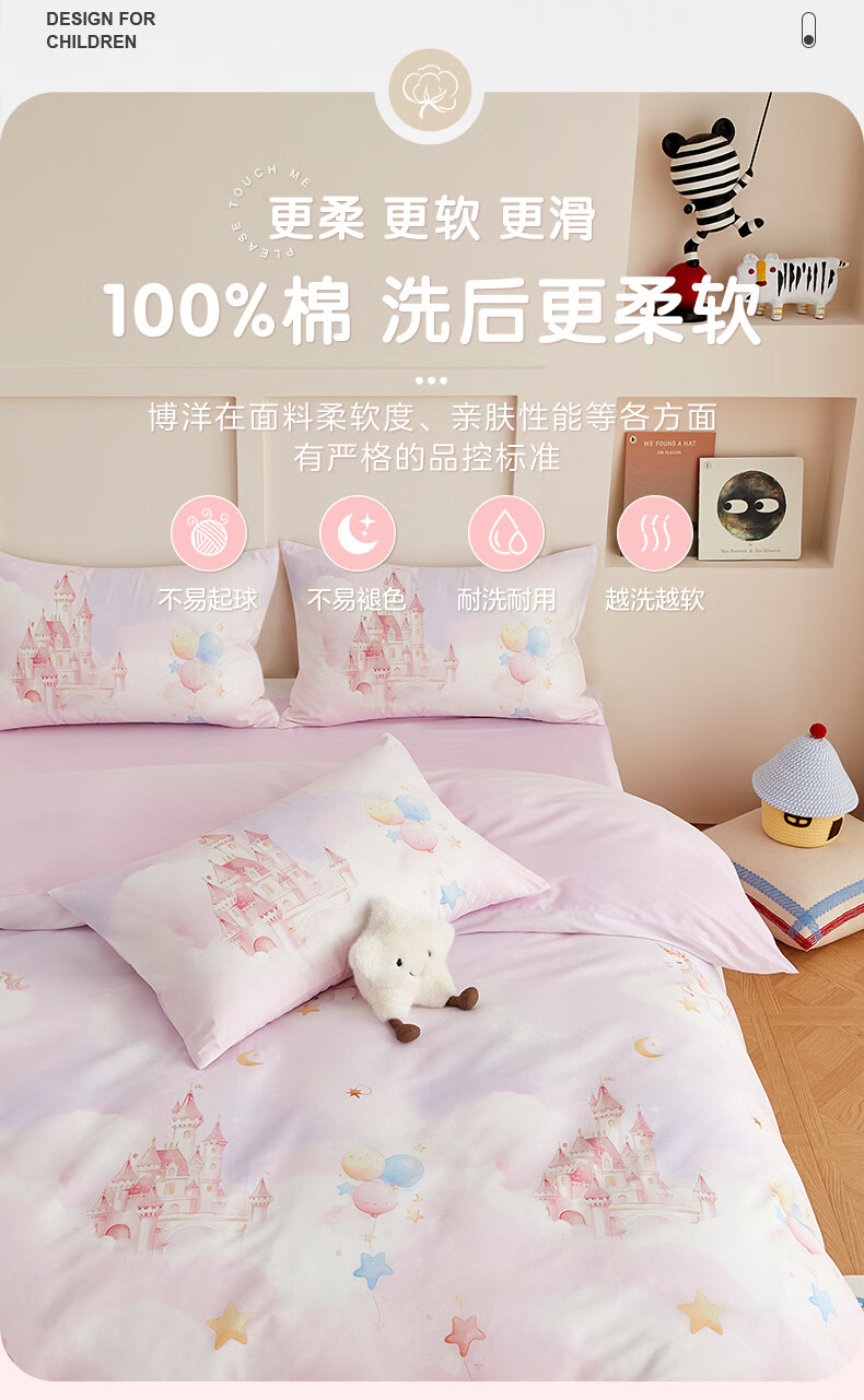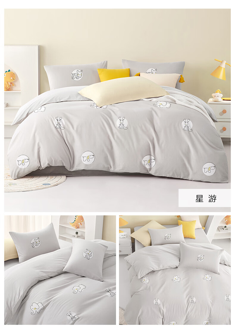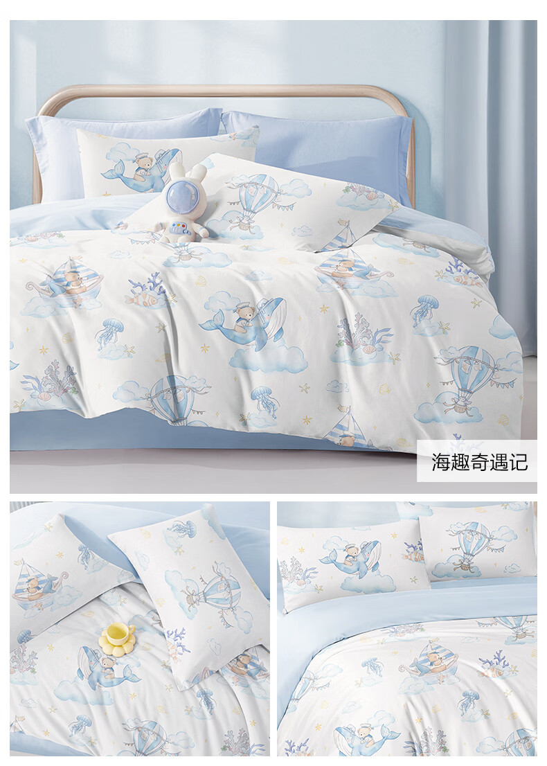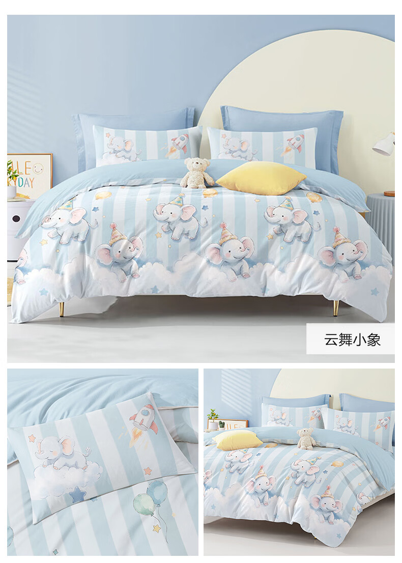 博洋宝贝(Beyond Kids)儿童全棉四件套卡通风可爱学生宿舍三件套四季可用纯棉儿童套件 全棉套件—云舞小象 120cm 床单款 (被套150*210cm) 三件套