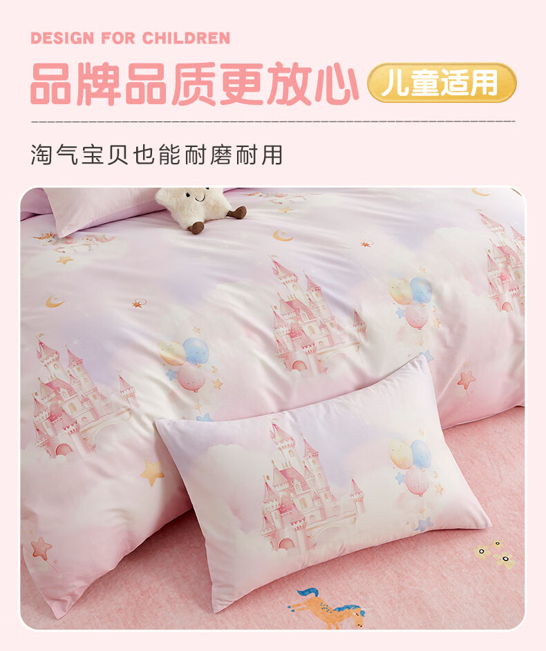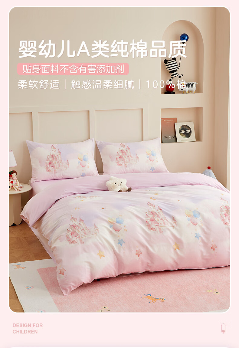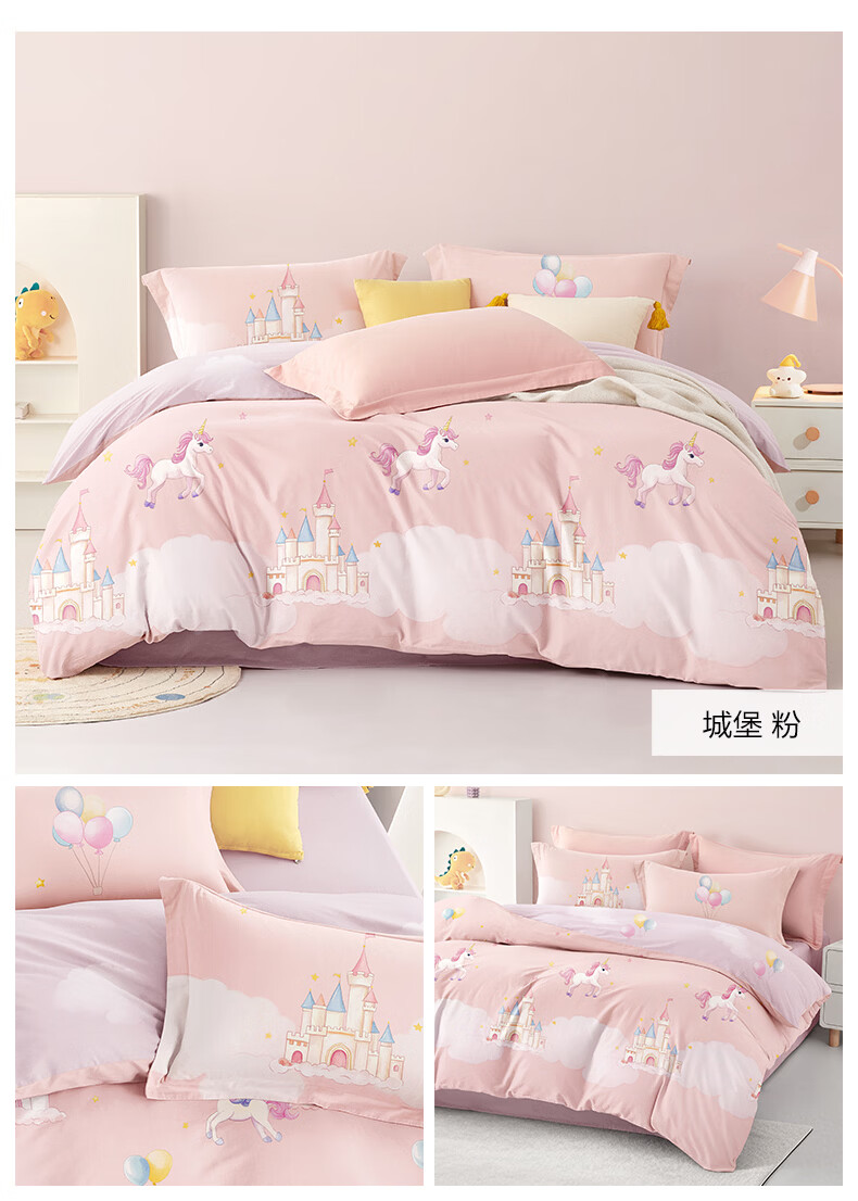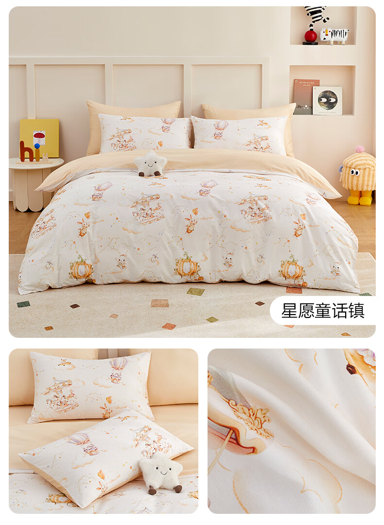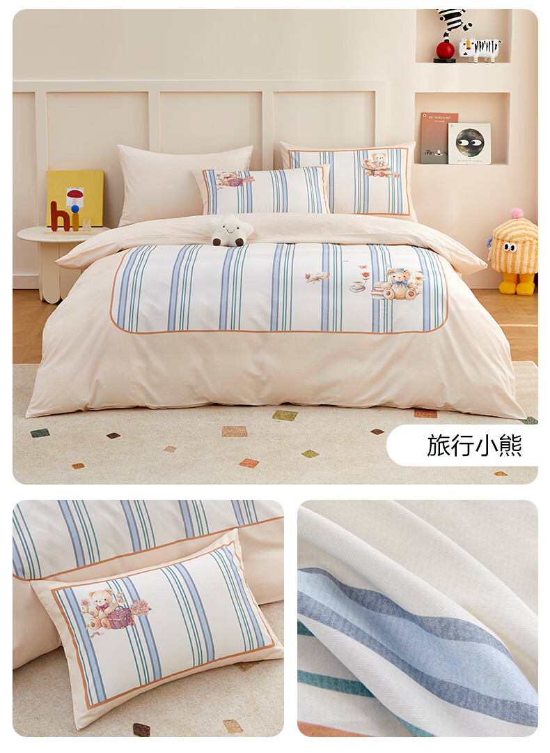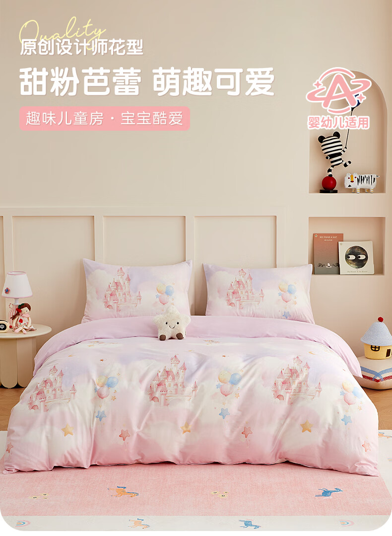 博洋宝贝(Beyond Kids)儿童全棉四件套卡通风可爱学生宿舍三件套四季可用纯棉儿童套件 全棉套件—云舞小象 120cm 床单款 (被套150*210cm) 三件套