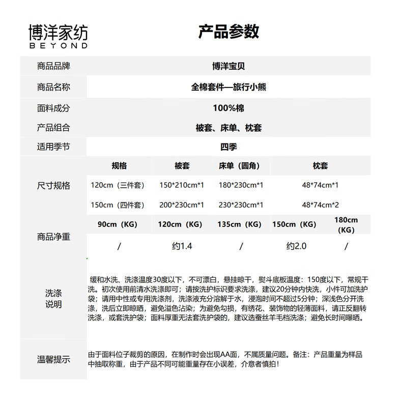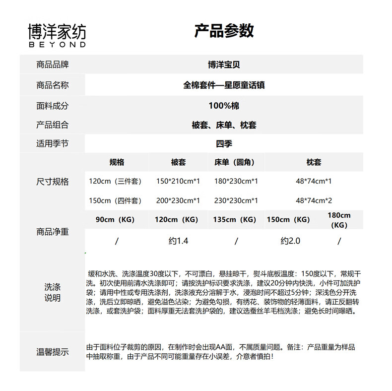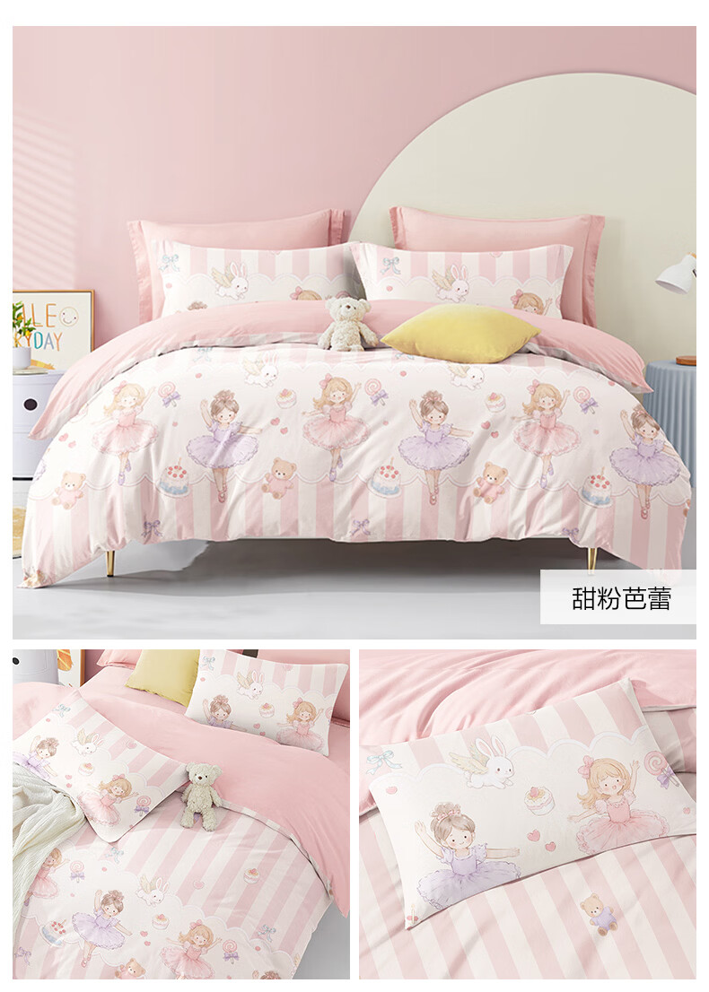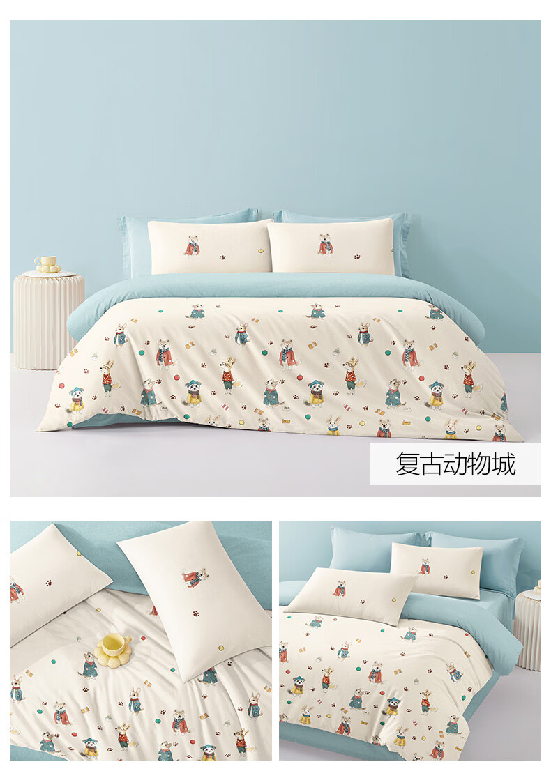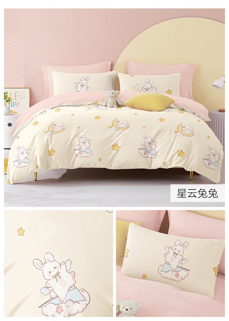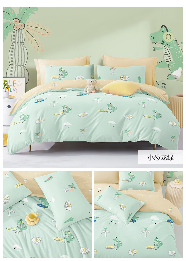 博洋宝贝(Beyond Kids)儿童全棉四件套卡通风可爱学生宿舍三件套四季可用纯棉儿童套件 全棉套件—云舞小象 120cm 床单款 (被套150*210cm) 三件套