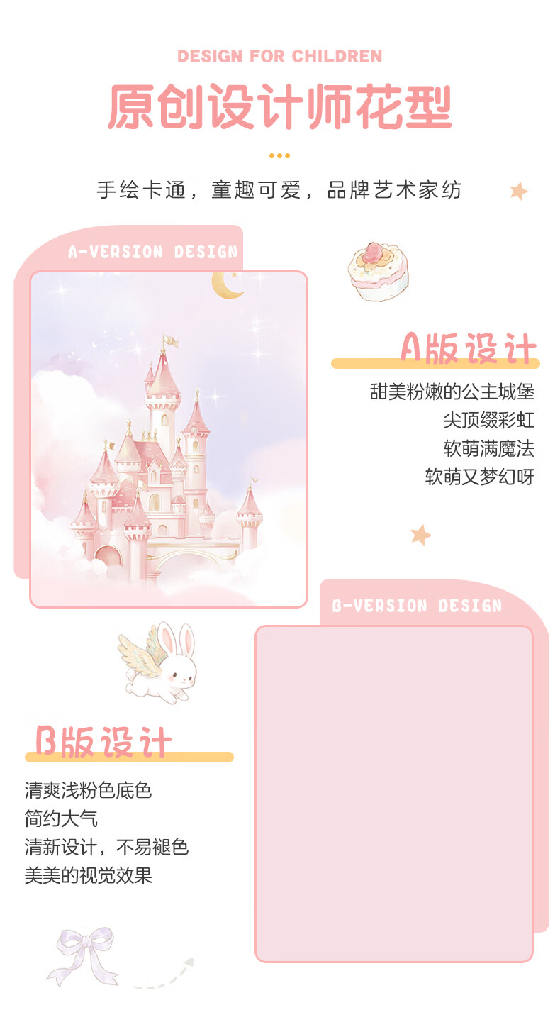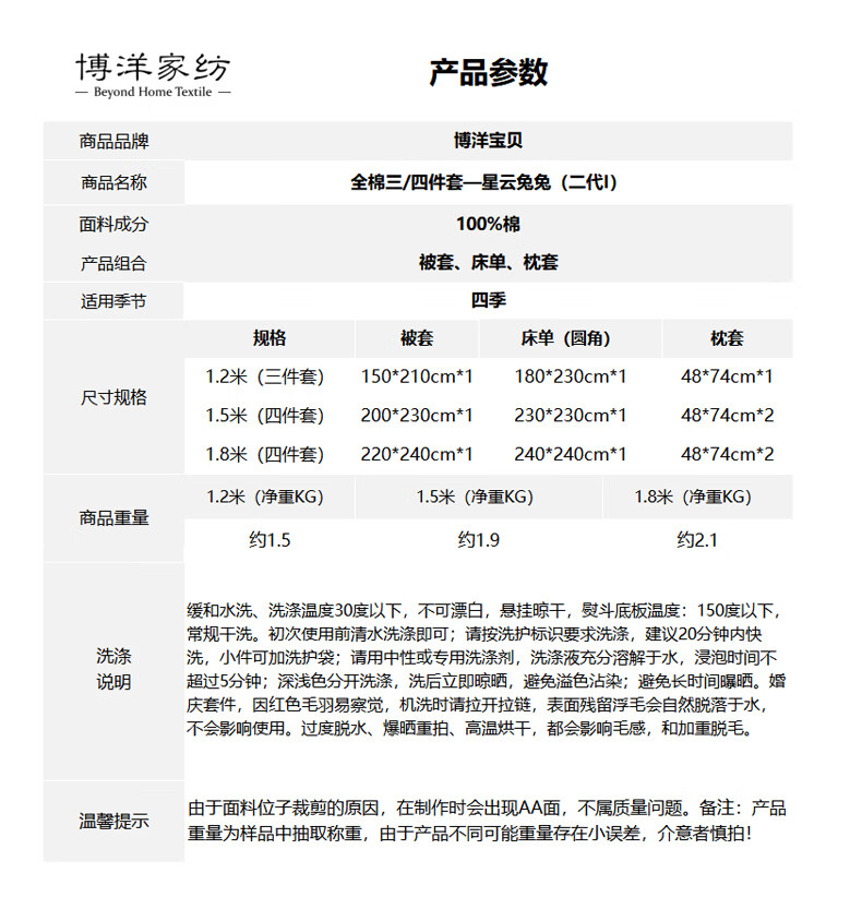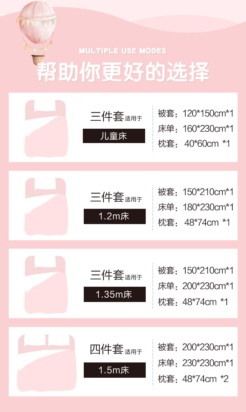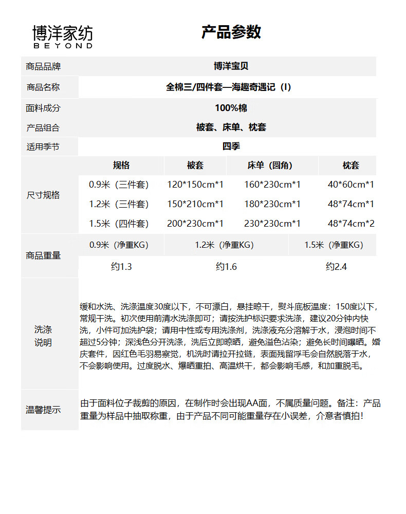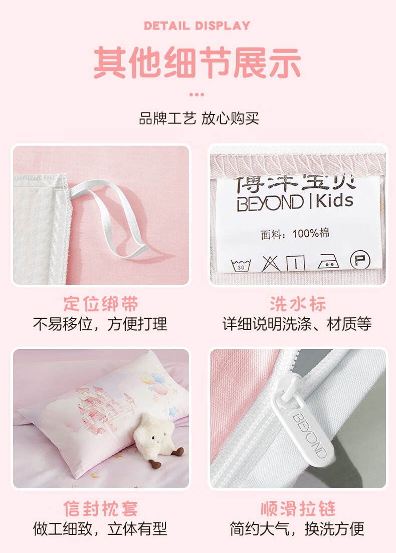 博洋宝贝(Beyond Kids)儿童全棉四件套卡通风可爱学生宿舍三件套四季可用纯棉儿童套件 全棉套件—云舞小象 120cm 床单款 (被套150*210cm) 三件套