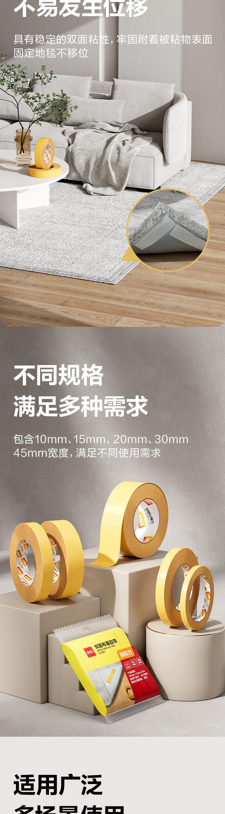 得力(deli)强力双面布基胶带防风加厚网格双面胶 30mm*20m 地毯无痕固定婚庆春联粘贴 1卷 30803