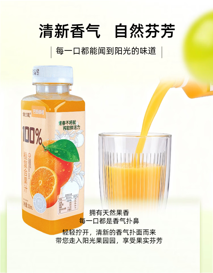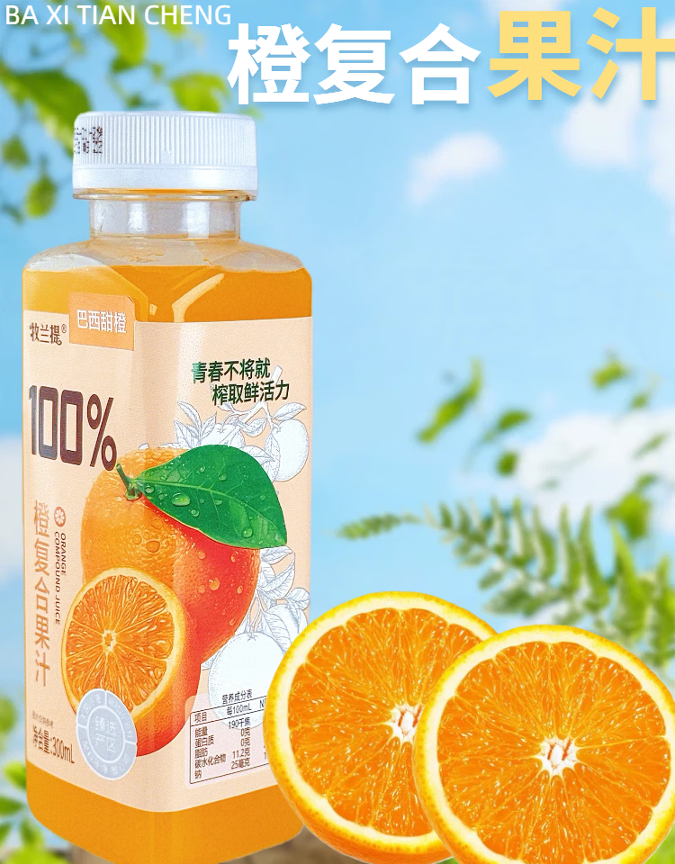 牧兰提100%橙复合果汁无菌冷罐300ml商超网红同款方便携带火锅烧烤 300ml*20瓶 整箱分享装