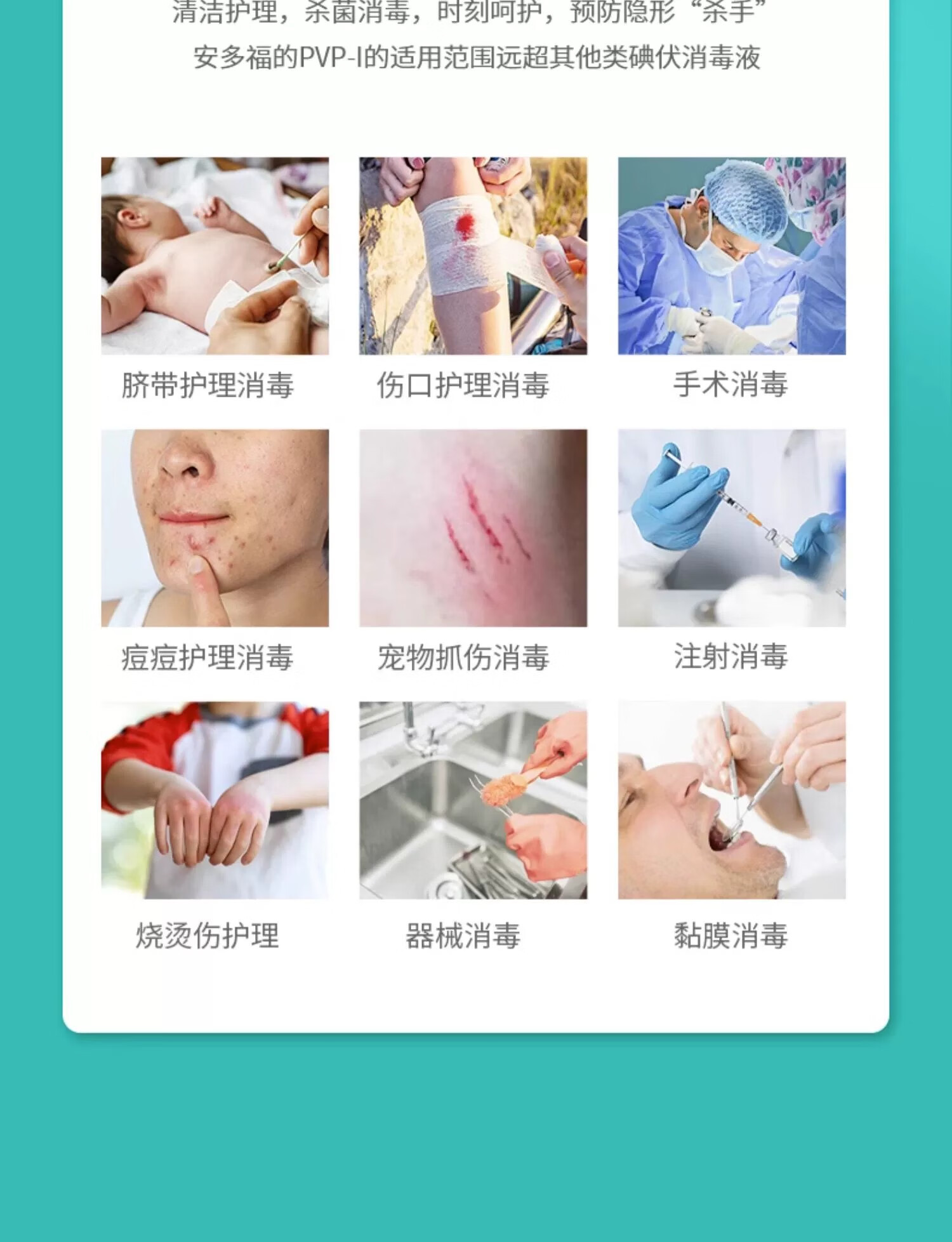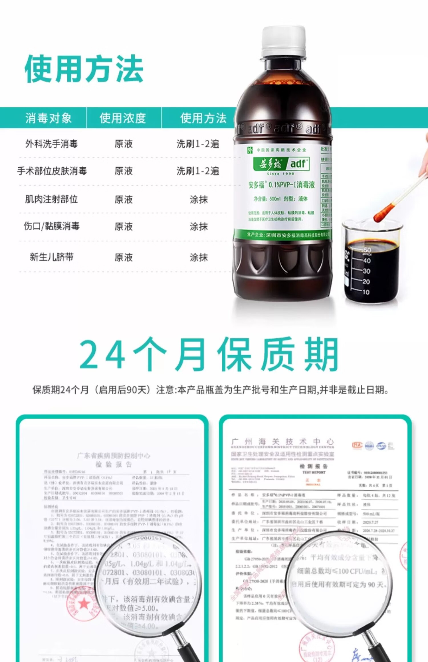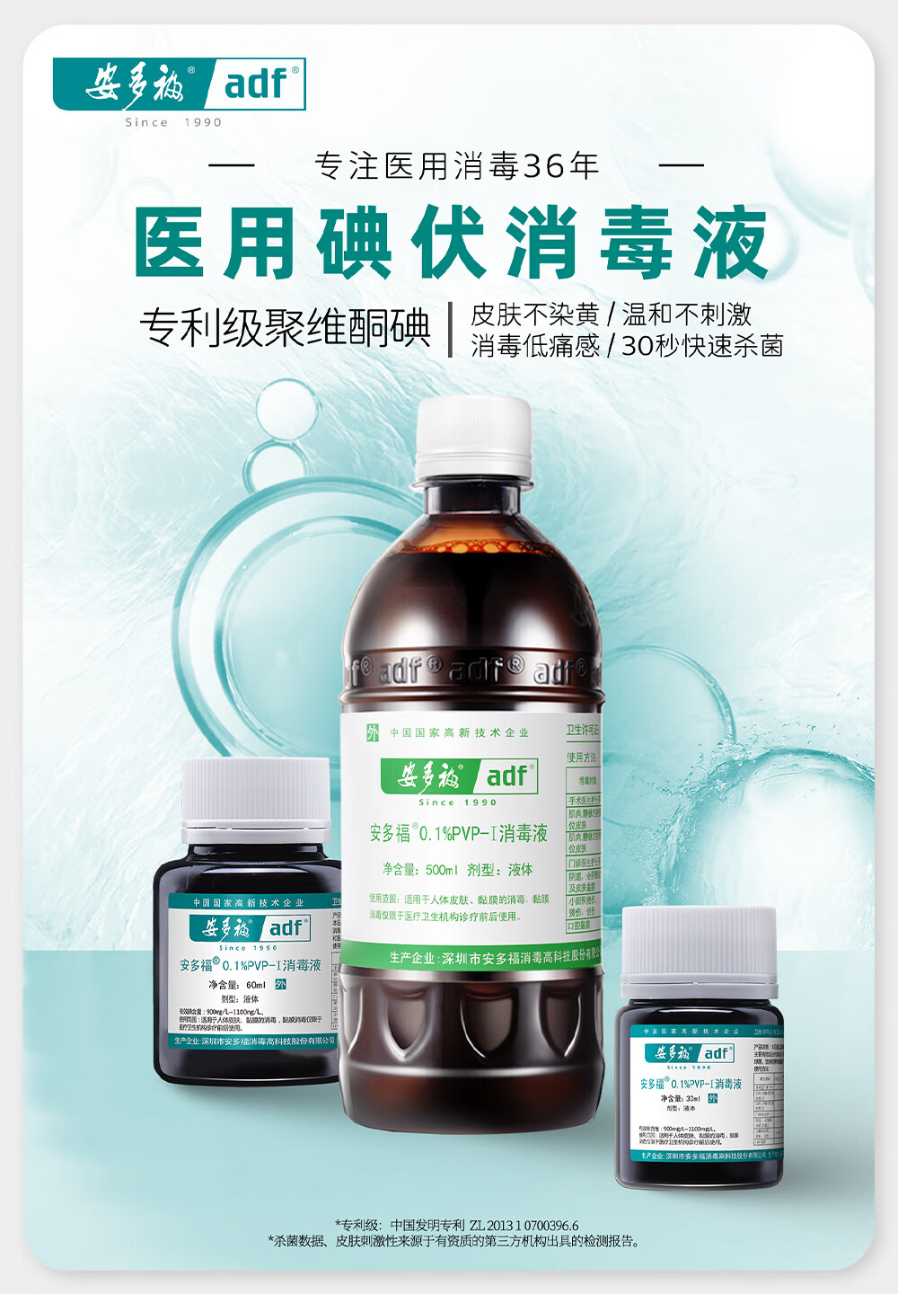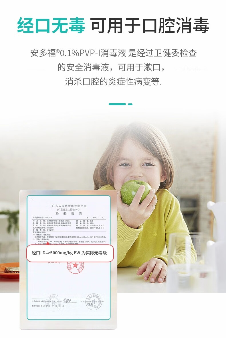 安多福0.1%pvp-i消毒液医用碘伏聚维酮碘产妇儿童皮肤黏膜伤口消毒抗菌 500毫升单瓶装【独家专利 聚维酮碘】
