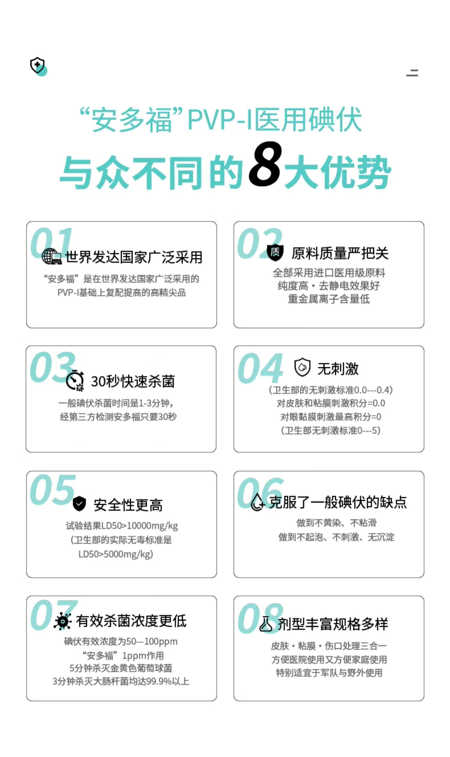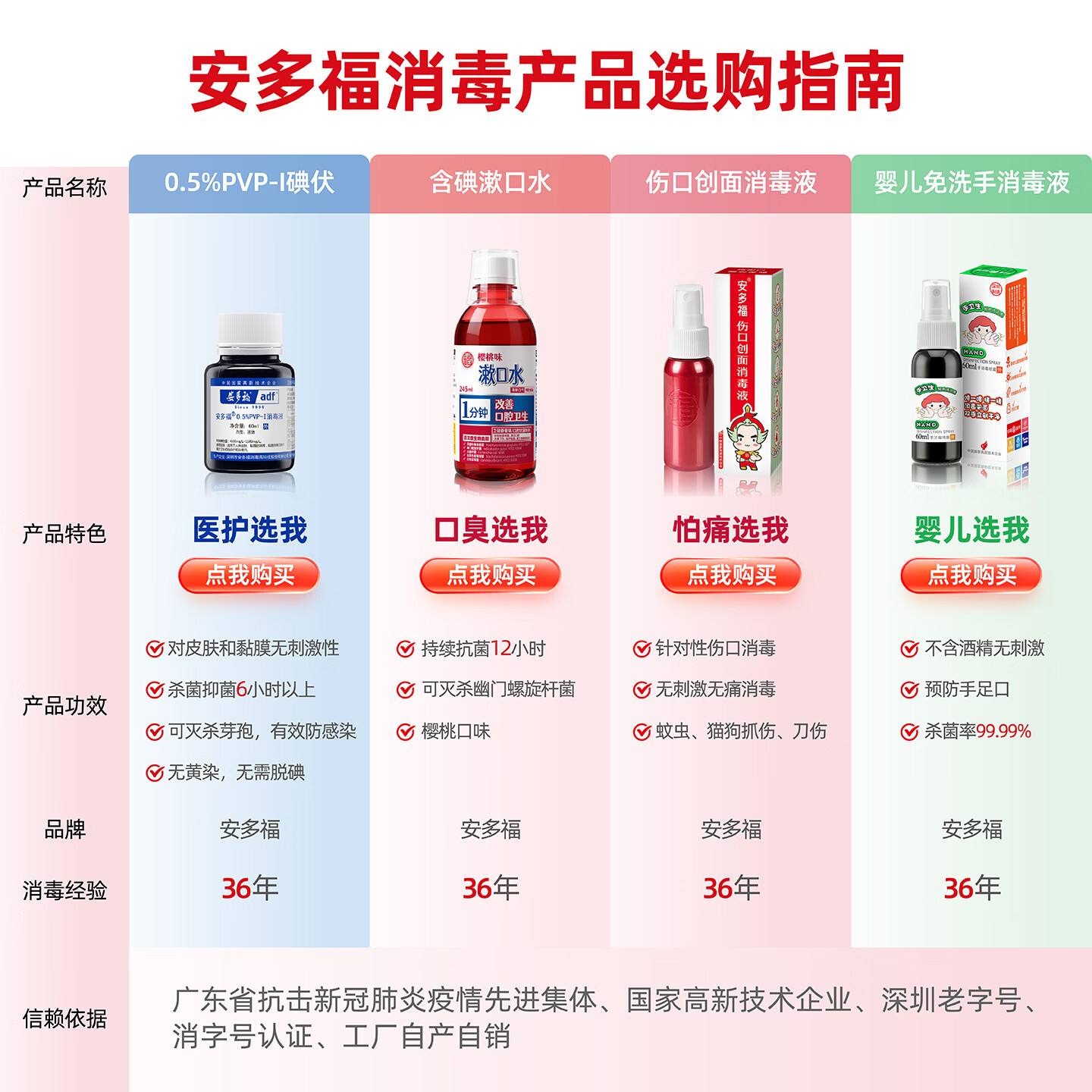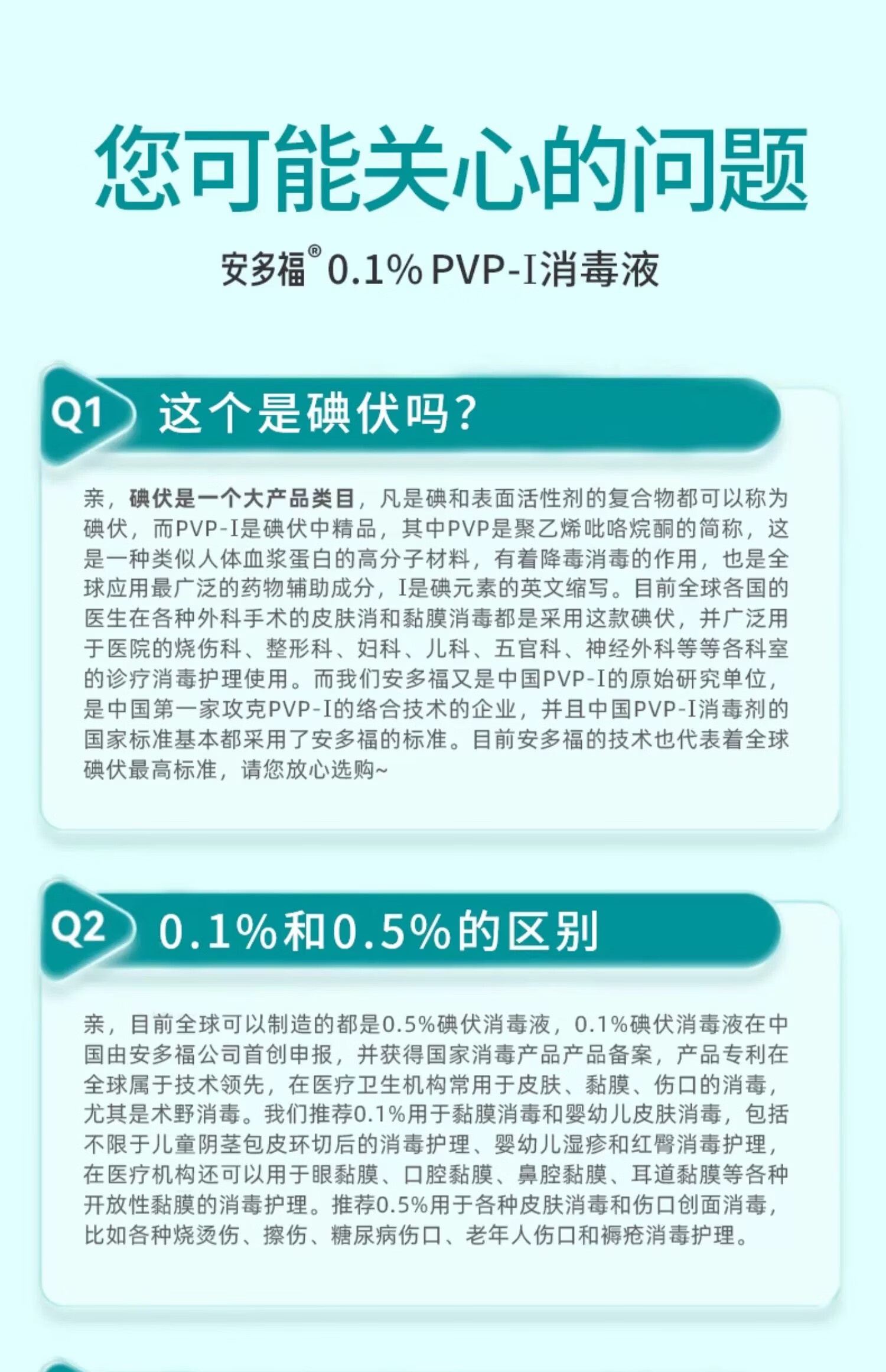 安多福0.1%pvp-i消毒液医用碘伏聚维酮碘产妇儿童皮肤黏膜伤口消毒抗菌 500毫升单瓶装【独家专利 聚维酮碘】