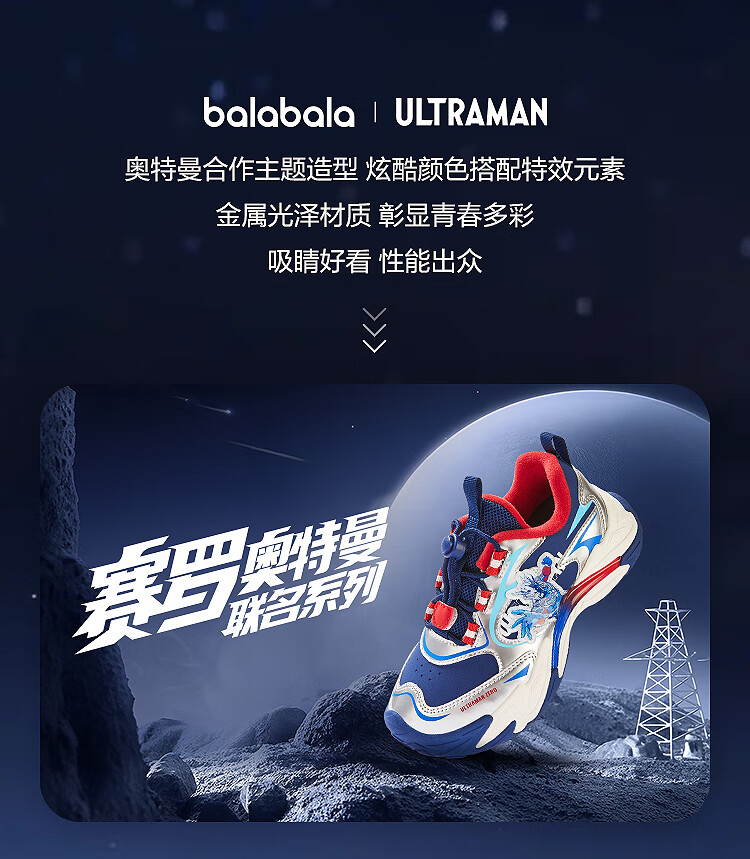 巴拉巴拉【奥特曼IP】童鞋儿童运动鞋男童老爹鞋2025新秋冬鞋子潮 蓝白色调00381 29 (脚长17.8-18.2/内长19)