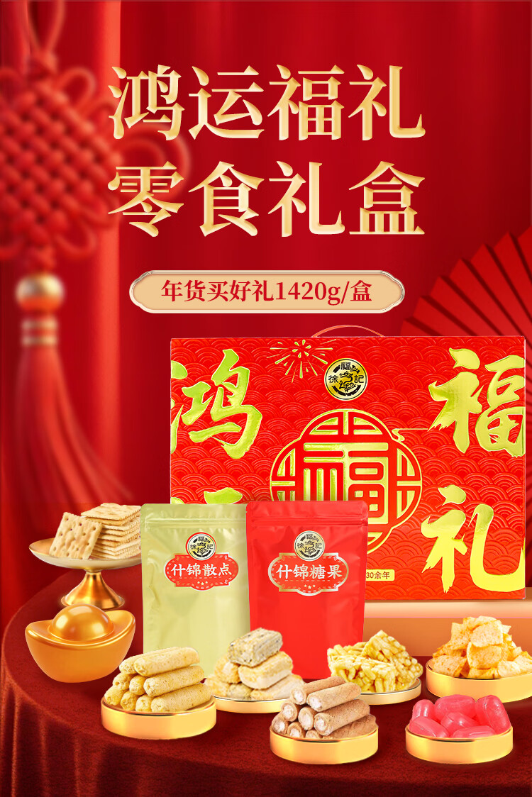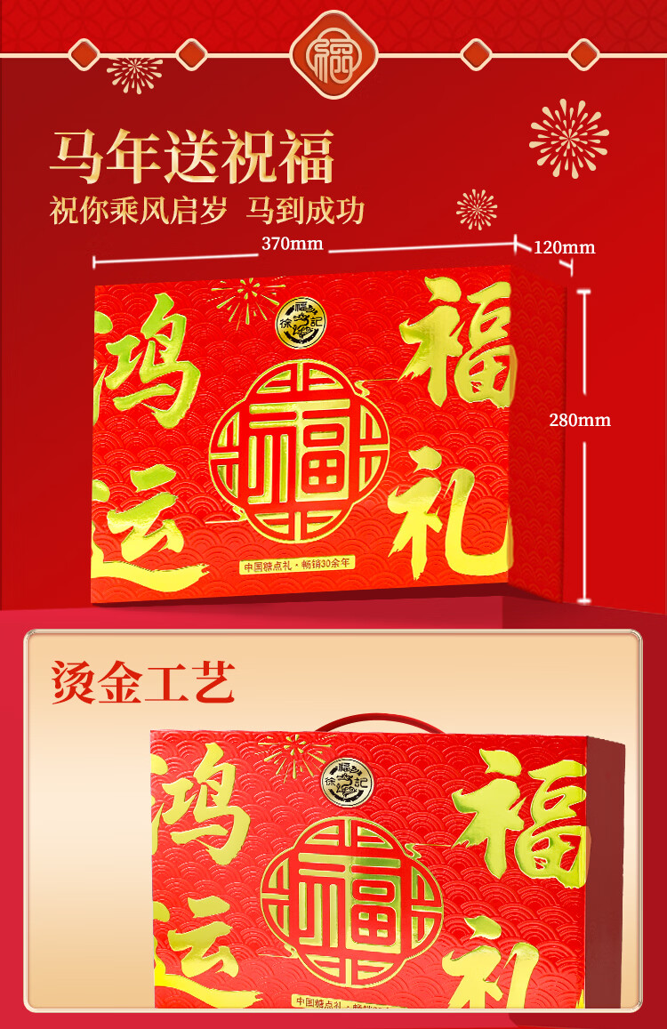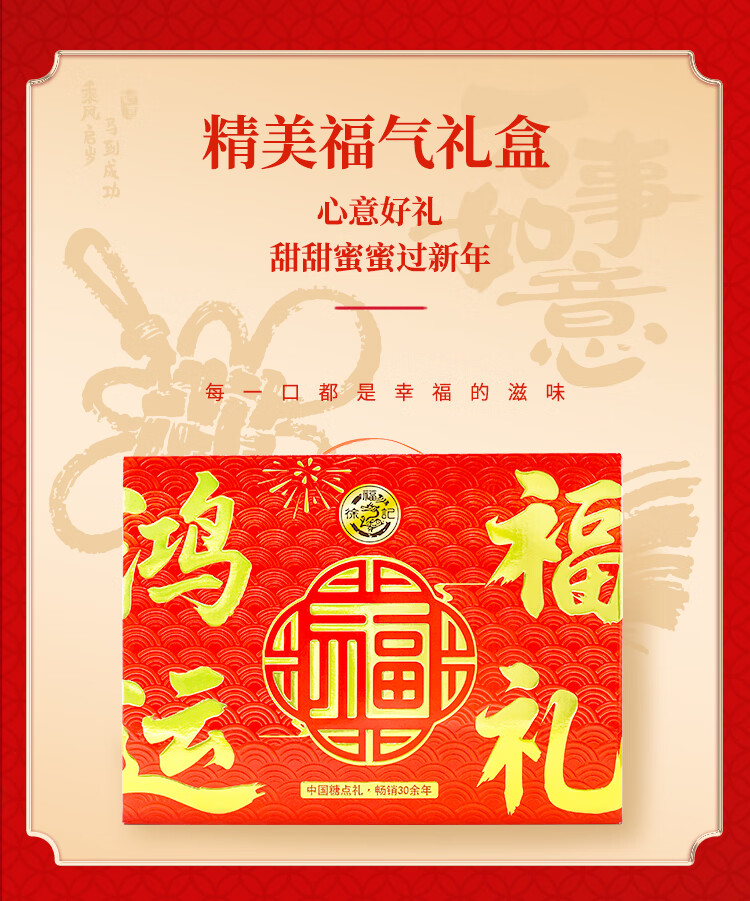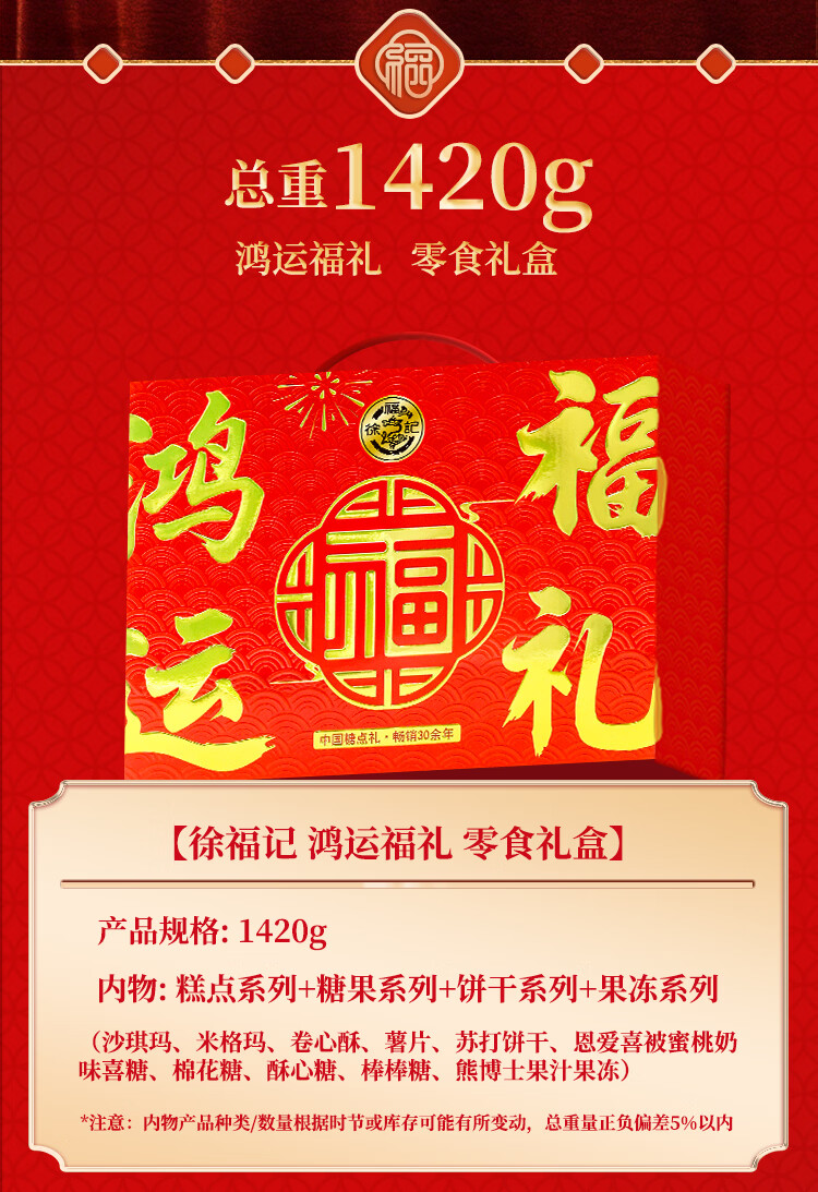 徐福记年货礼盒年糖点礼箱糕点酥心糖送礼年货礼箱送长辈企业团购囤货 【1600g】鸿运福礼 糖点礼箱