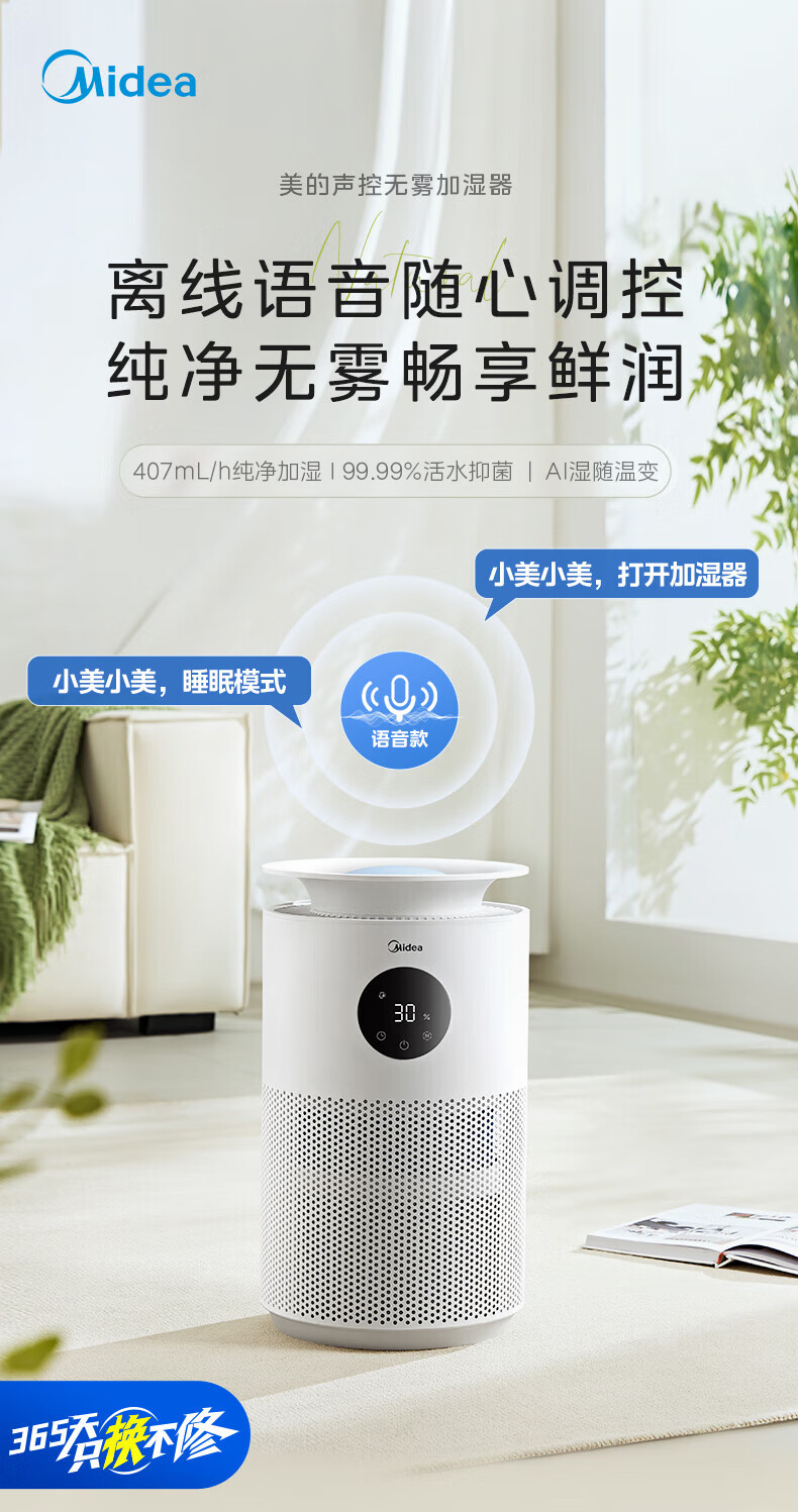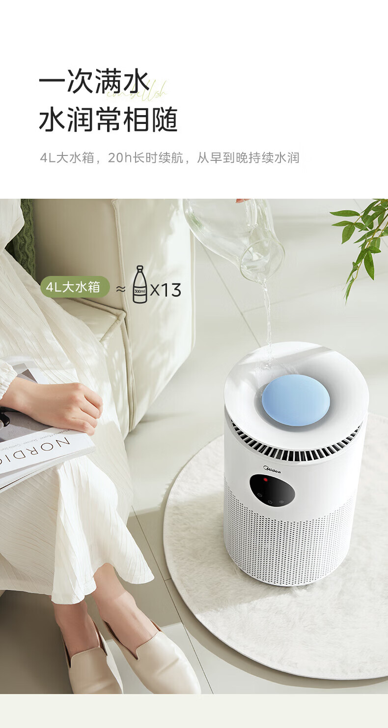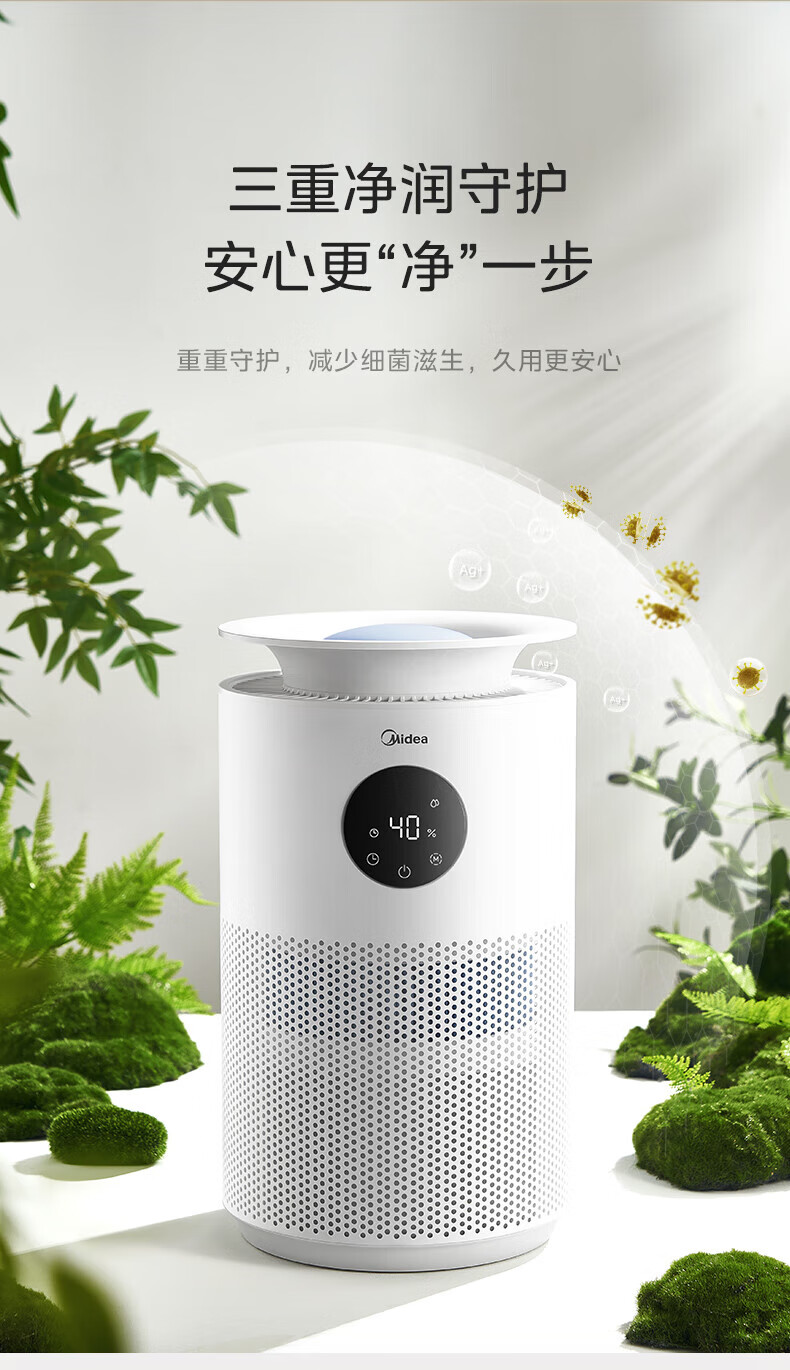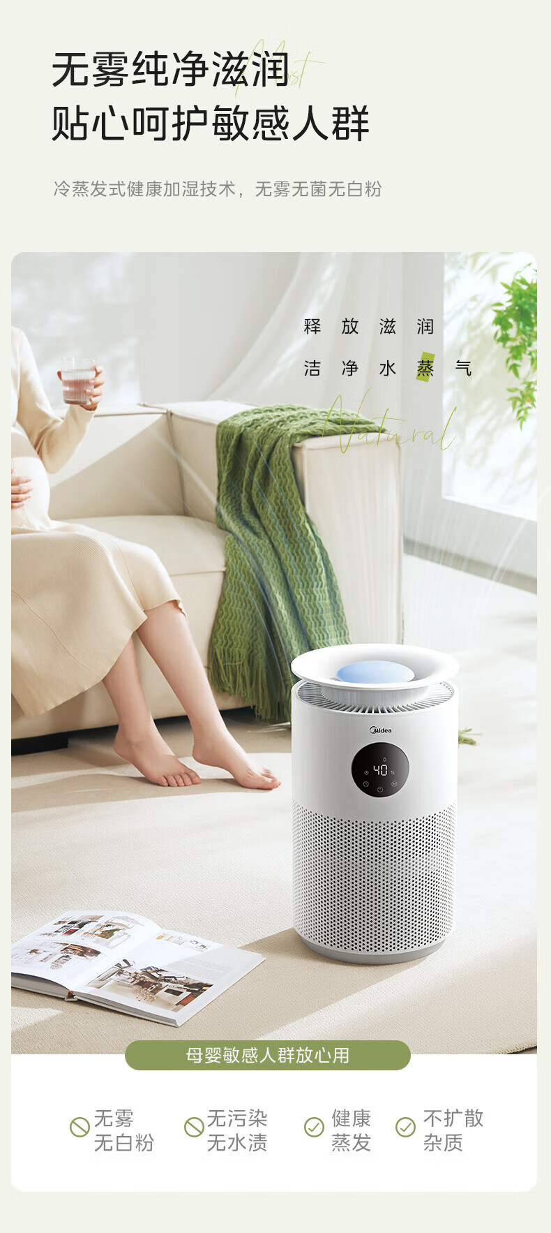 美的(Midea)【AI智能语音】无雾加湿器空气净化落地式冷蒸发雾化器静音母婴级专用礼物取暖降燥除菌SZY-W40S 【AI智能语音】