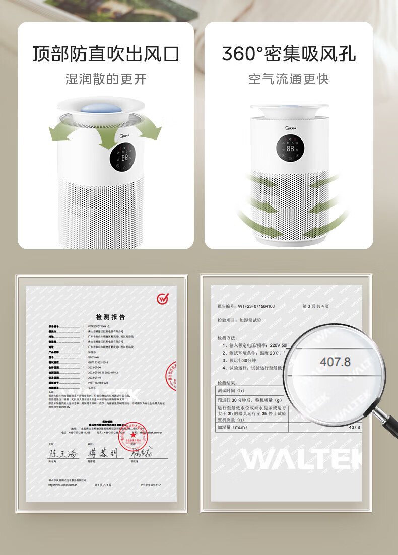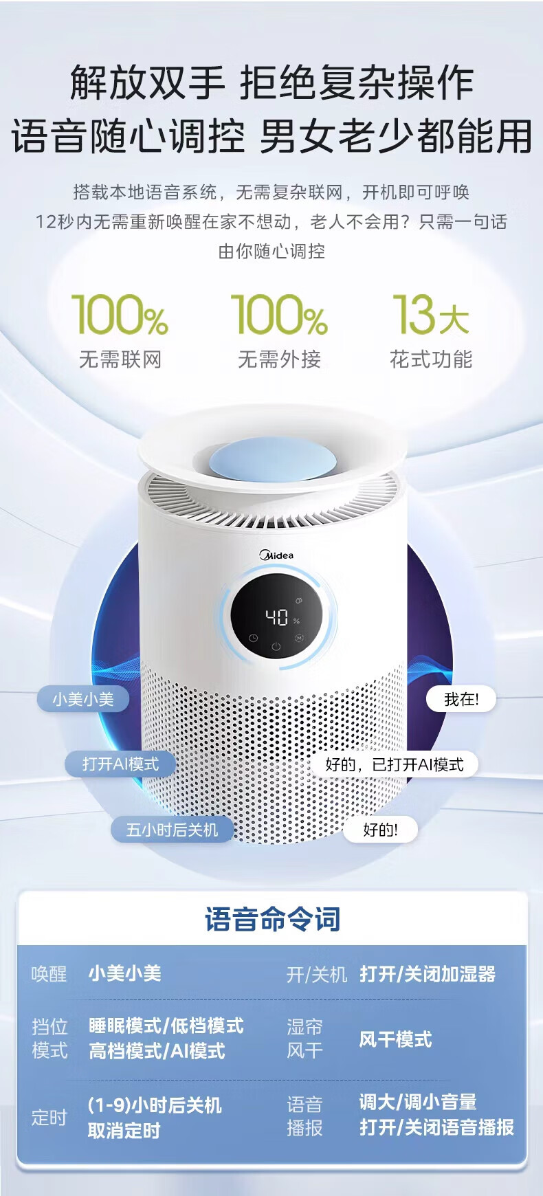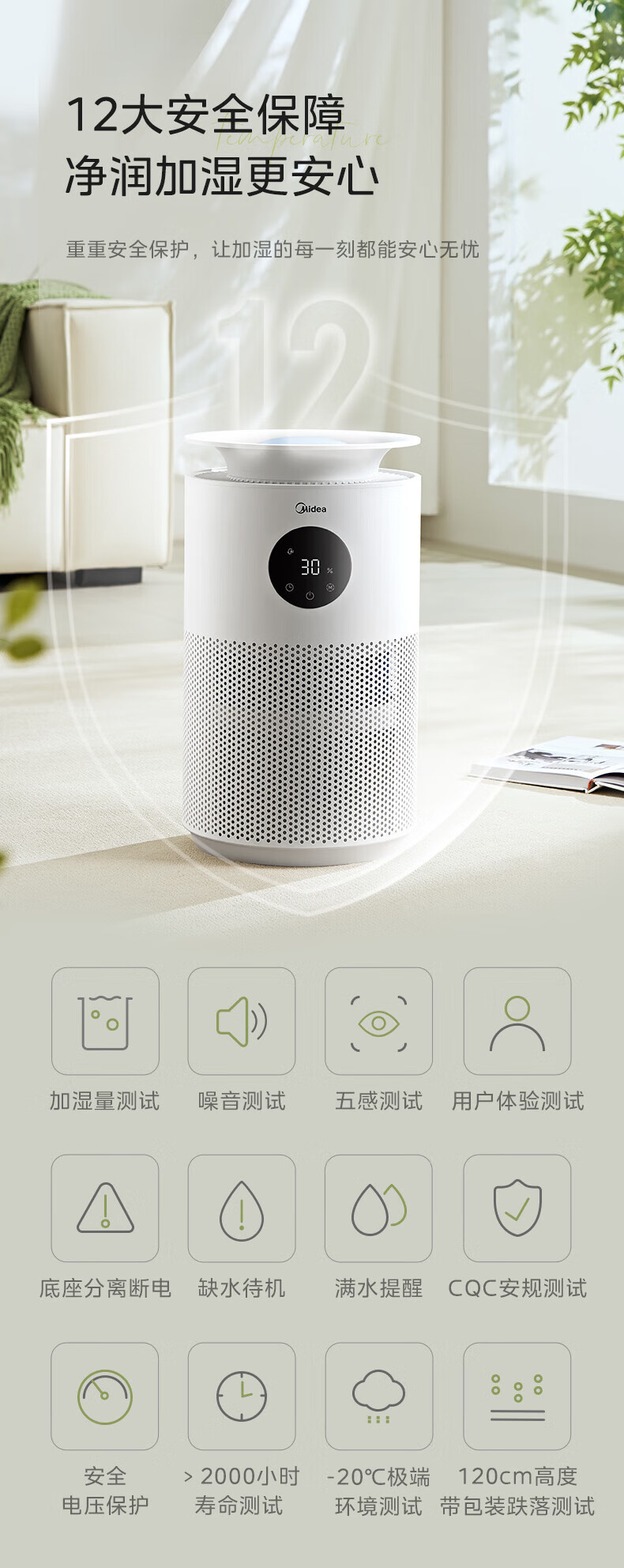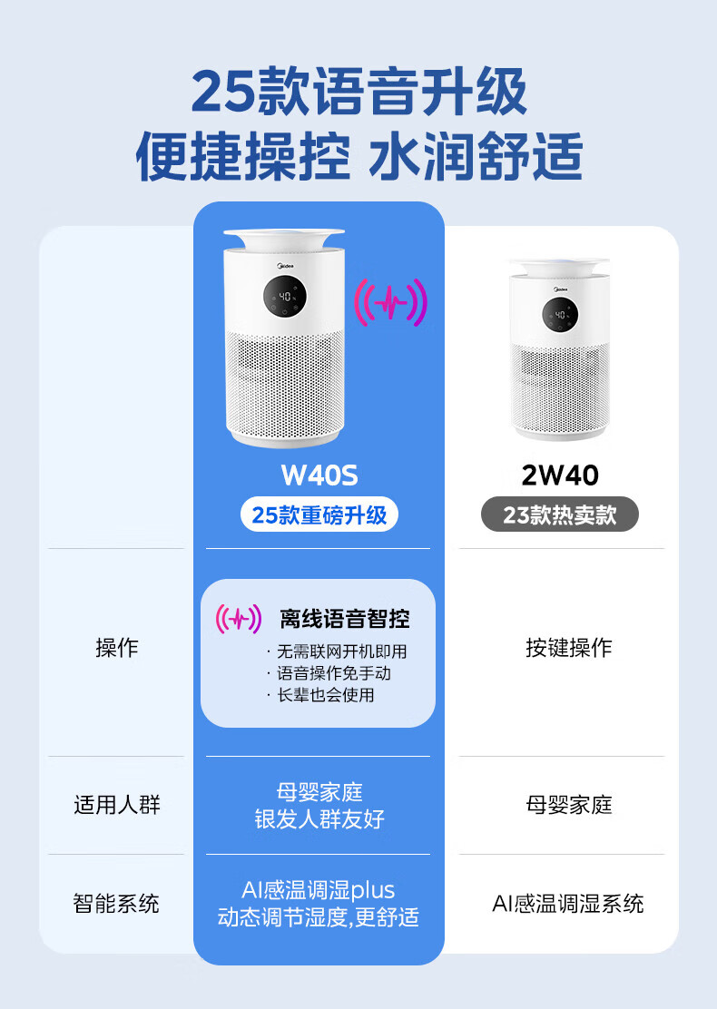 美的(Midea)【AI智能语音】无雾加湿器空气净化落地式冷蒸发雾化器静音母婴级专用礼物取暖降燥除菌SZY-W40S 【AI智能语音】