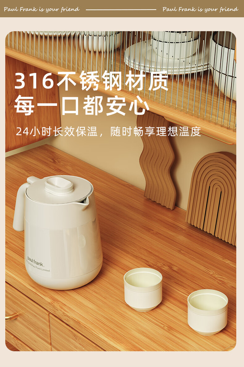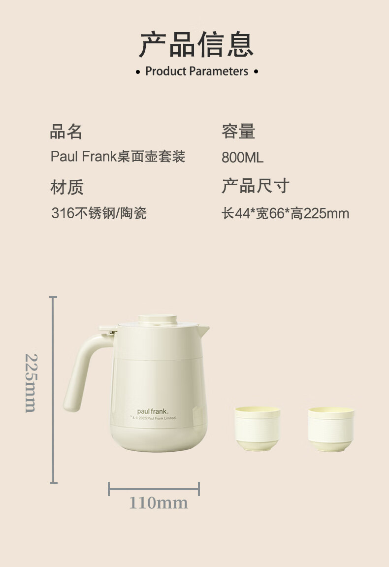 paul frank桌面壶套装PFC811T保温壶饮水壶颜色随机发货
