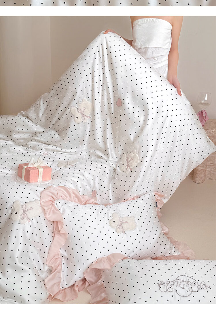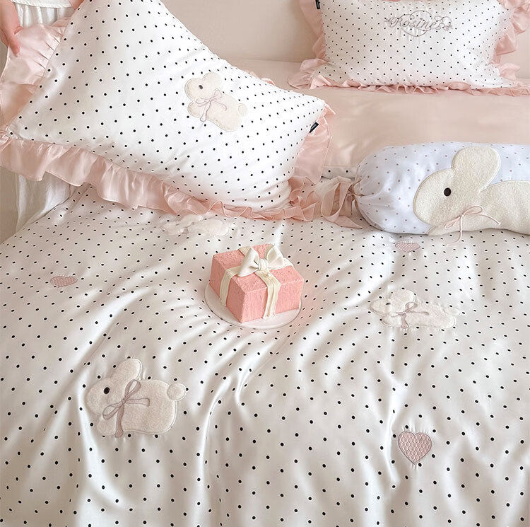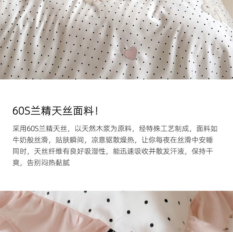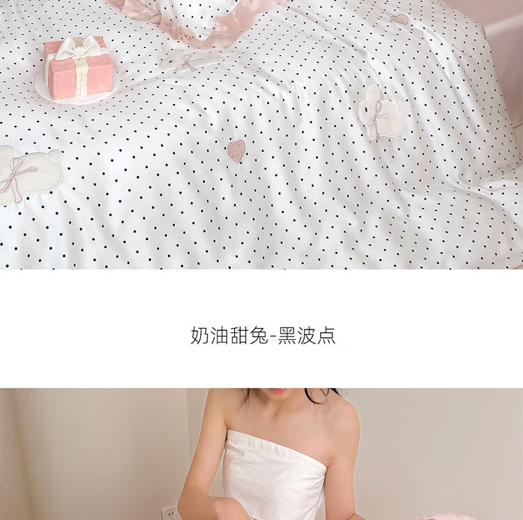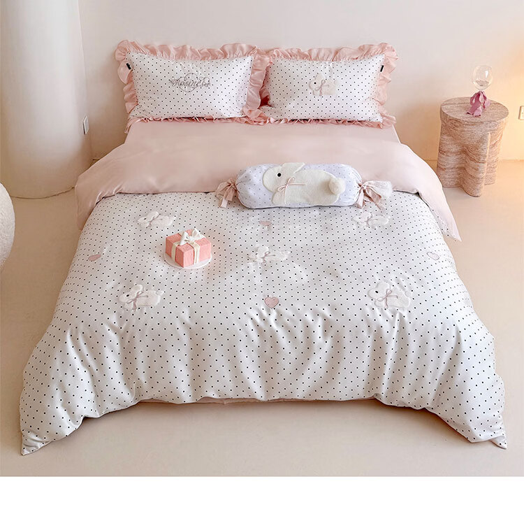 ROLAND LIVE夏季公主风莱赛尔天丝四件套波点被套凉感丝滑床单床笠床上用品 LB 天丝套件-奶油甜兔黑波点 1.8米床 床单款 【被套200*230cm】