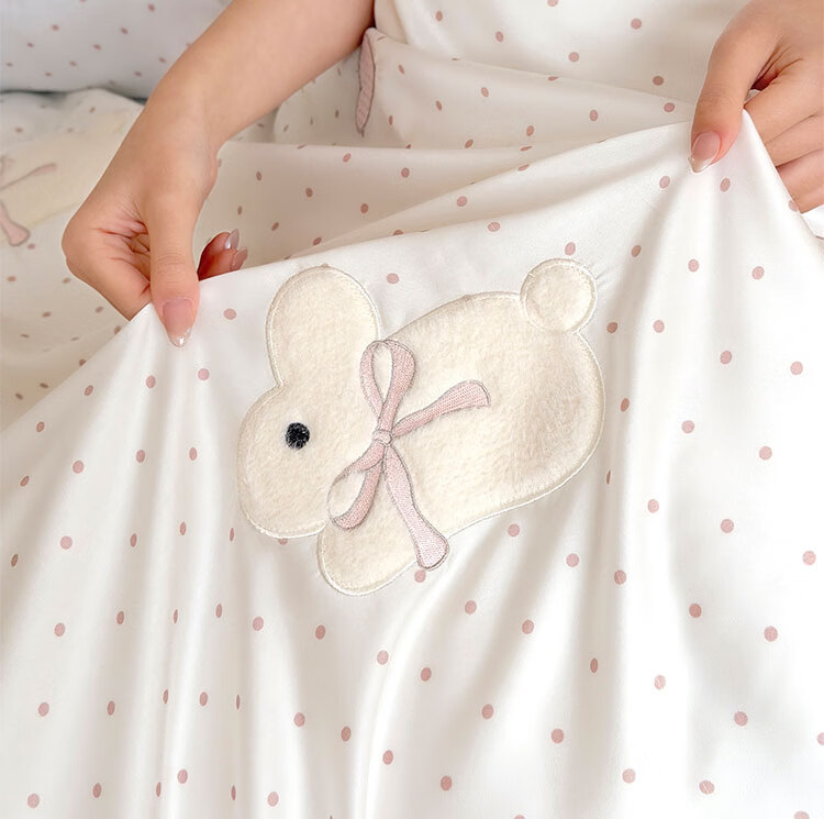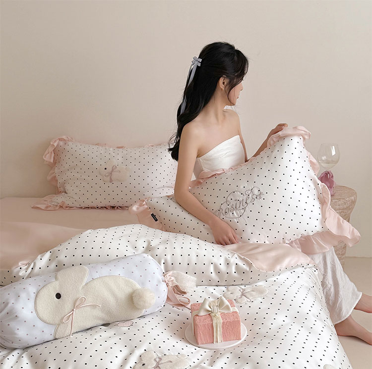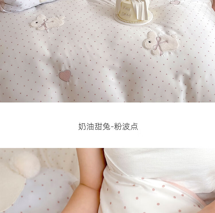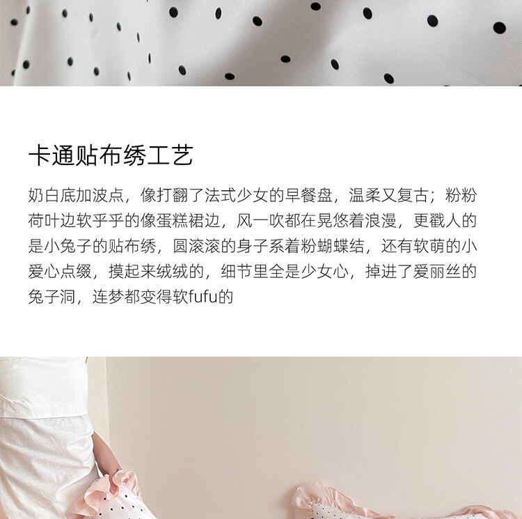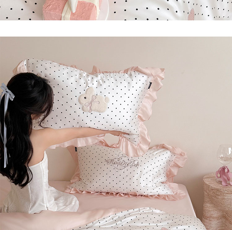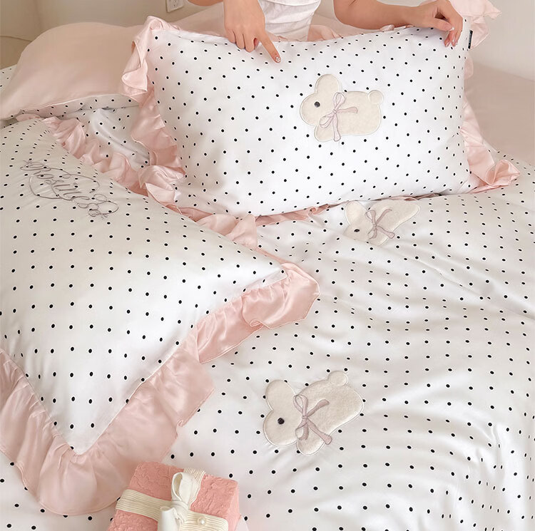 ROLAND LIVE夏季公主风莱赛尔天丝四件套波点被套凉感丝滑床单床笠床上用品 LB 天丝套件-奶油甜兔黑波点 1.8米床 床单款 【被套200*230cm】