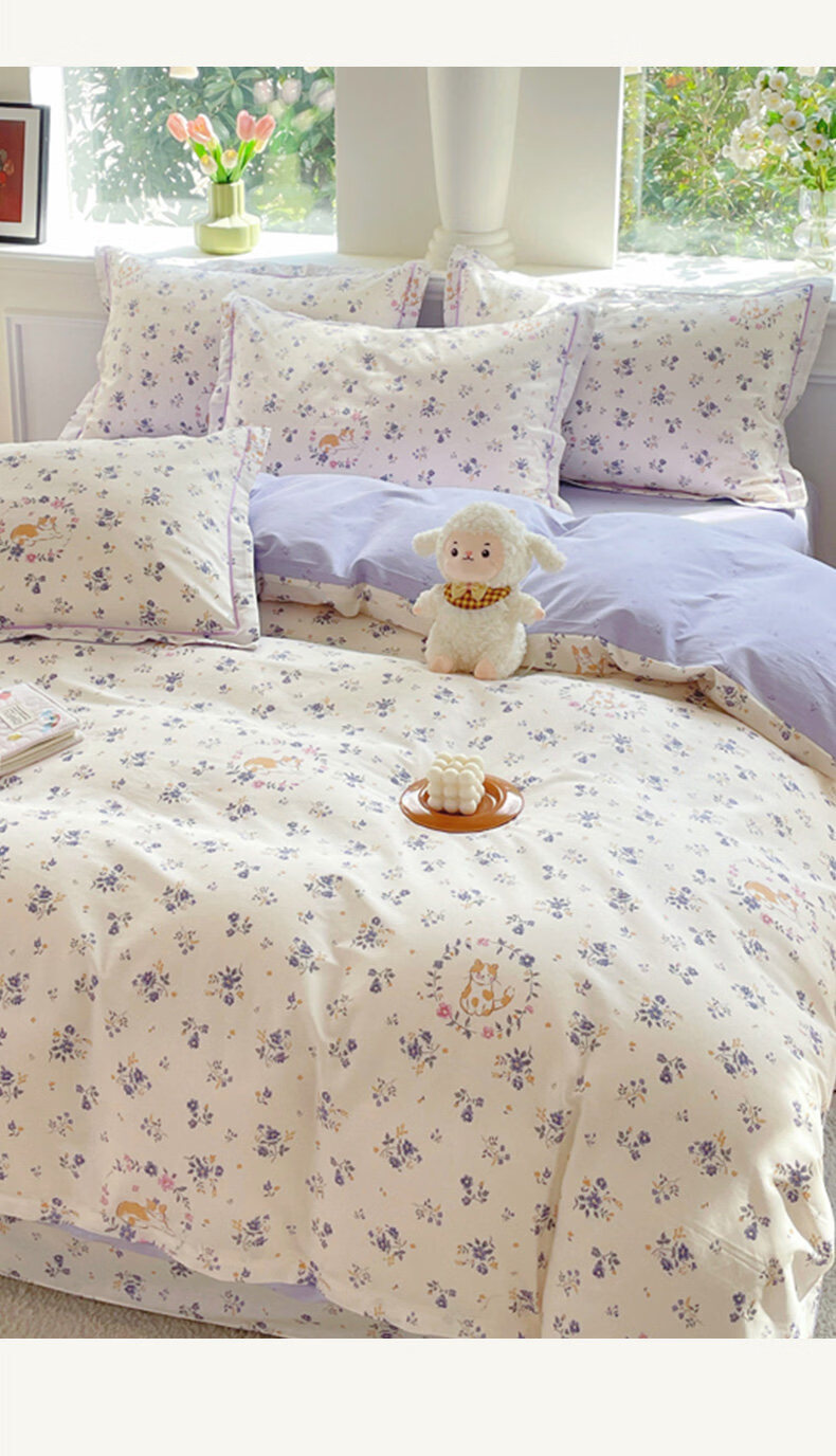 ROLAND LIVE全棉双层纱刺绣四件套AB版被套透气纯棉床单儿童可爱卧室三件套 FOR 全棉双层纱套件-睡觉猫 1.8米床 床单款 【被套200*230cm】