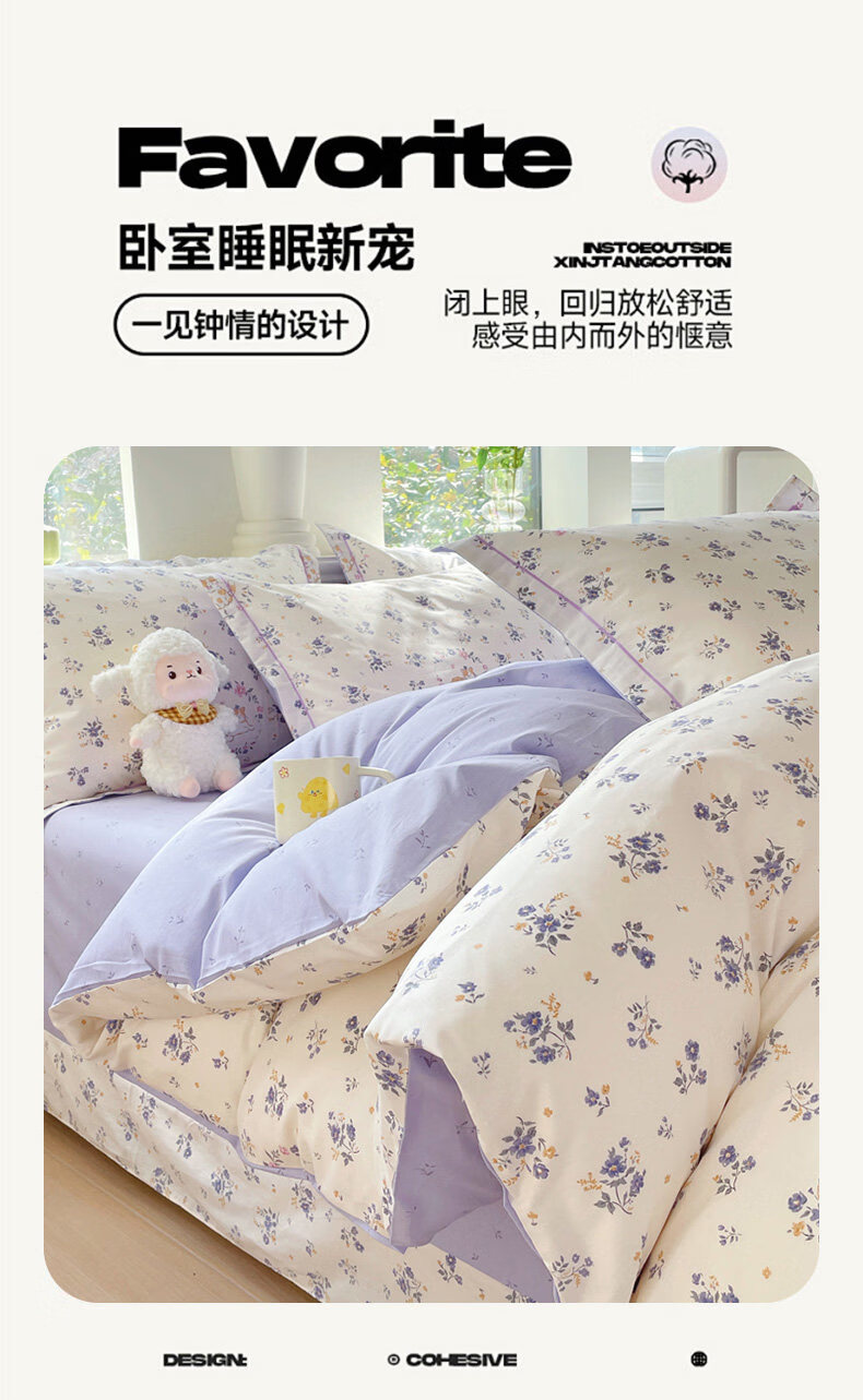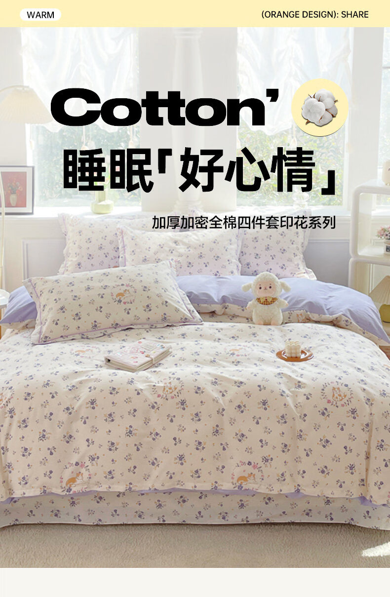 猫人(MiiOW)纯棉被套150x200cm全棉100%被罩1.5米x2米床单床笠四件套床上用品 茶派【100%全棉面料 柔软舒适】 150x200cm单被套【100%细腻柔 软全棉面料】