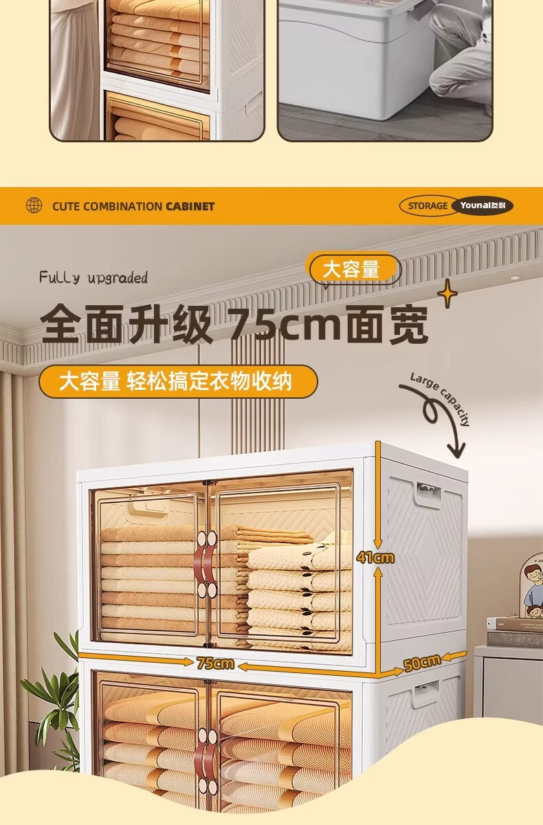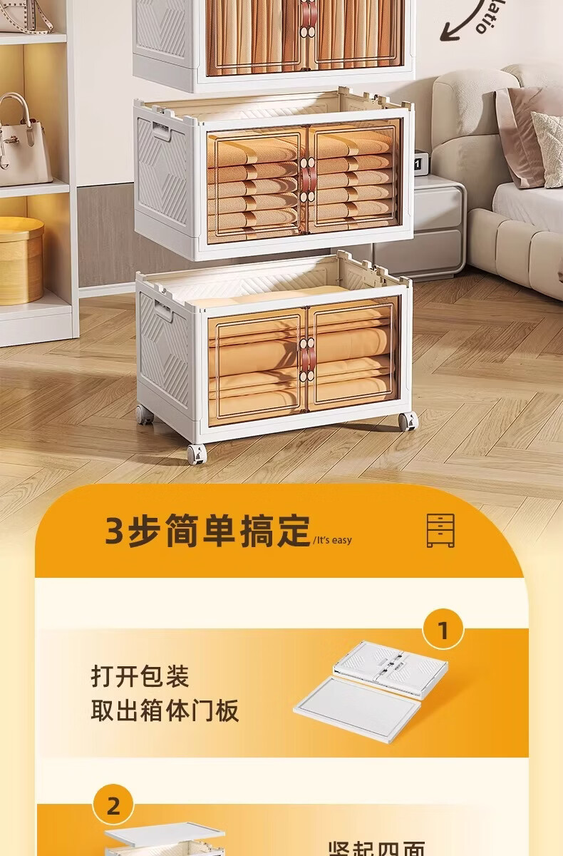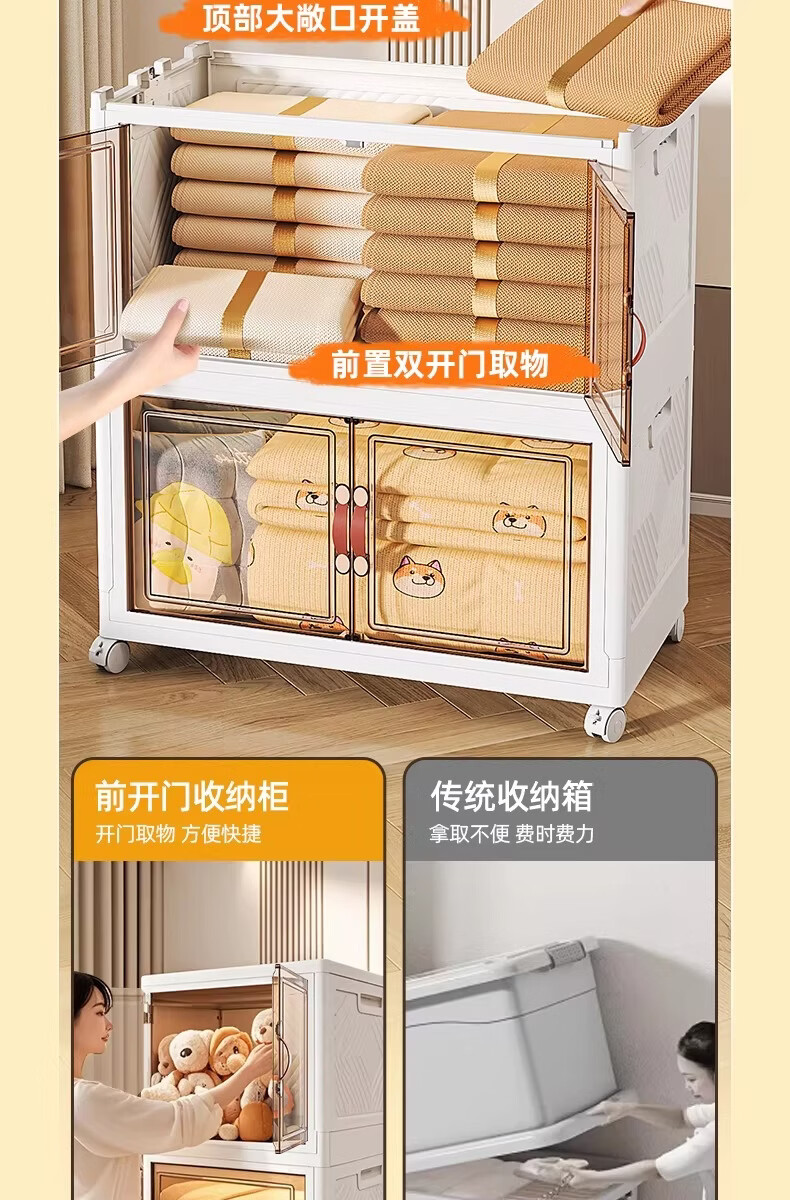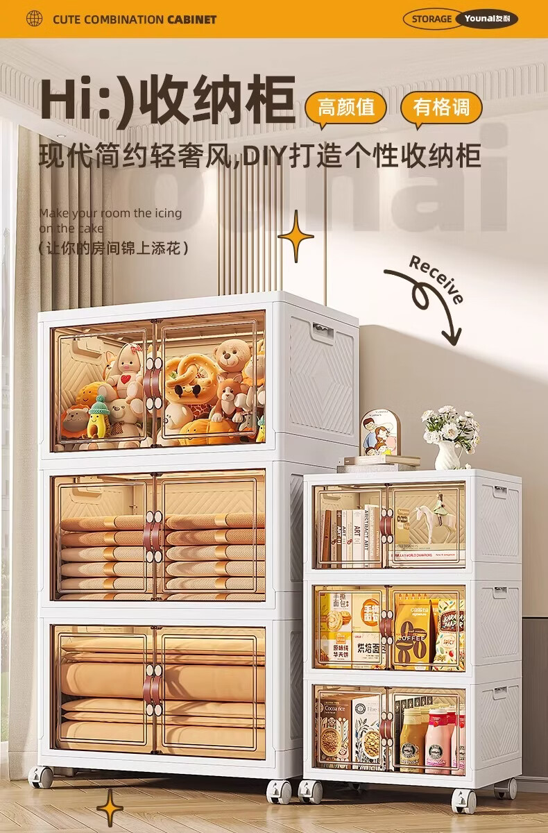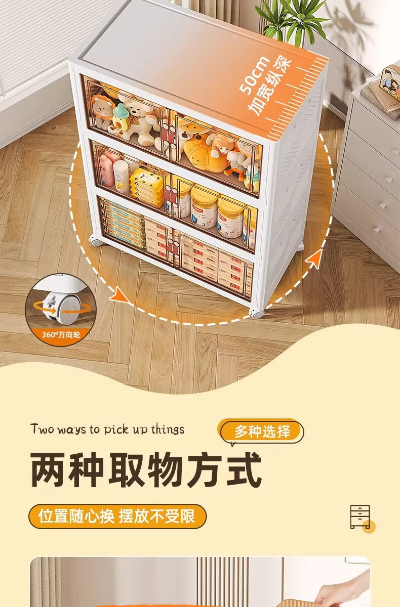 稻草熊可折叠收纳柜家用卧室客厅阳台简易储物柜子多层抽屉式简约免安装 45cm面宽【三层】