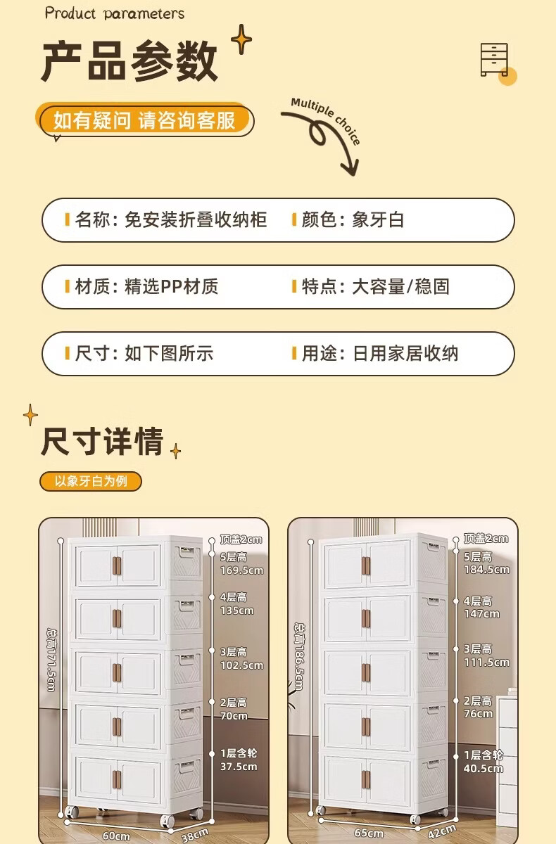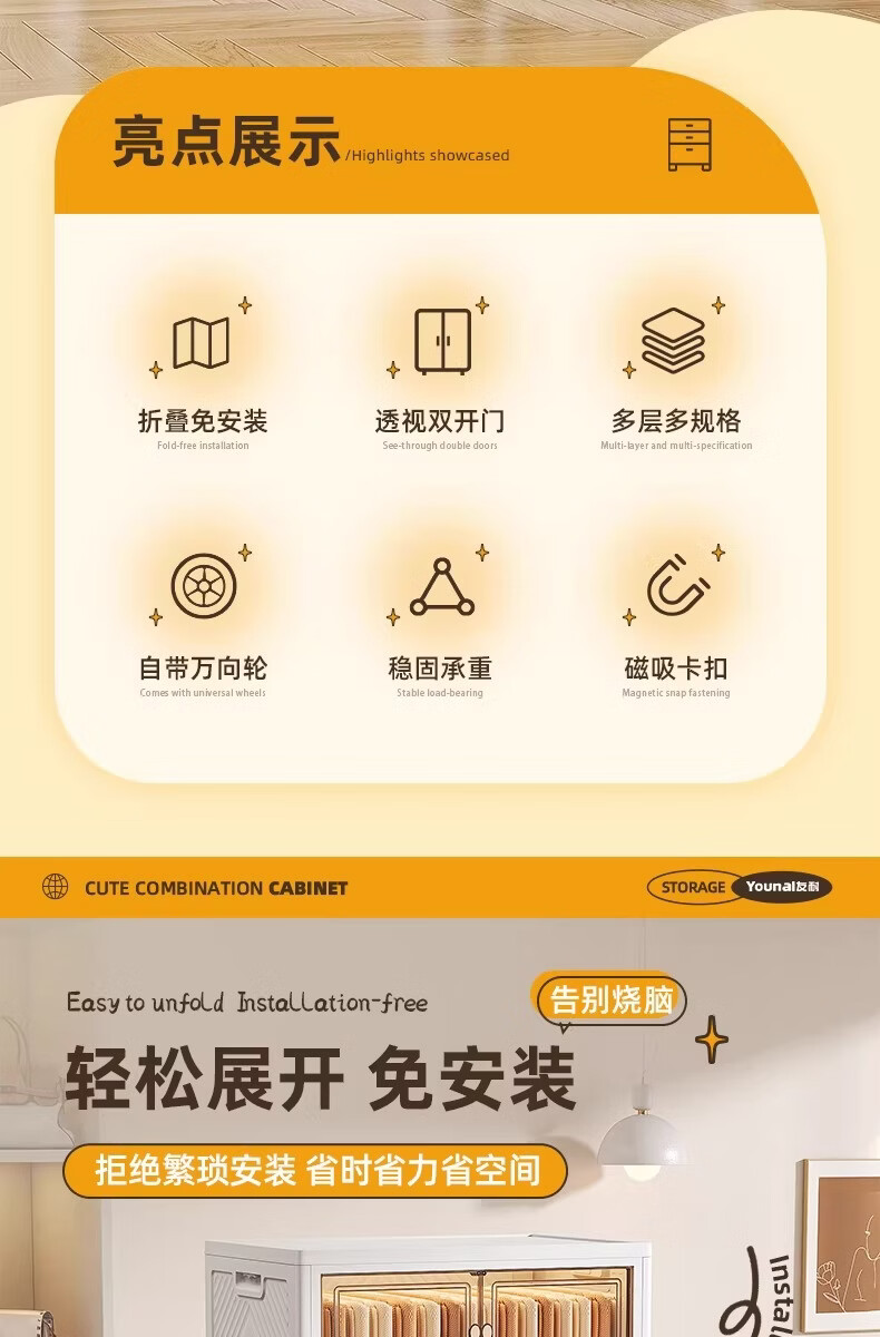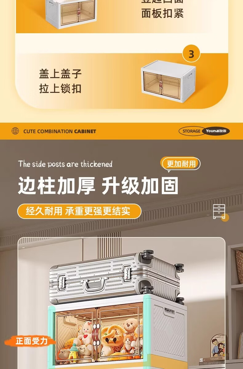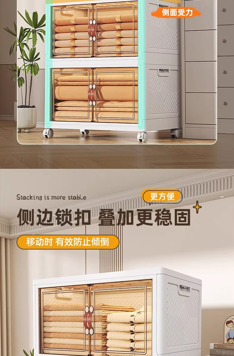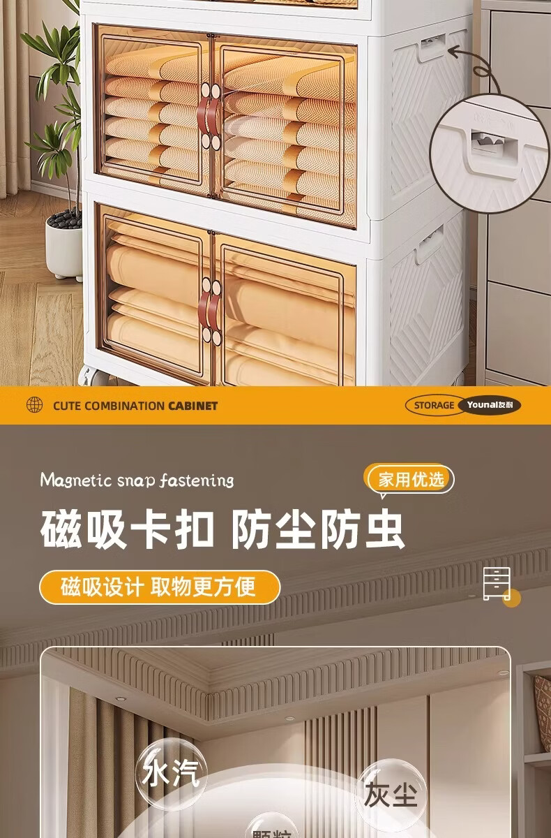 稻草熊可折叠收纳柜家用卧室客厅阳台简易储物柜子多层抽屉式简约免安装 45cm面宽【三层】