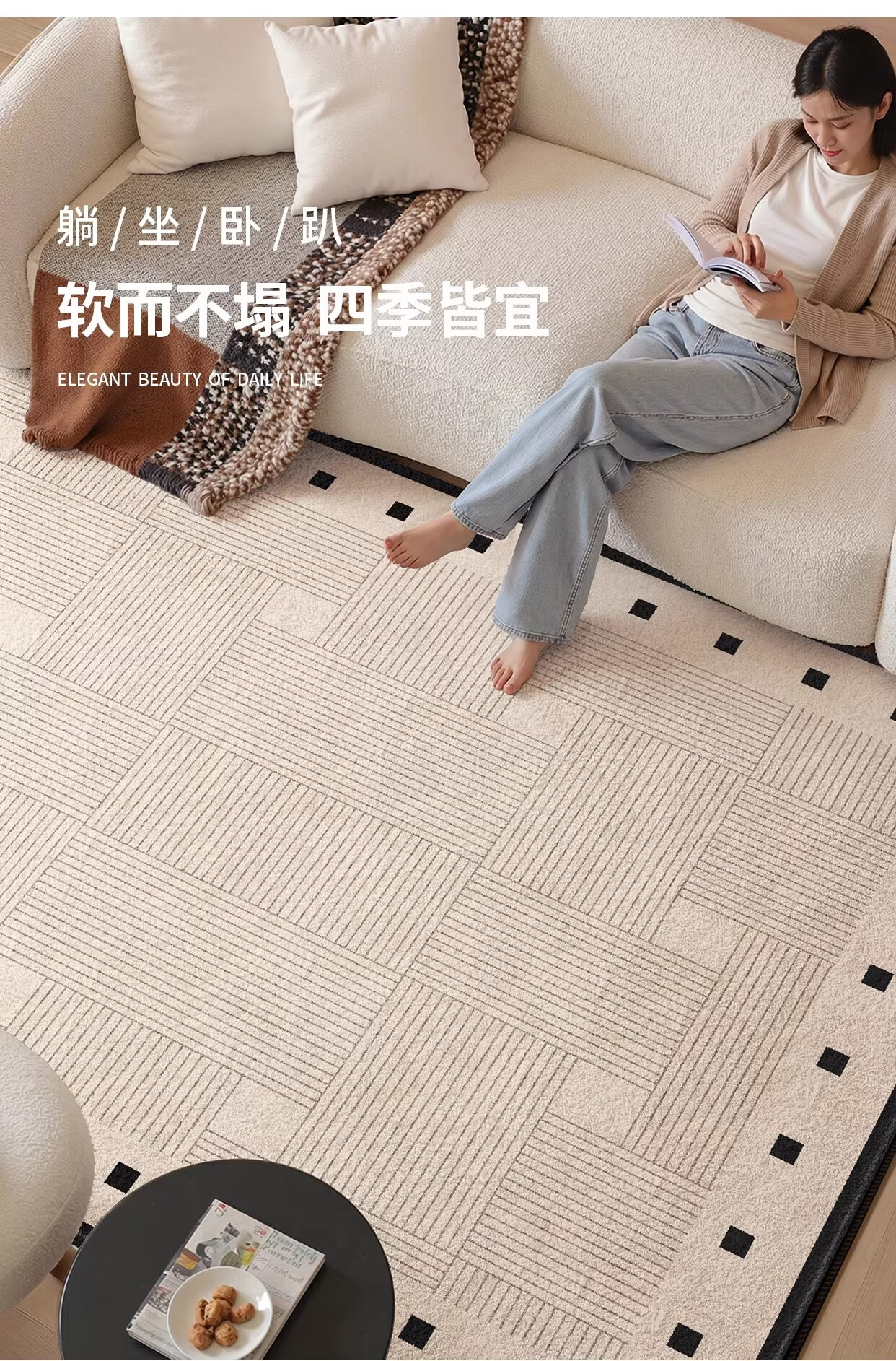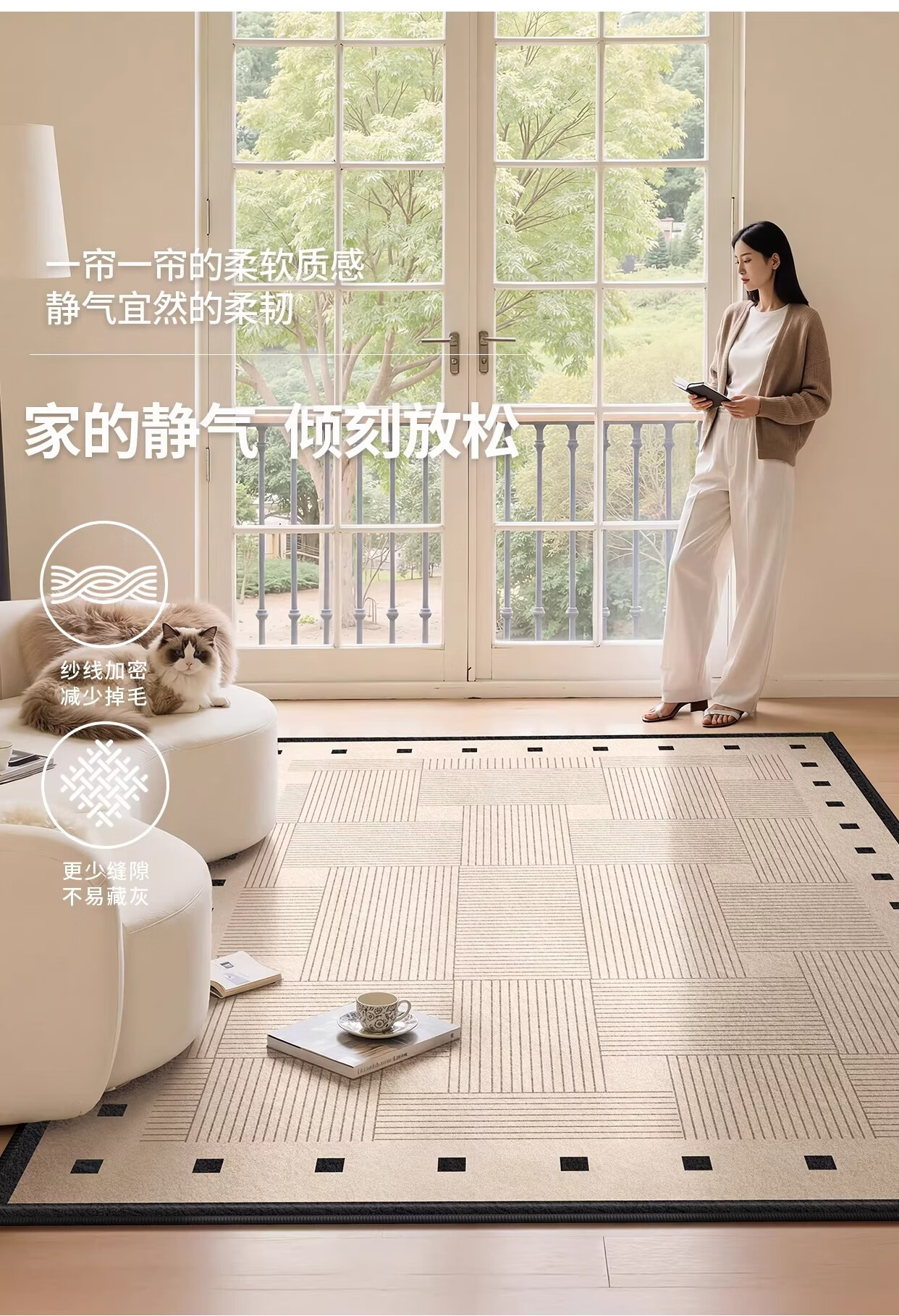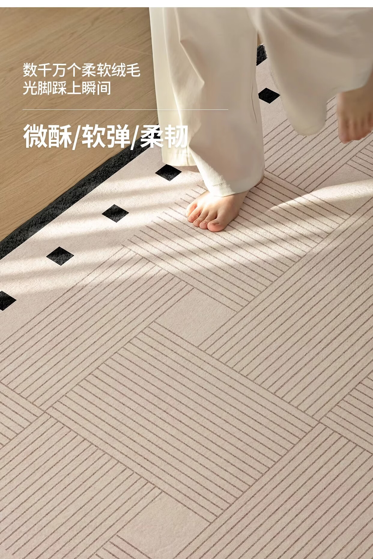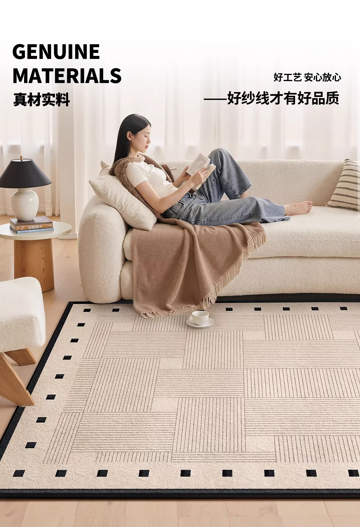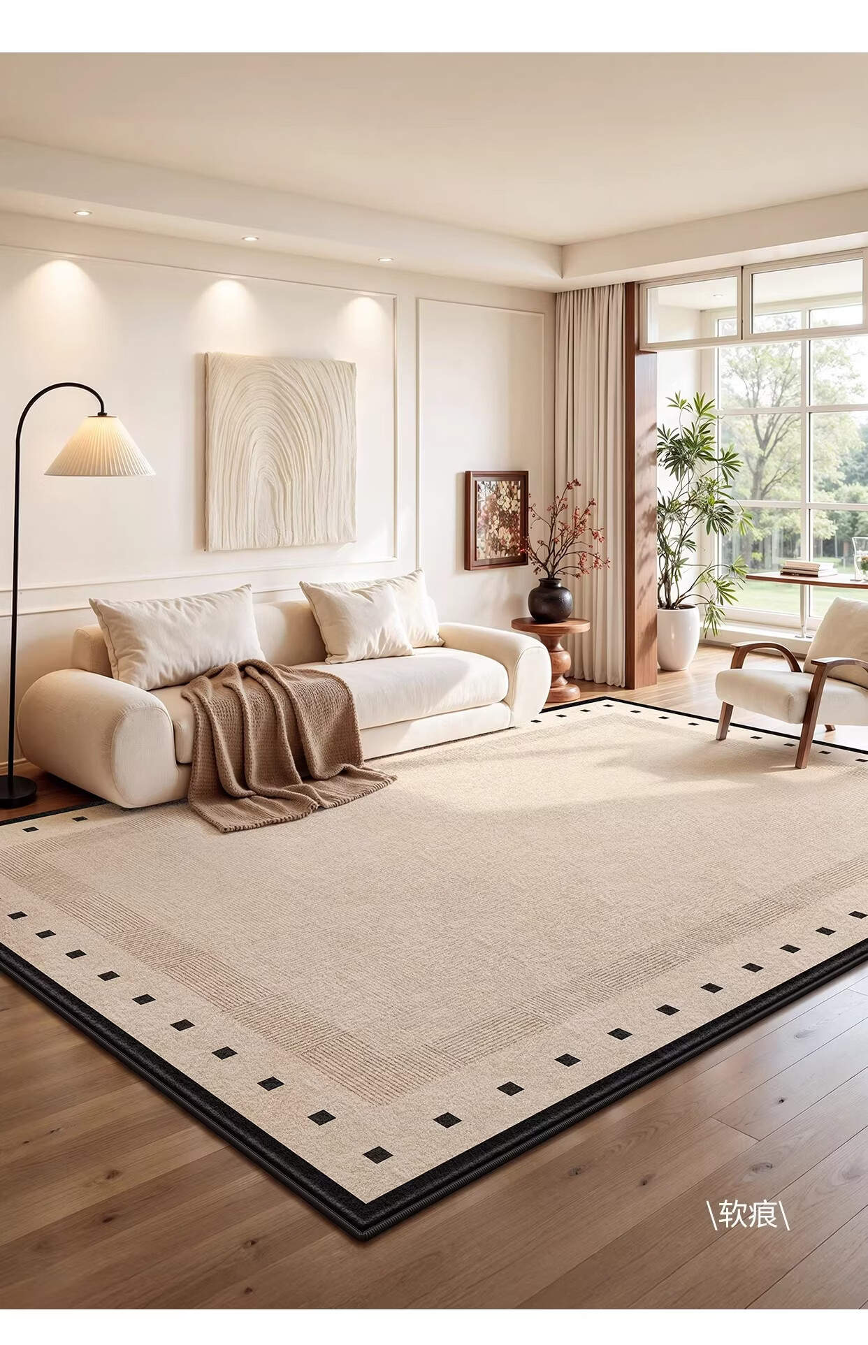 著忆地毯客厅2026新款卧室床边免打理免洗可擦轻奢高级防水侘寂奶油风 S仿羊绒-方黎木 140*200cm【黄金9毫米厚度】
