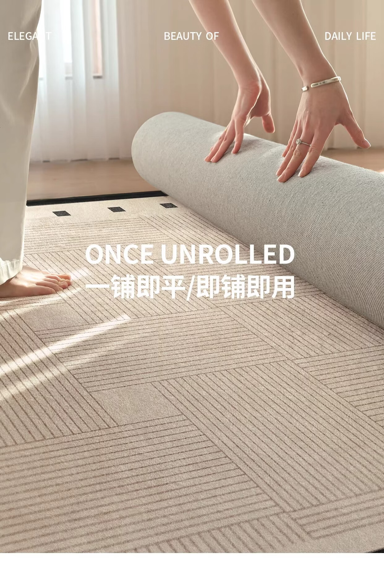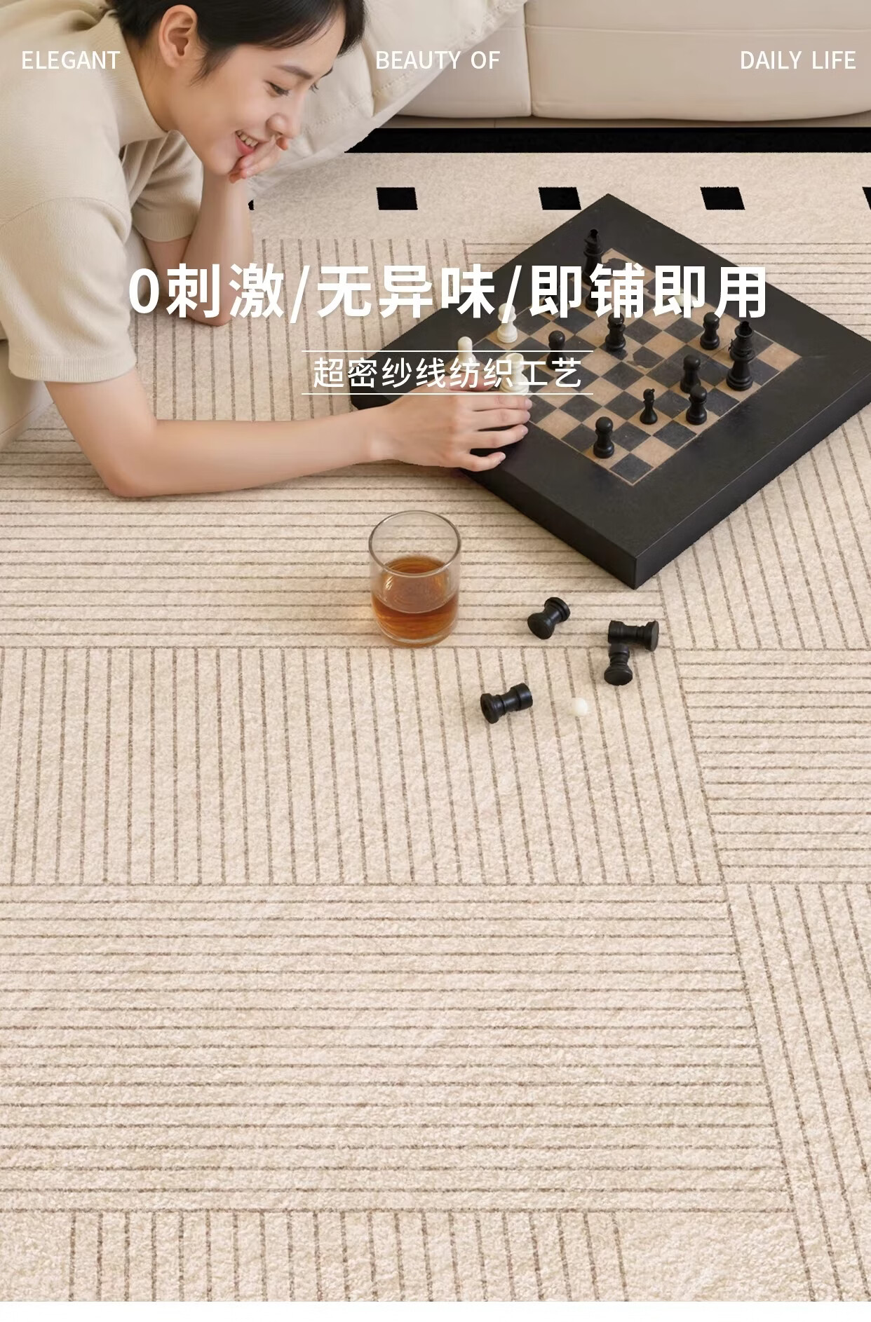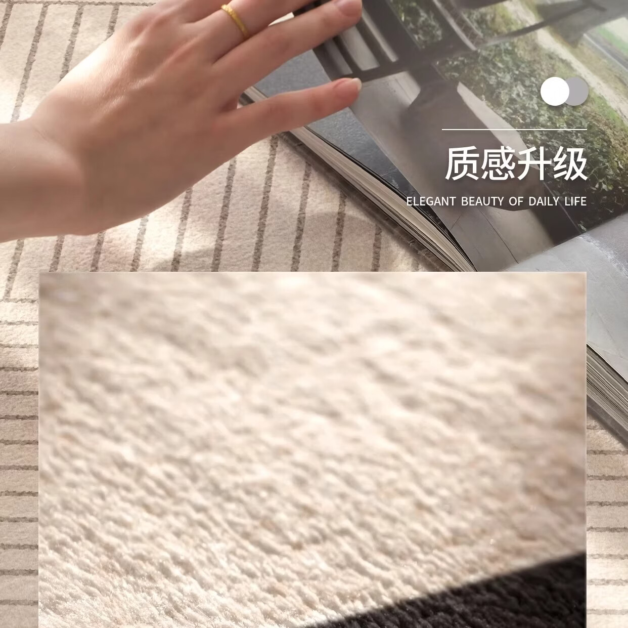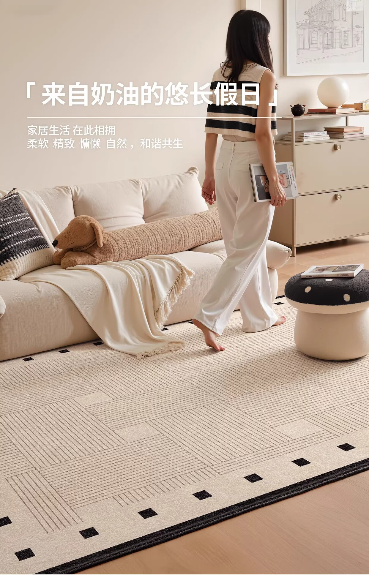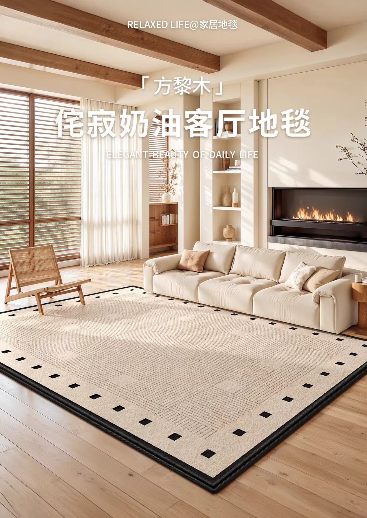 著忆地毯客厅2026新款卧室床边免打理免洗可擦轻奢高级防水侘寂奶油风 S仿羊绒-方黎木 140*200cm【黄金9毫米厚度】