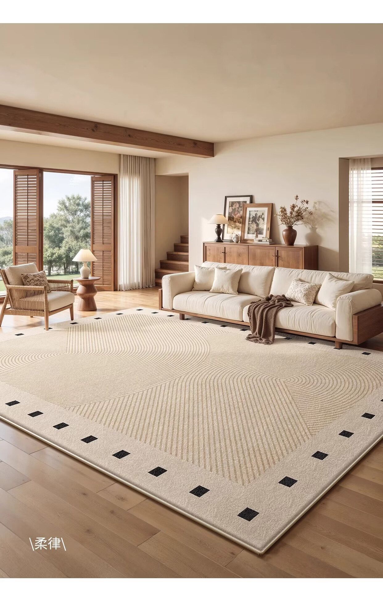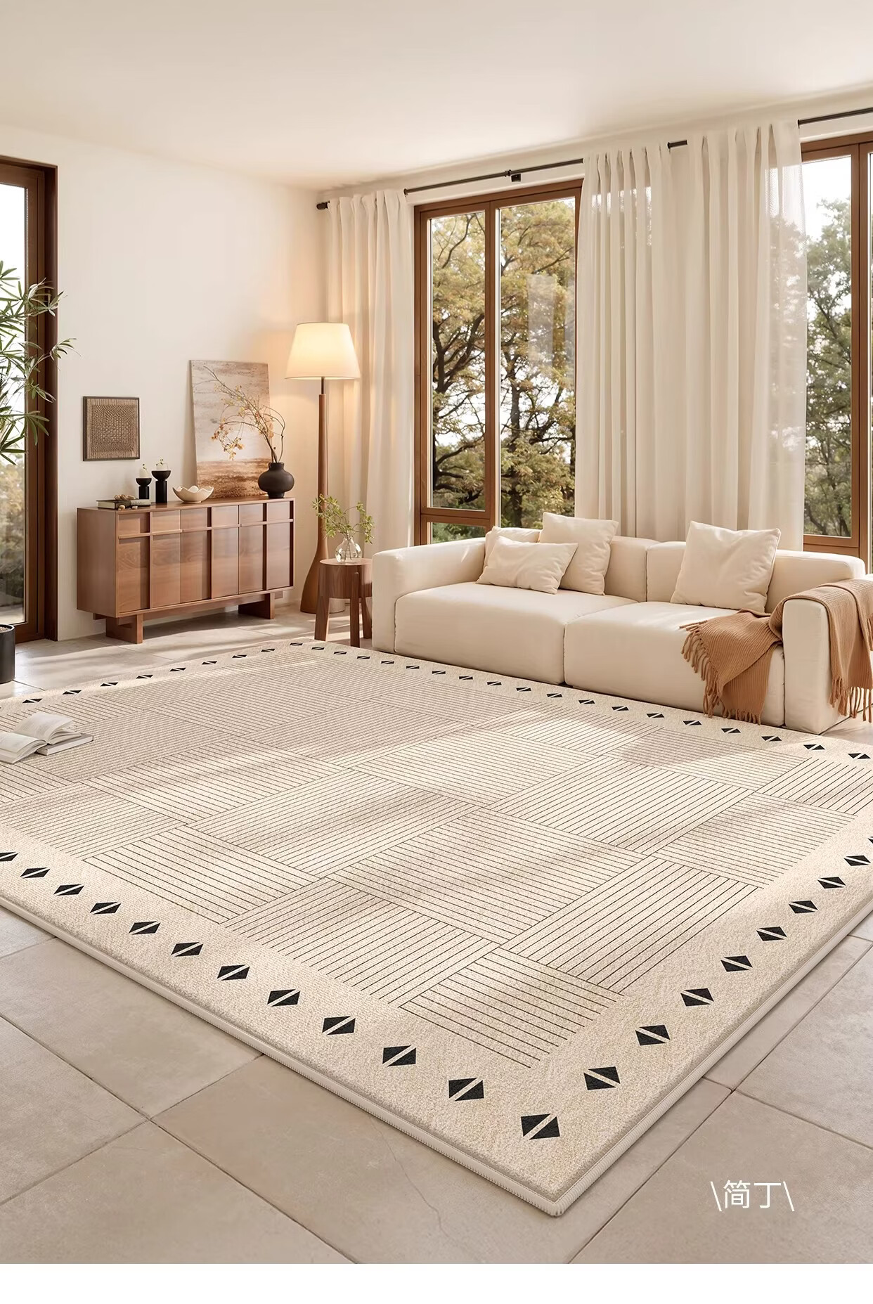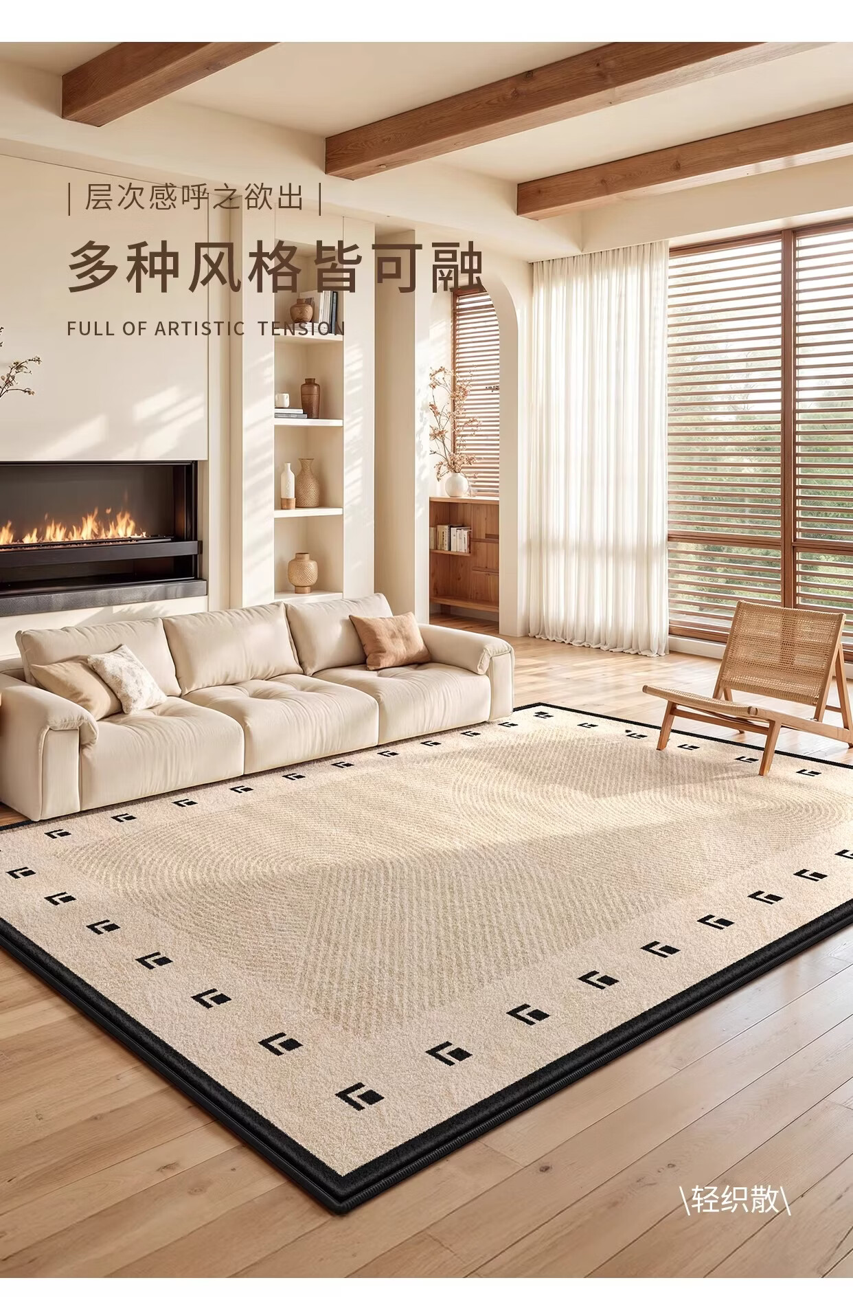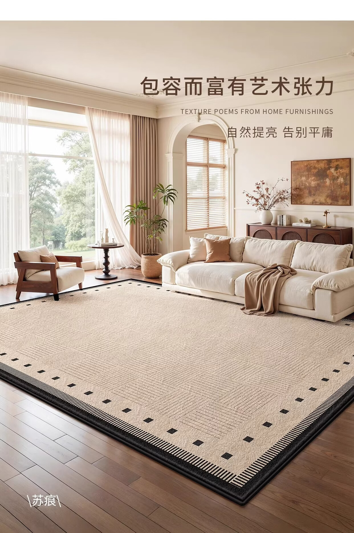 著忆地毯客厅2026新款奶油中古风简约高级家用沙发免打理卧室床边地垫 S波斯绒-清观 定制尺寸【联系客服】