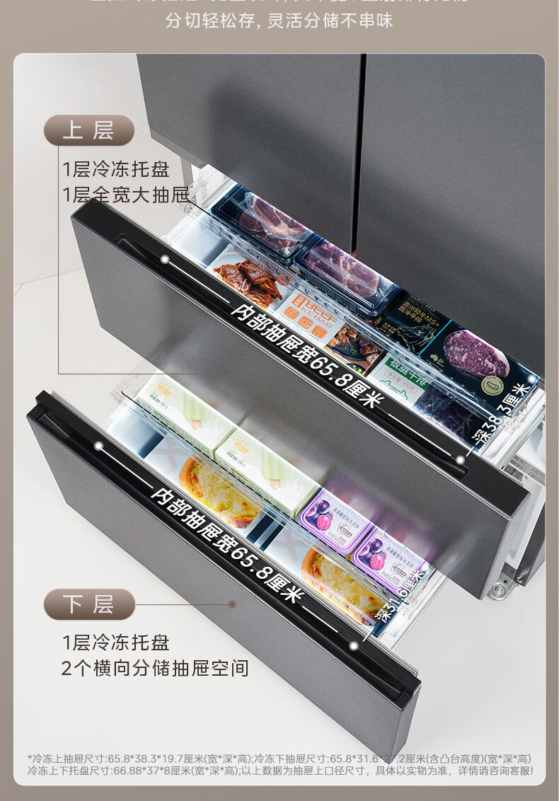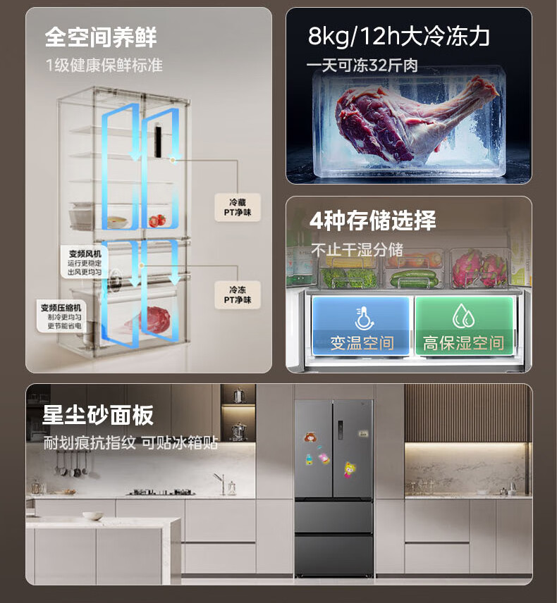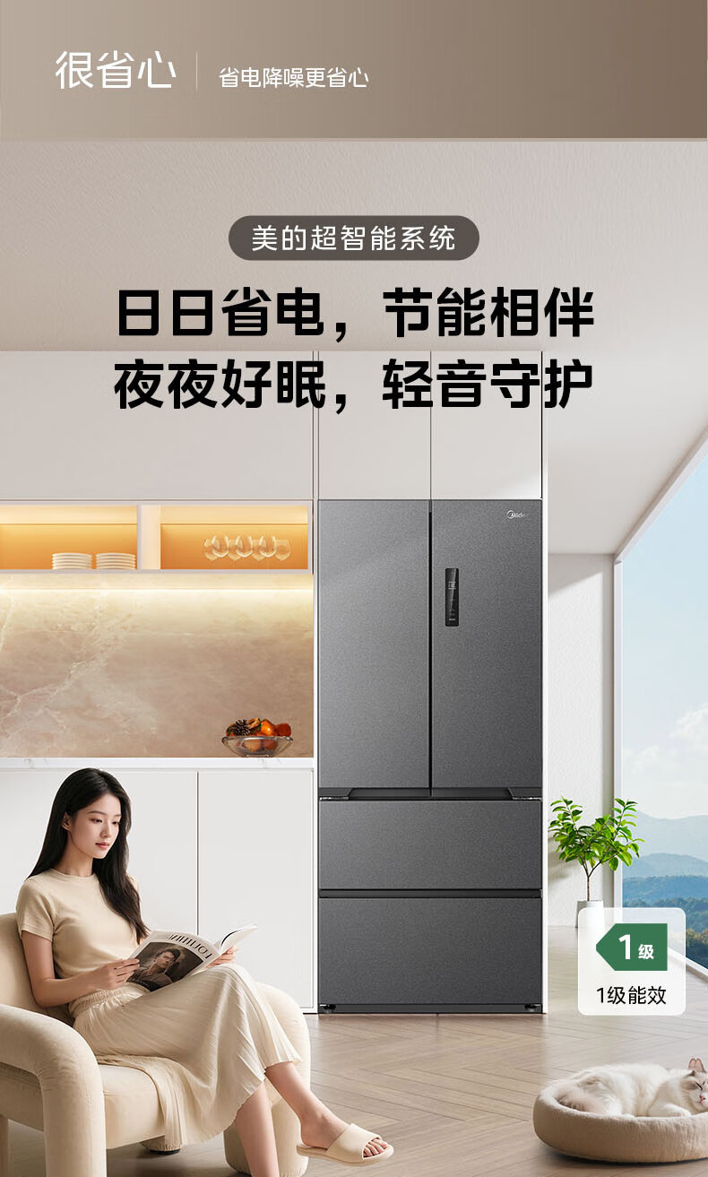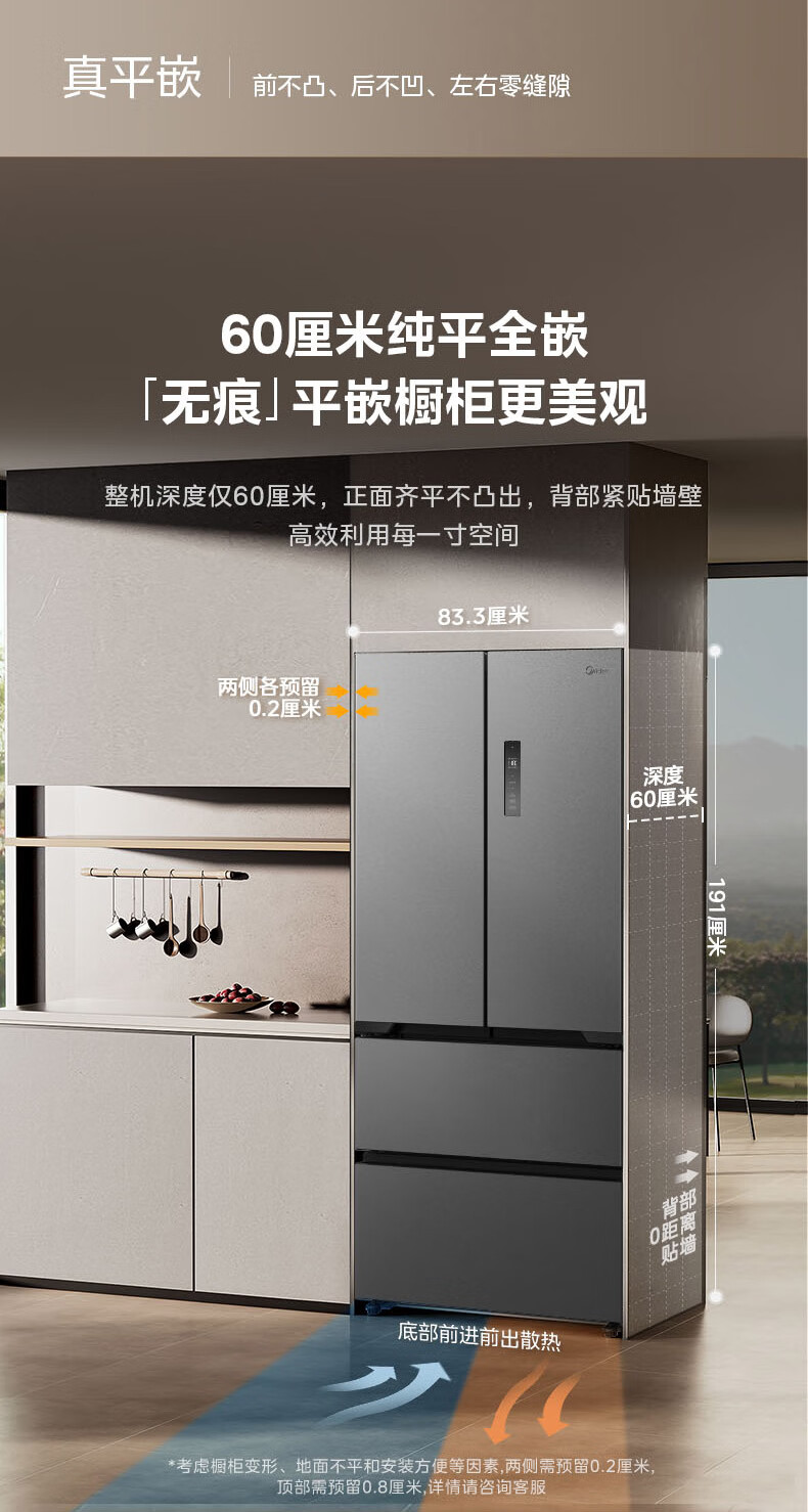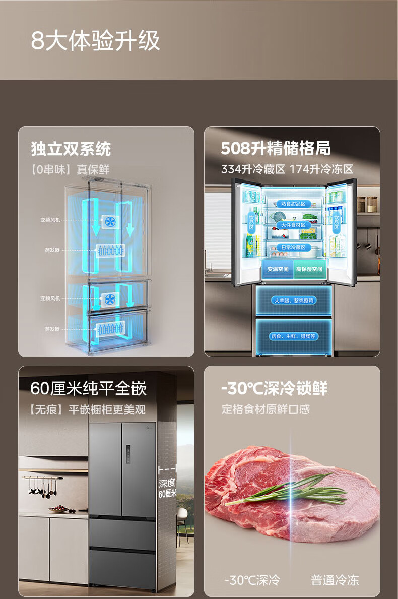 美的(Midea)508嵌入系列508升法式多门冰箱双系统超薄零嵌入一级能效抗菌净味大容量BCD-508WUFPZM(E)国家补贴