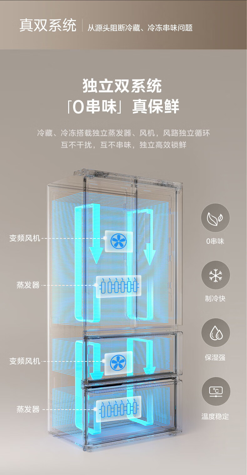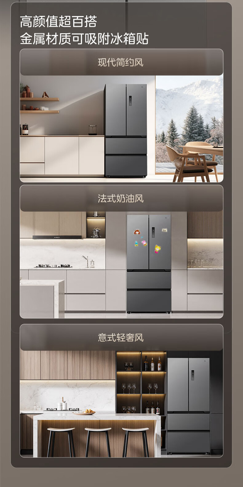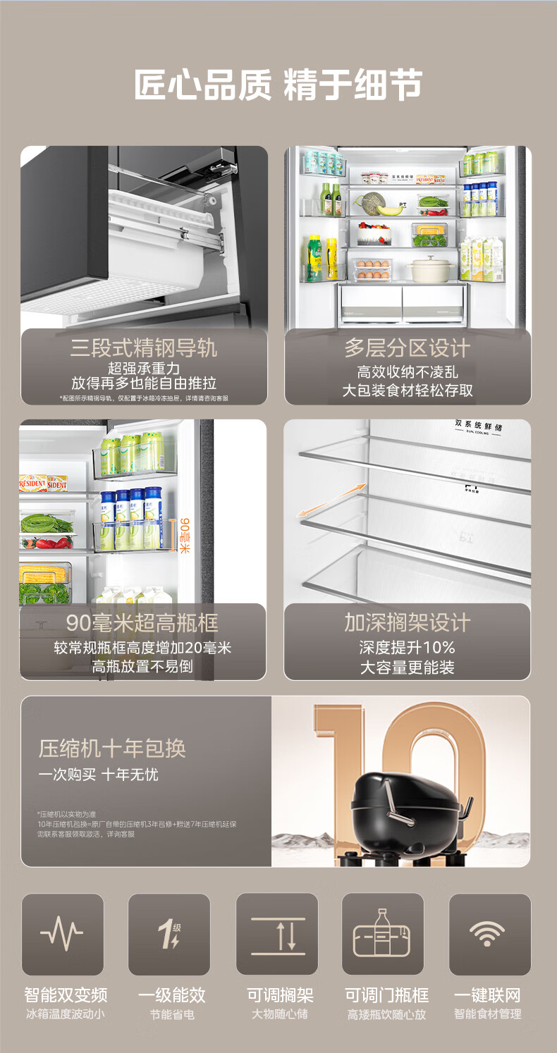 美的(Midea)508嵌入系列508升法式多门冰箱双系统超薄零嵌入一级能效抗菌净味大容量BCD-508WUFPZM(E)国家补贴