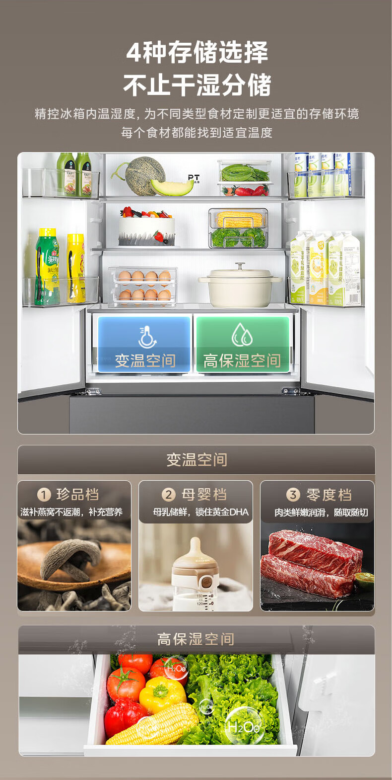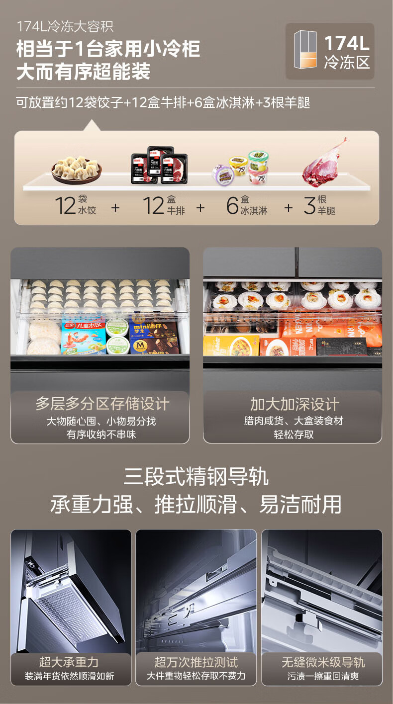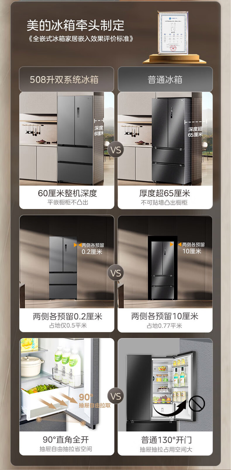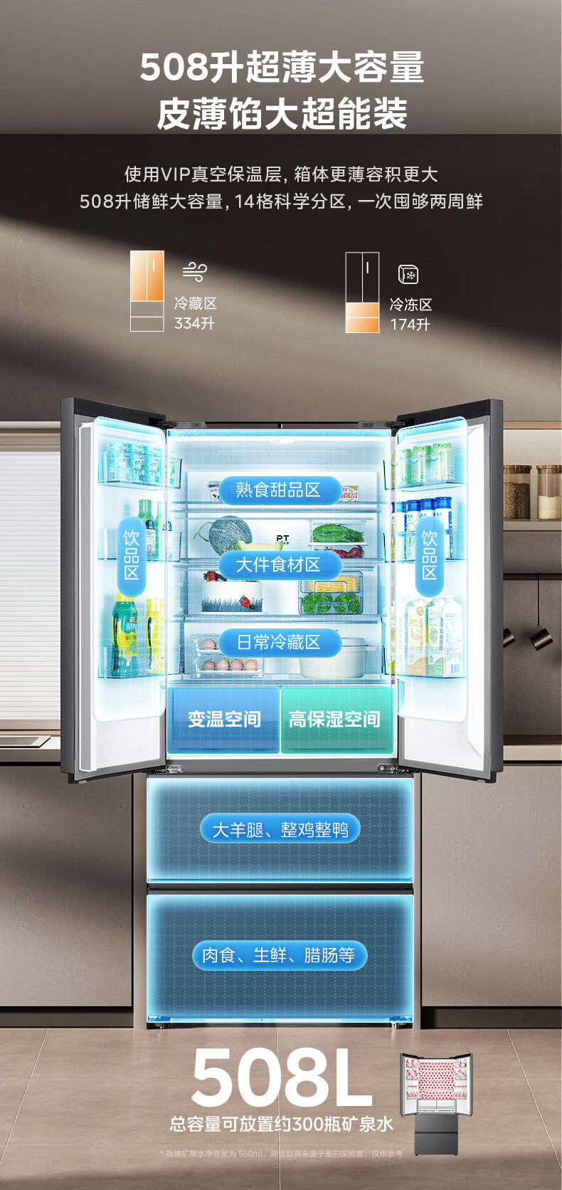 美的(Midea)508嵌入系列508升法式多门冰箱双系统超薄零嵌入一级能效抗菌净味大容量BCD-508WUFPZM(E)国家补贴