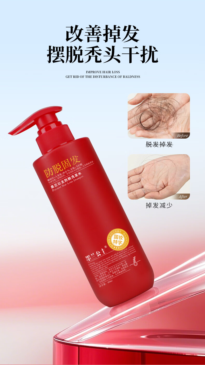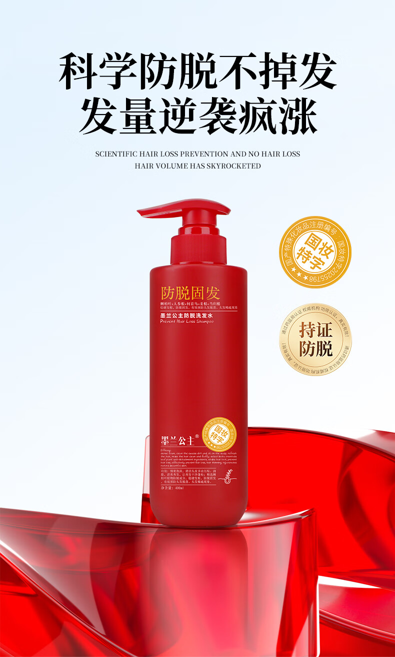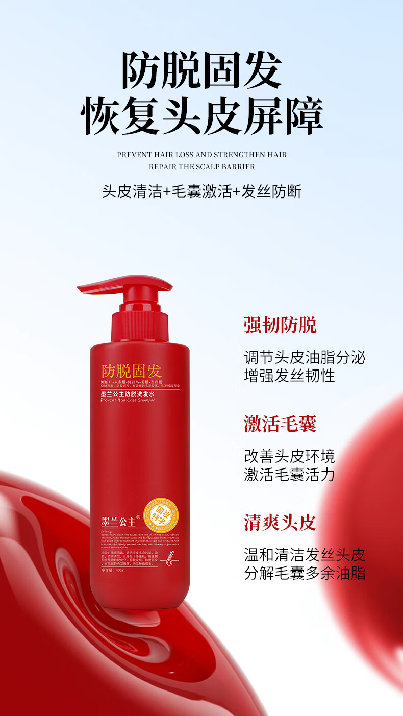 墨兰公主防脱固发洗发水多重功效侧柏叶新配方确保有效2025年红色强效新版 【红瓶加强版】防脱固发洗发水x2瓶 400ml*2瓶