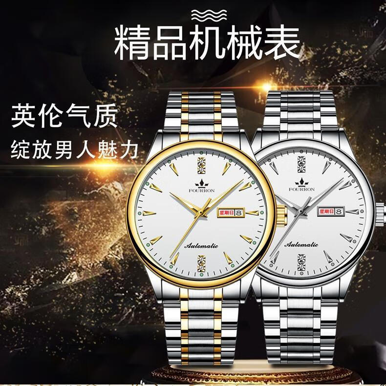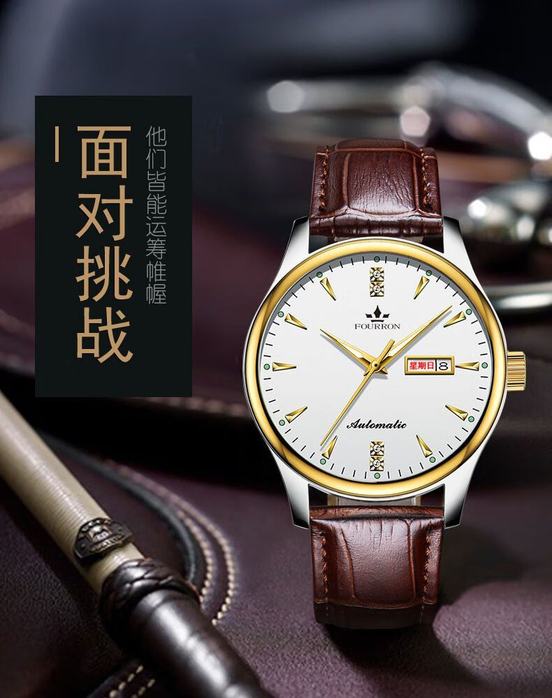艾浪2026新款双子星男士全自动机械表潮玩高端商务品牌腕表礼物高级感 炽玫金-灰色皮带【高定礼盒+送皮带】 42mm
