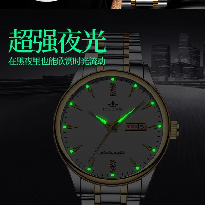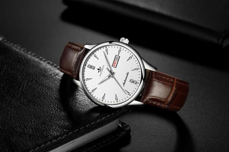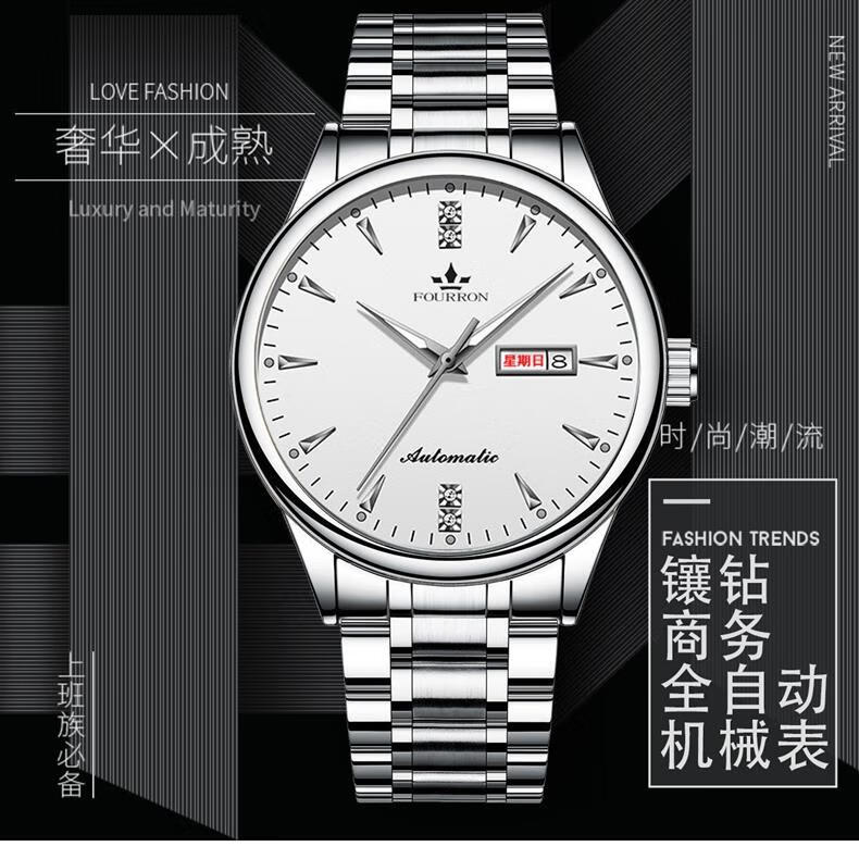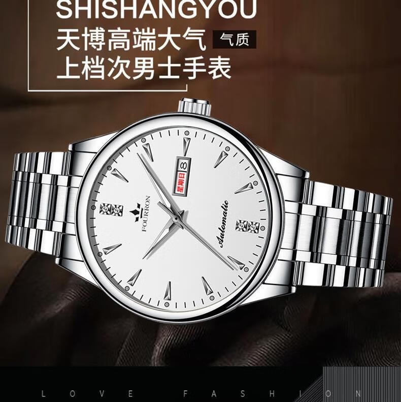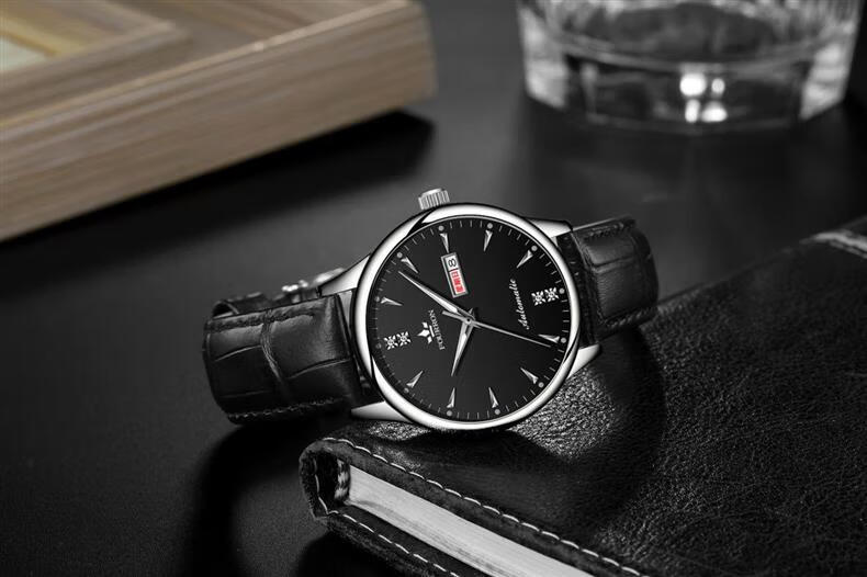 木阔鹦鹉螺多功能全自动机械表防水夜光钢带腕表时尚潮流商务复古礼物 银壳蓝面多功能款