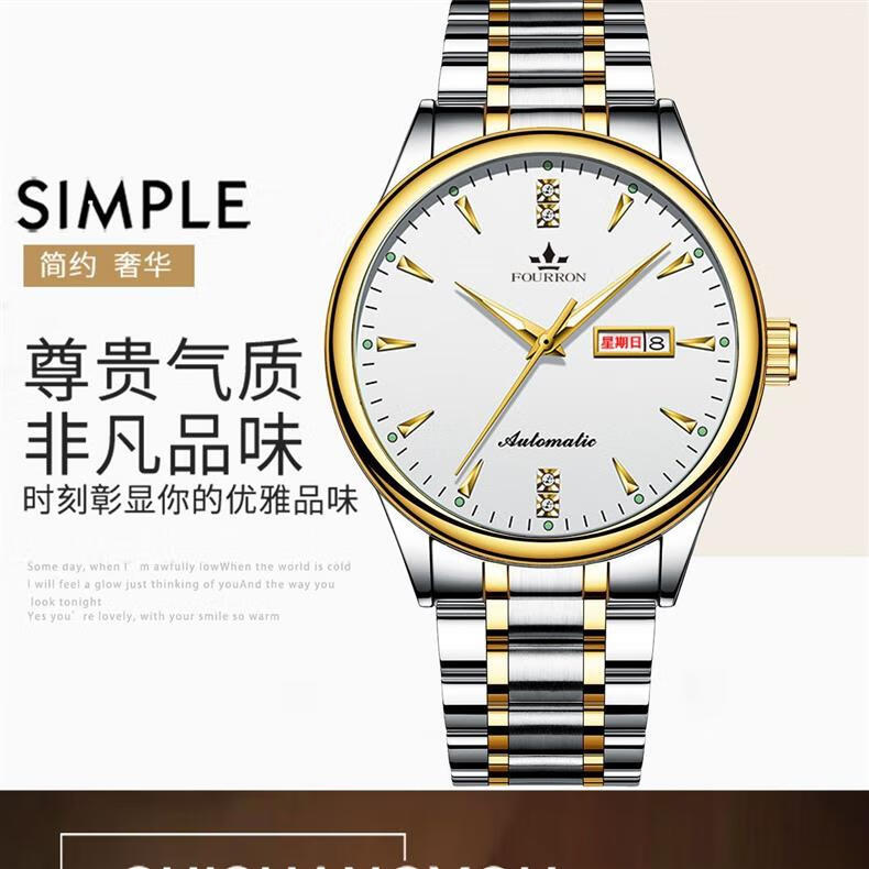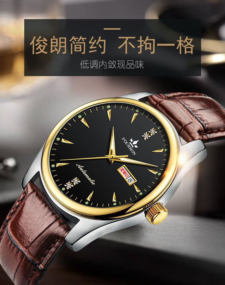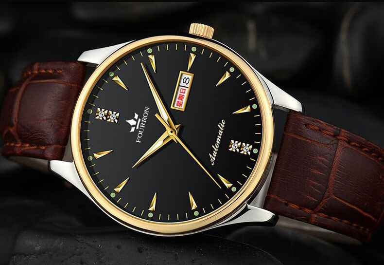 进口正品瑞士名牌高档手表男士机械表镂空全自动真钻名表十大防水 新款新推-间金黑咖啡皮带 J20