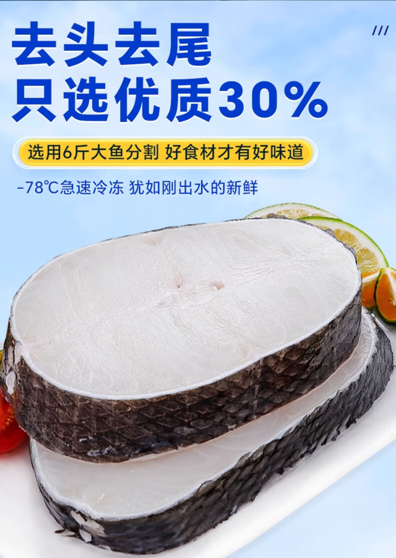 oeny俄罗斯鳕鱼鳕鱼特大中段深海鳕鱼雪鱼宝宝婴儿辅食银鳕鱼中段切片 精选中段去骨宝宝装 1000g