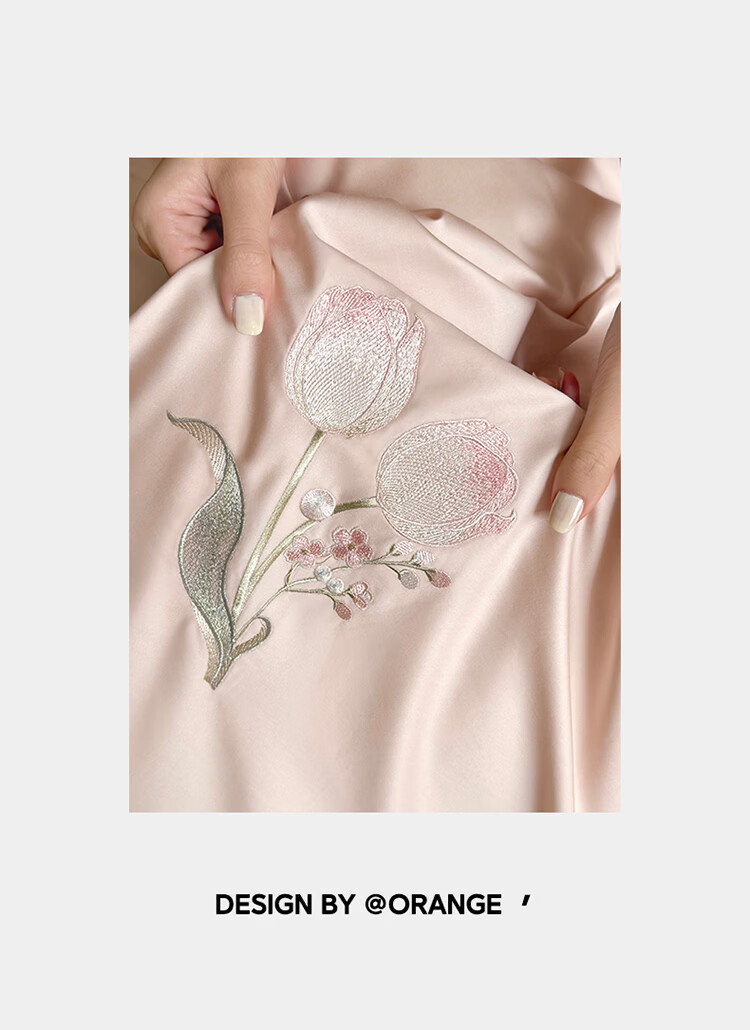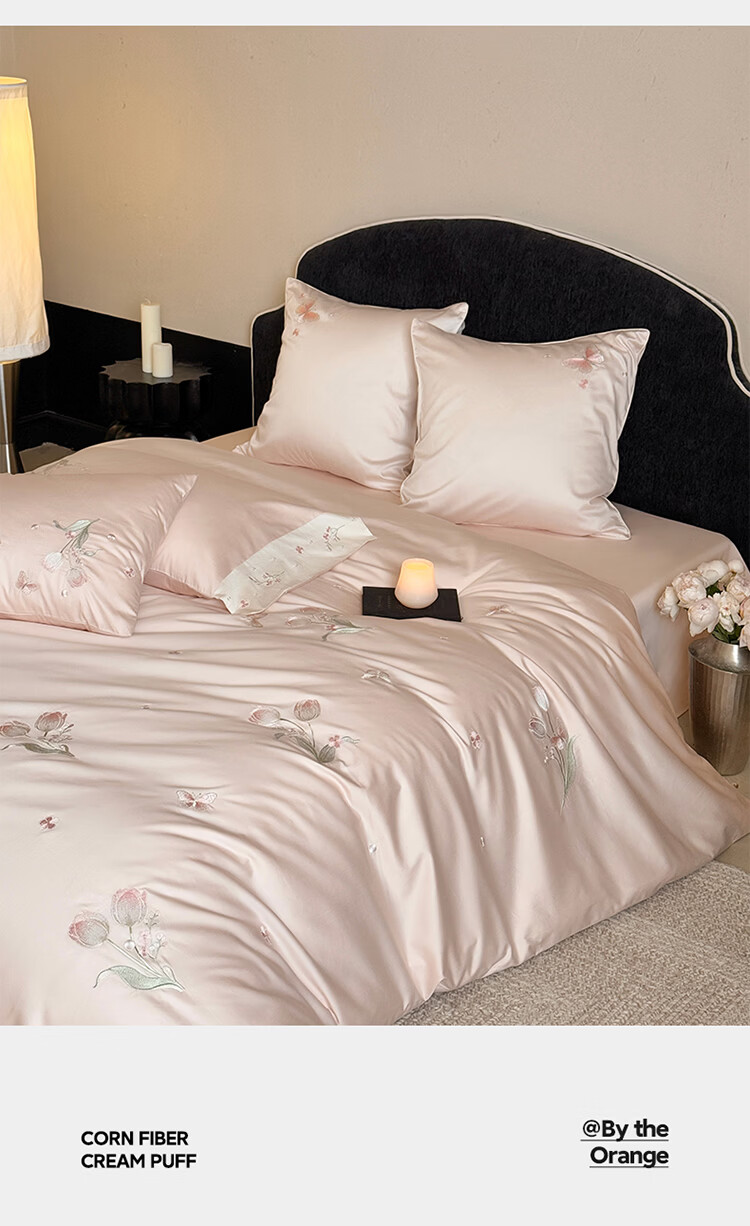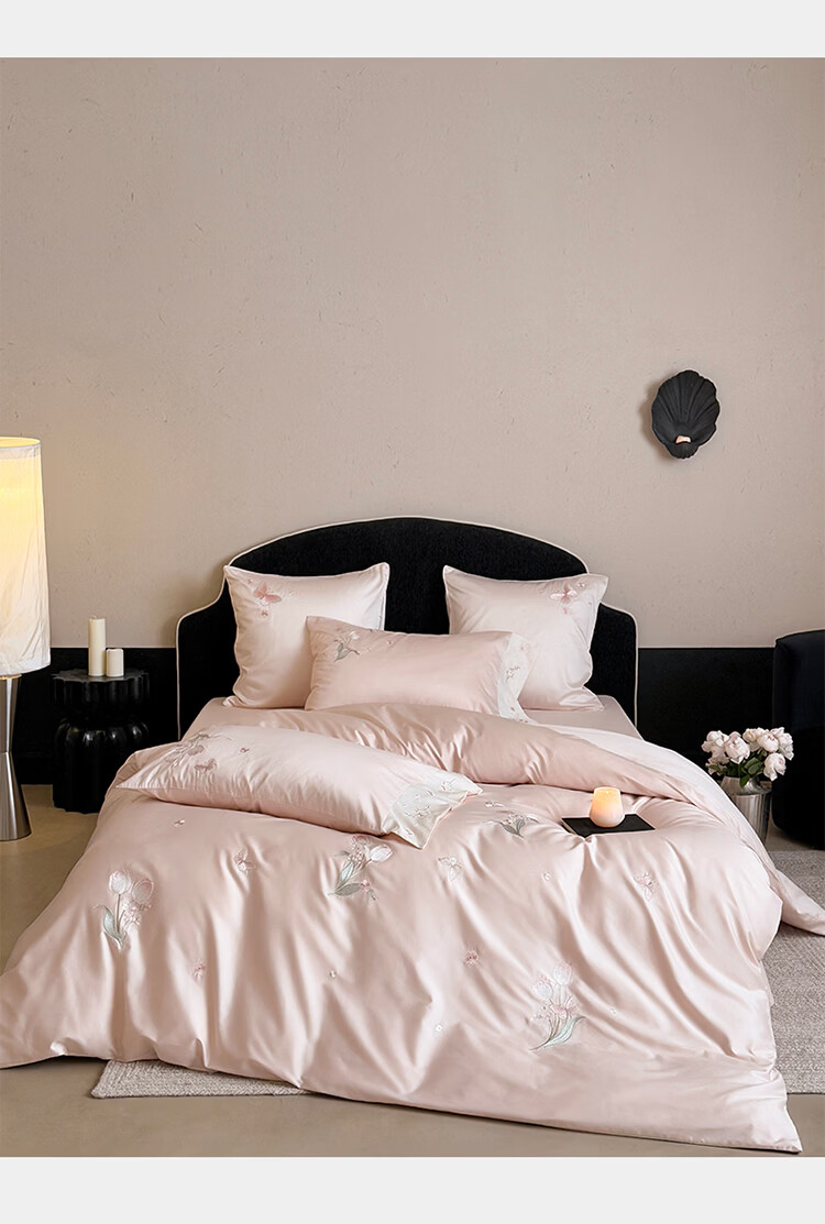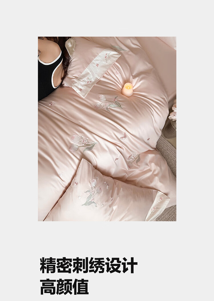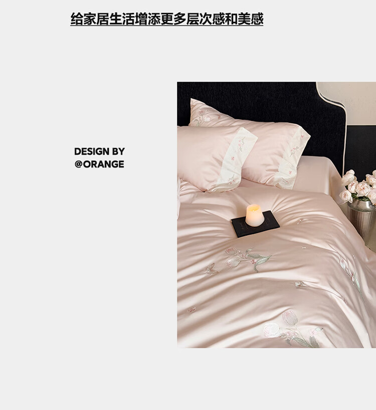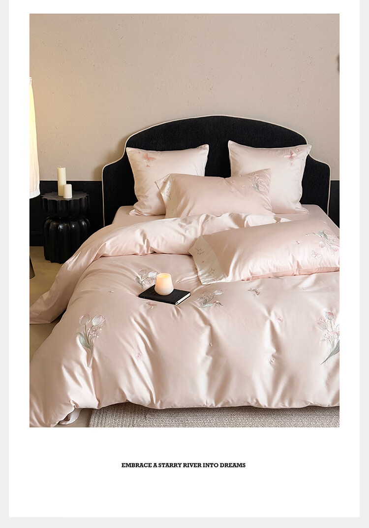 ROLAND LIVE长绒棉绣花四件套轻奢风被套床单全棉卧室三件套透气四季春季套件 LB 长绒棉套件-悦己如花粉色 2.0米床 床单款 【被套220*240cm】