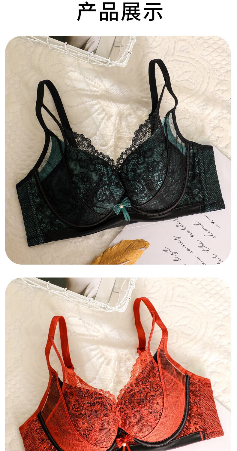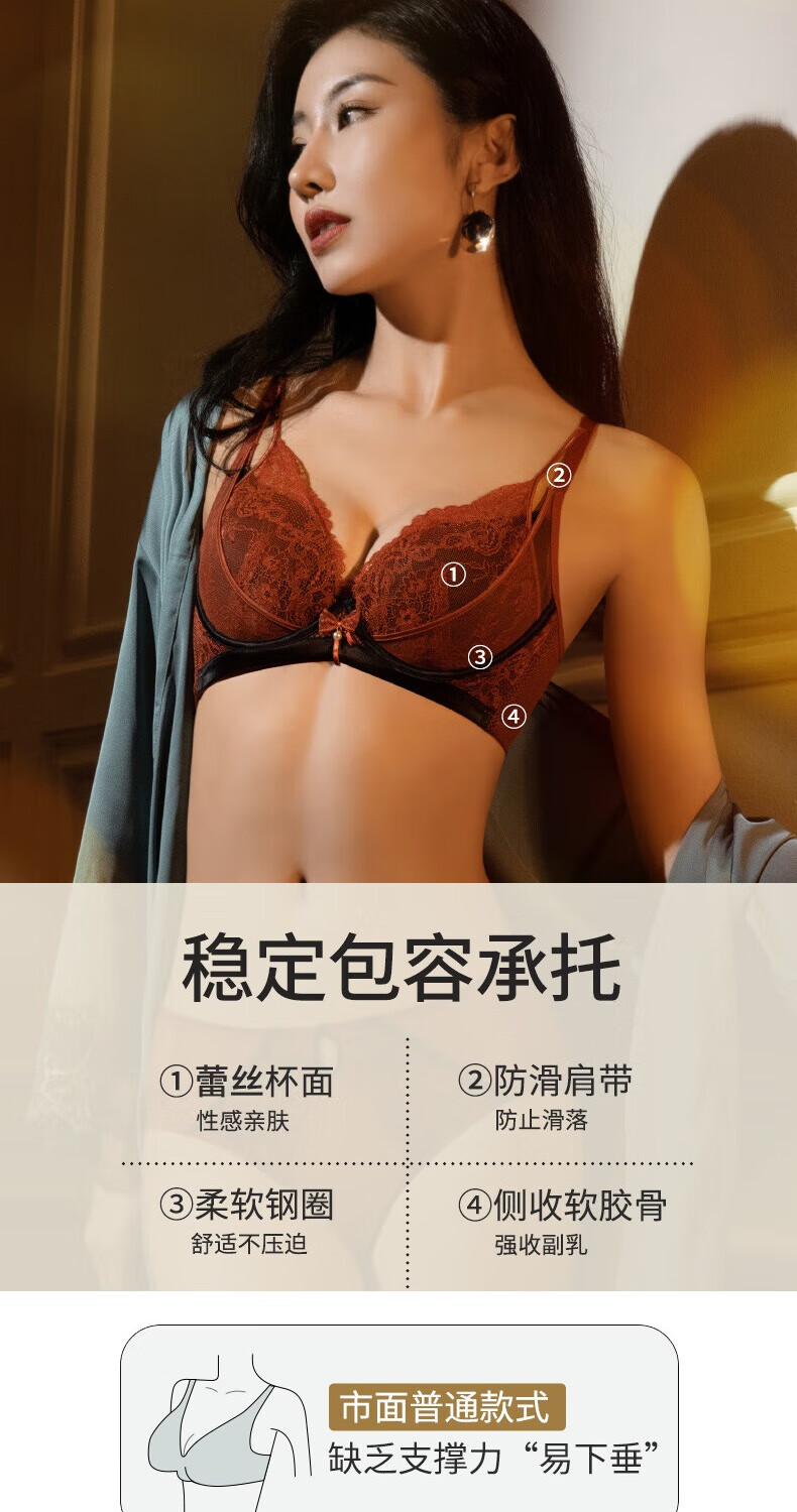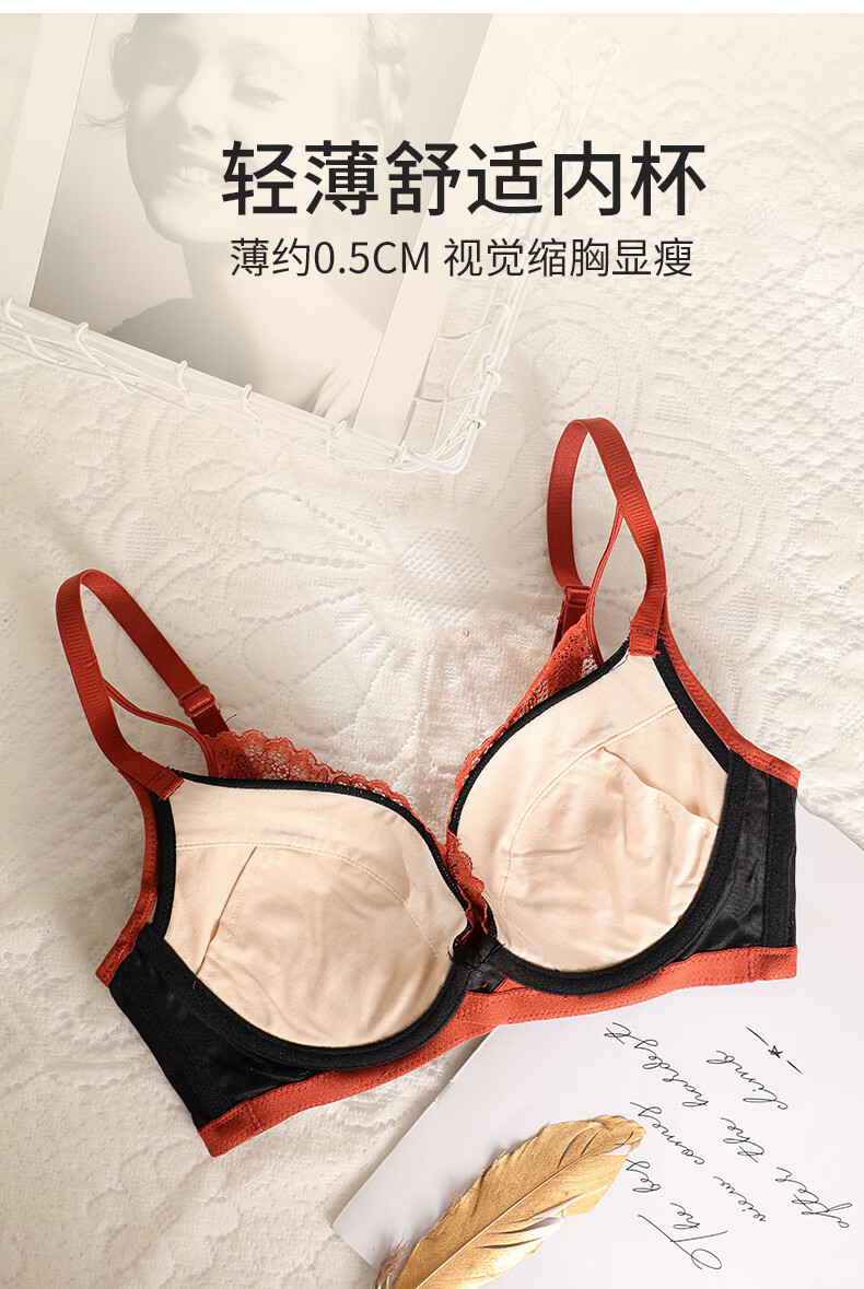 奥维丝丽大胸显小胸罩法式性感内衣女夏季中薄款聚拢文胸软钢圈上托有型 遐想黑 85C