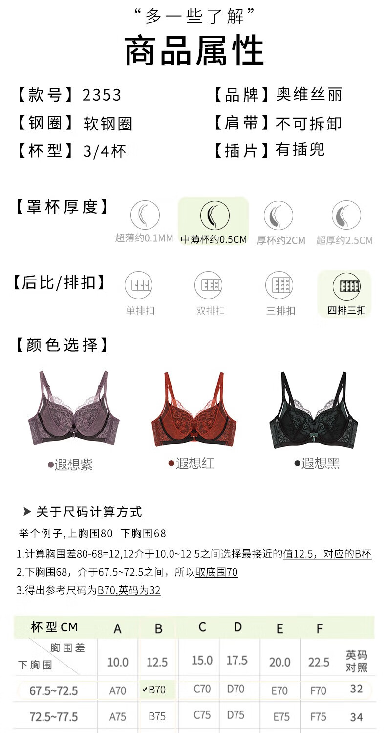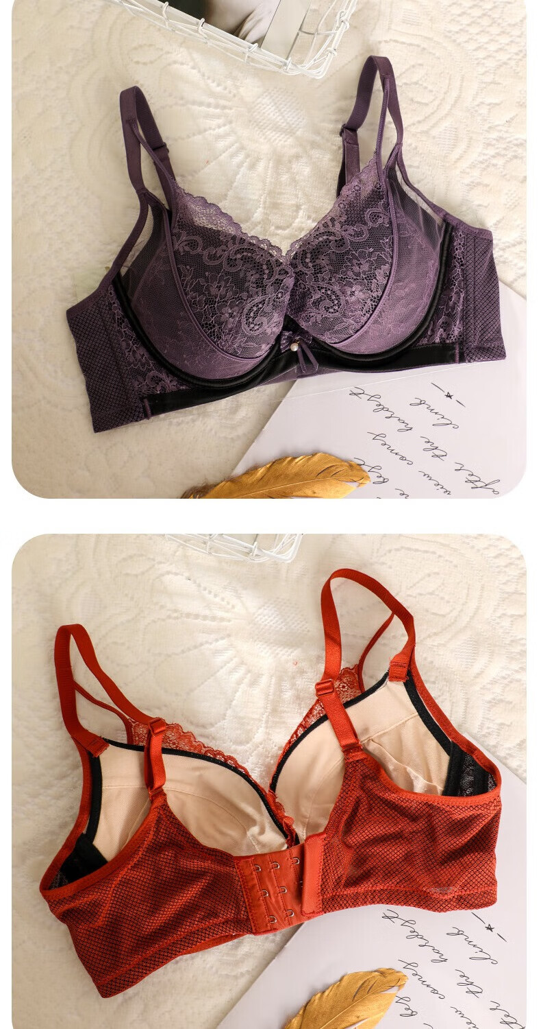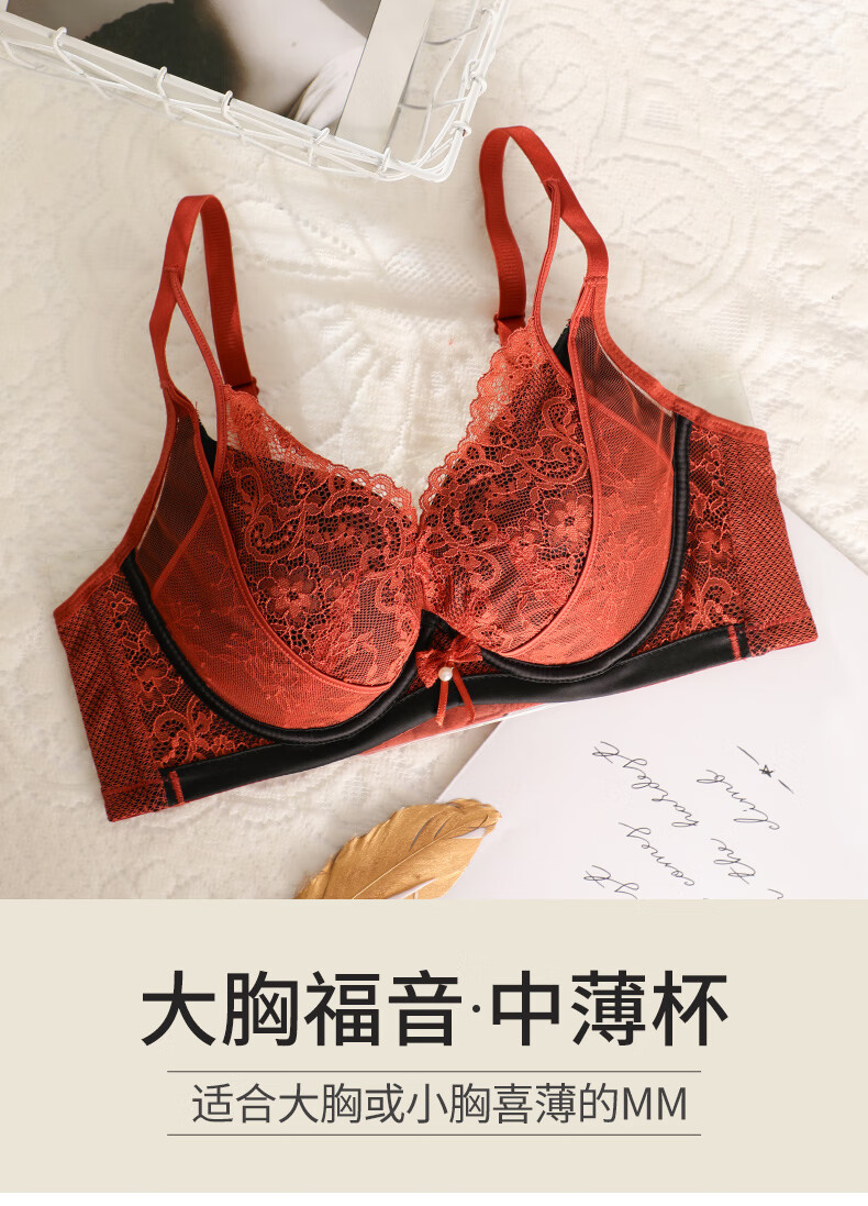 奥维丝丽大胸显小胸罩法式性感内衣女夏季中薄款聚拢文胸软钢圈上托有型 遐想黑 85C