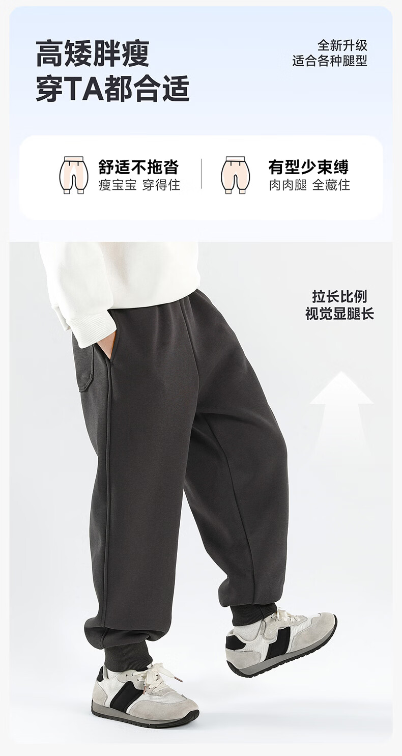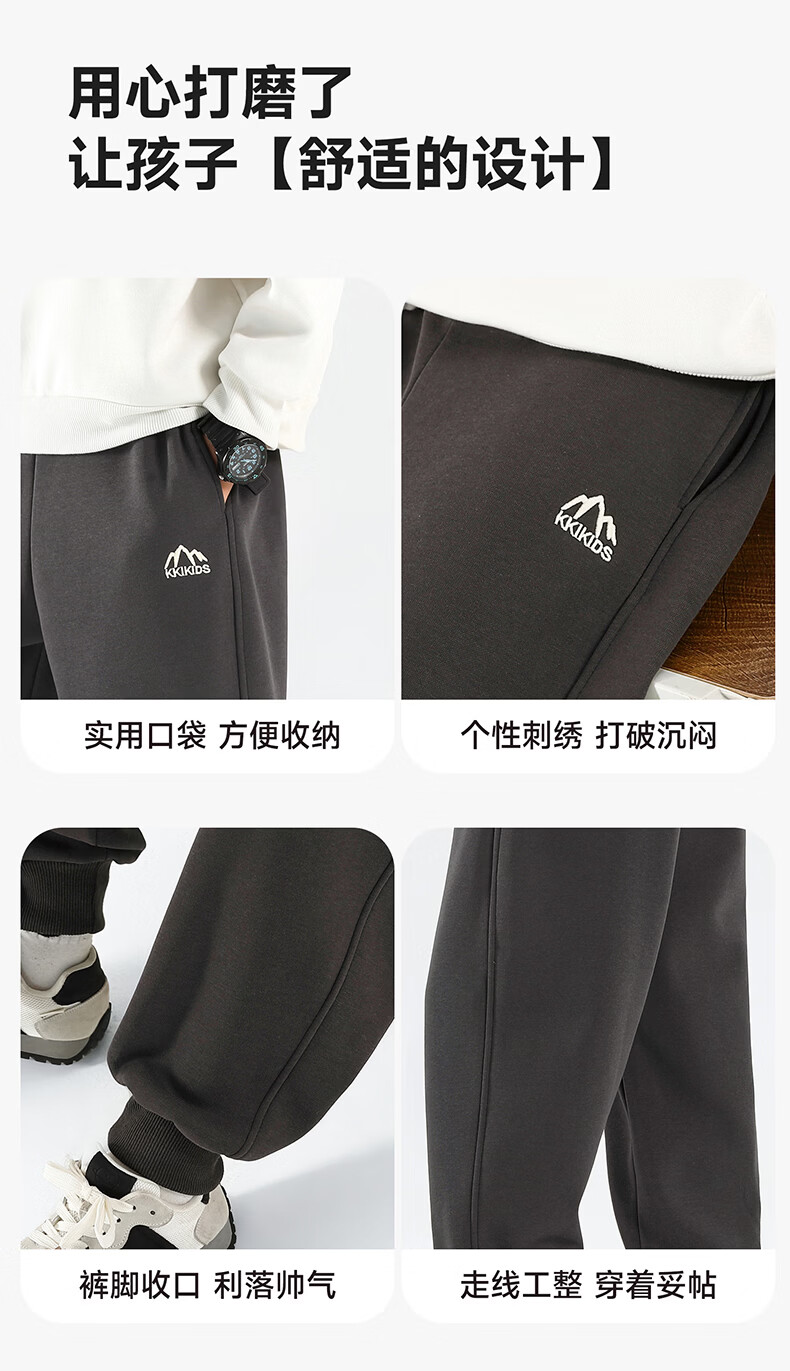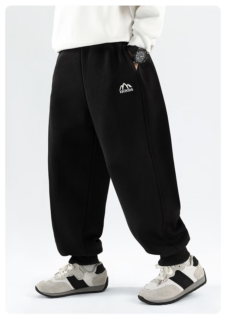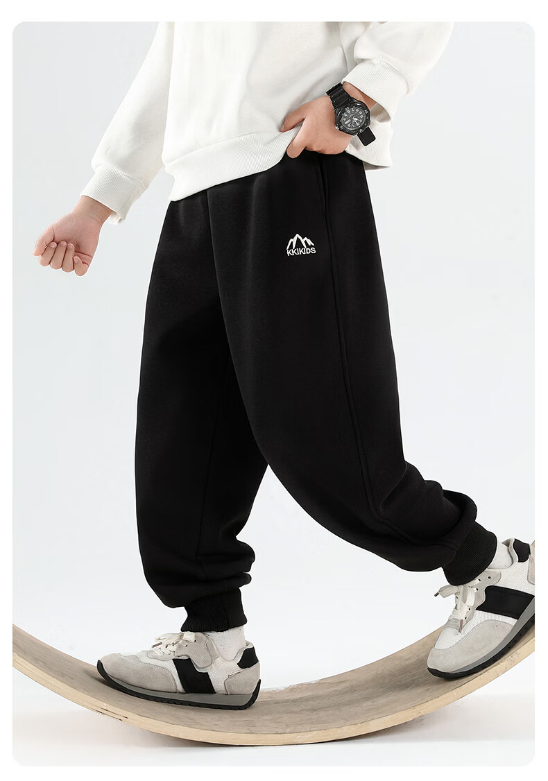 雪中飞童装男童运动裤春秋儿童校园卫裤束脚裤2026春装新款大童裤子 黑色 130