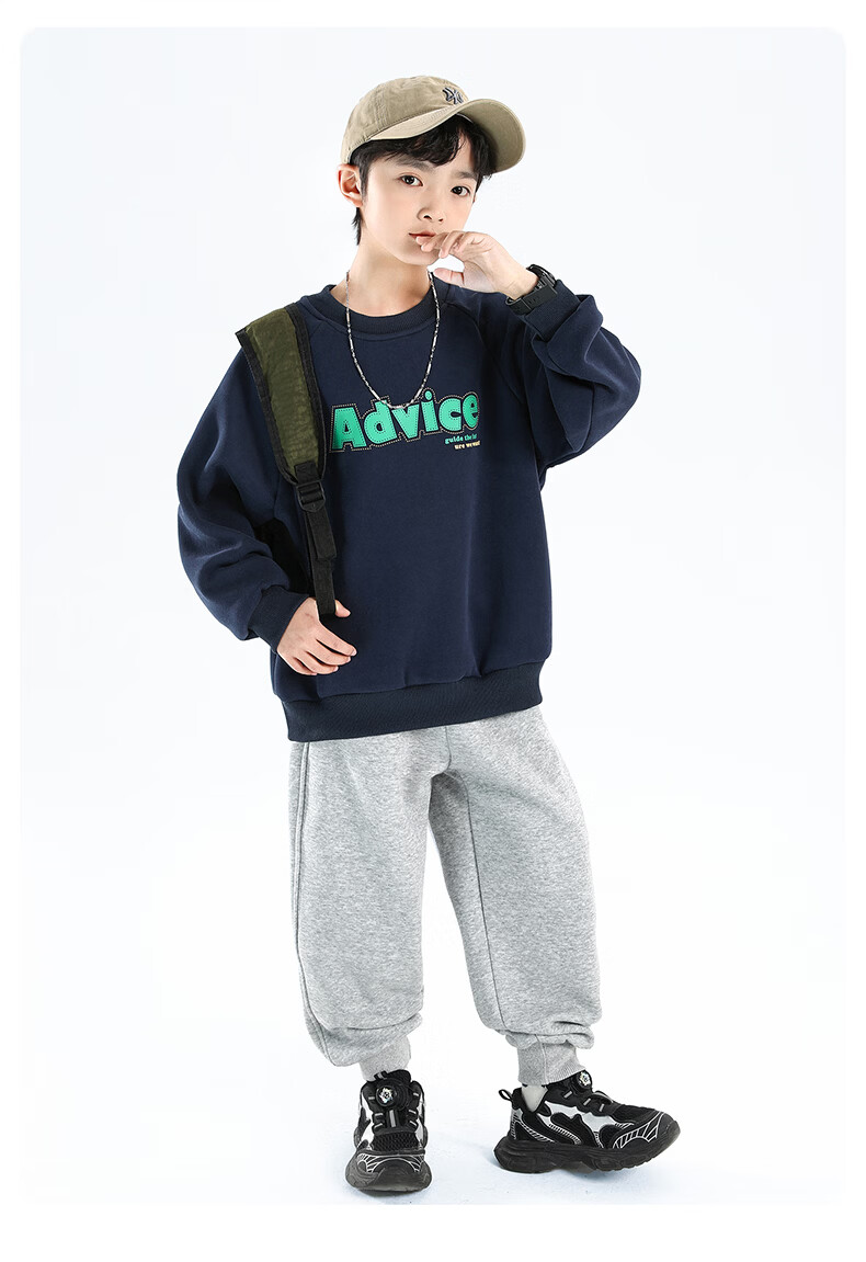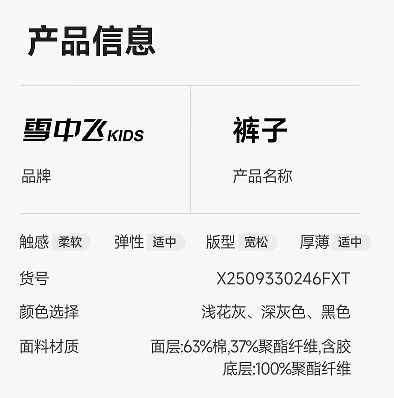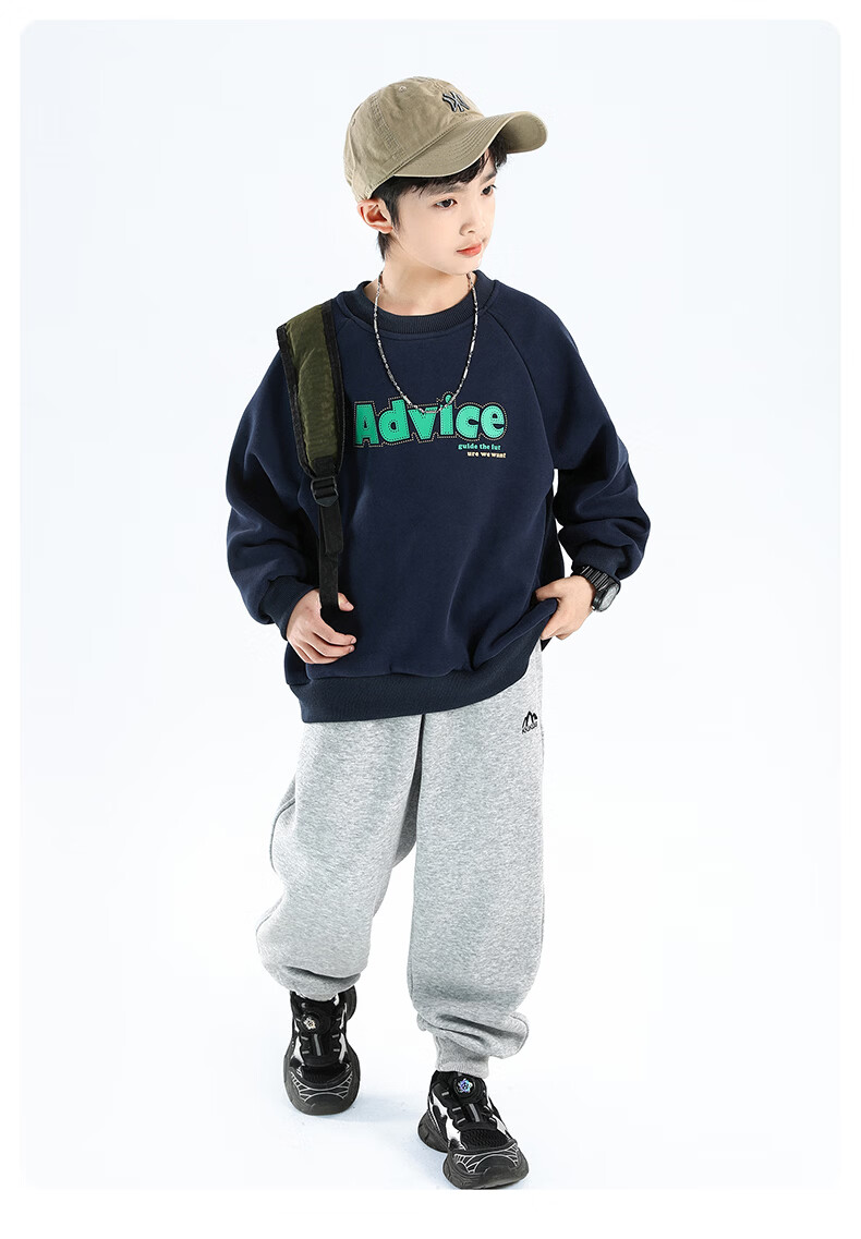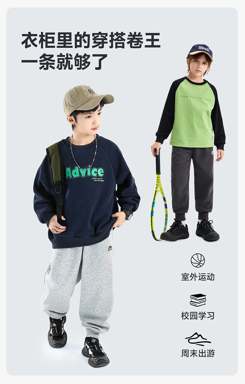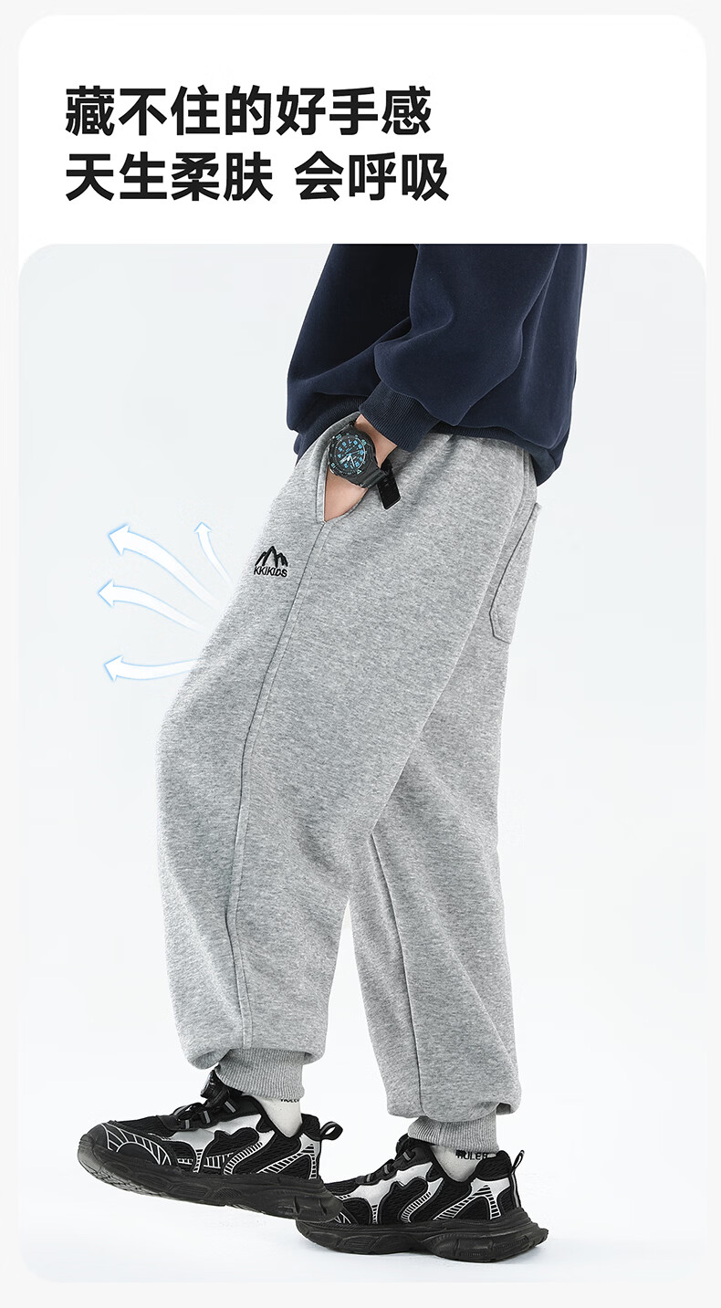 雪中飞童装男童运动裤春秋儿童校园卫裤束脚裤2026春装新款大童裤子 黑色 130