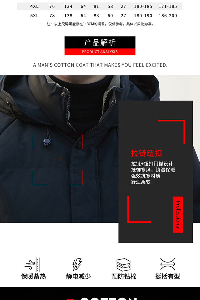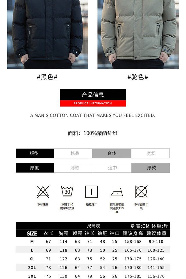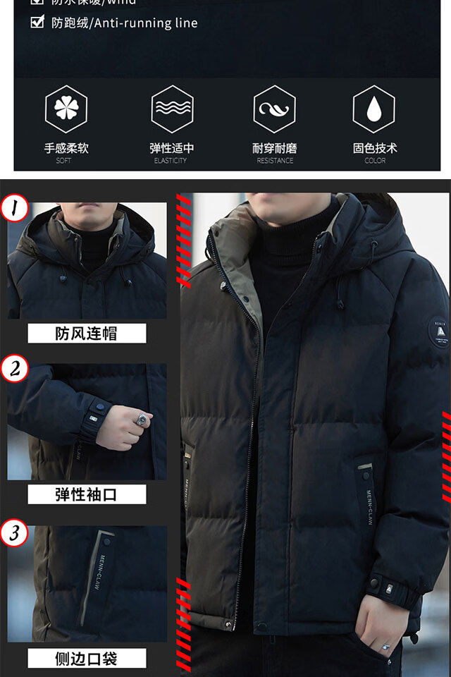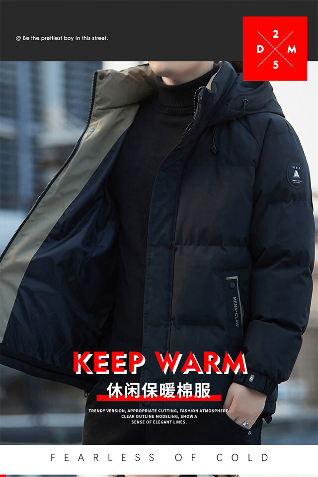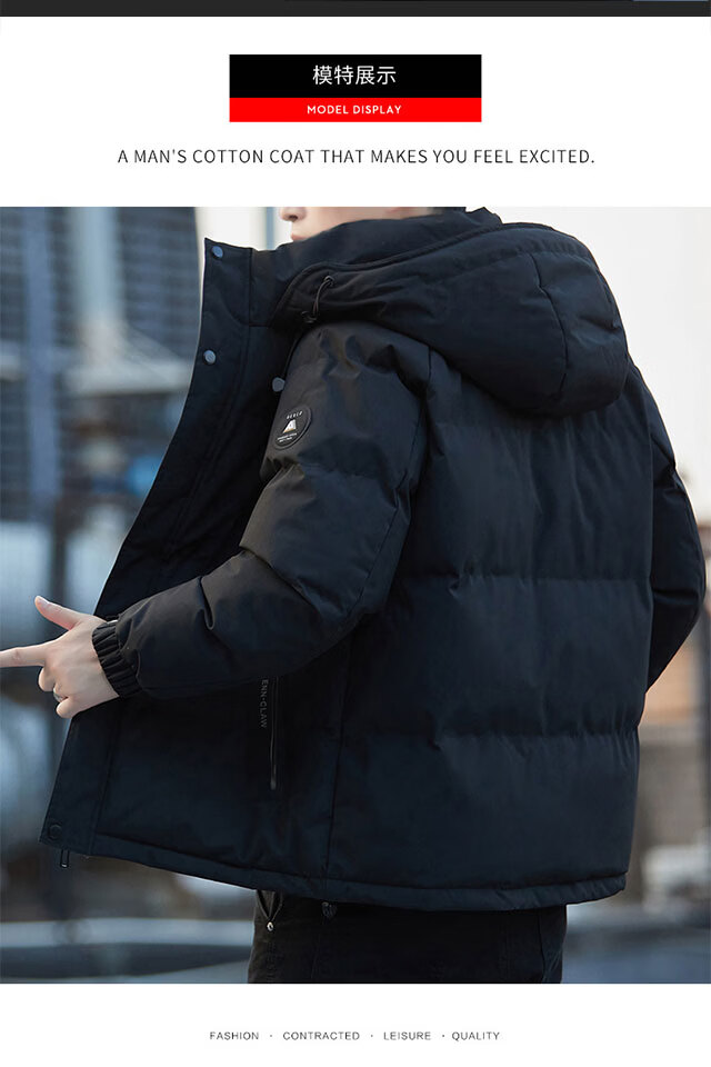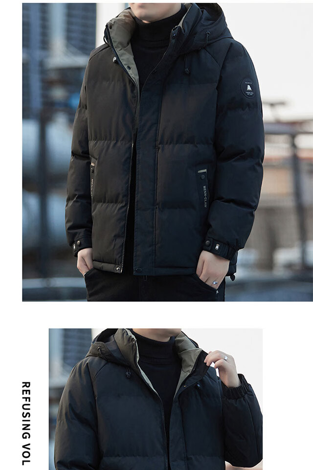 啄木鸟(TUCANO)棉衣外套男秋冬季新款加厚保暖棉袄上衣男装休闲百搭连帽棉服男士 黑(加厚) M (重90-110斤高158-168)