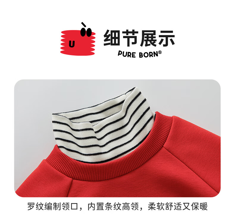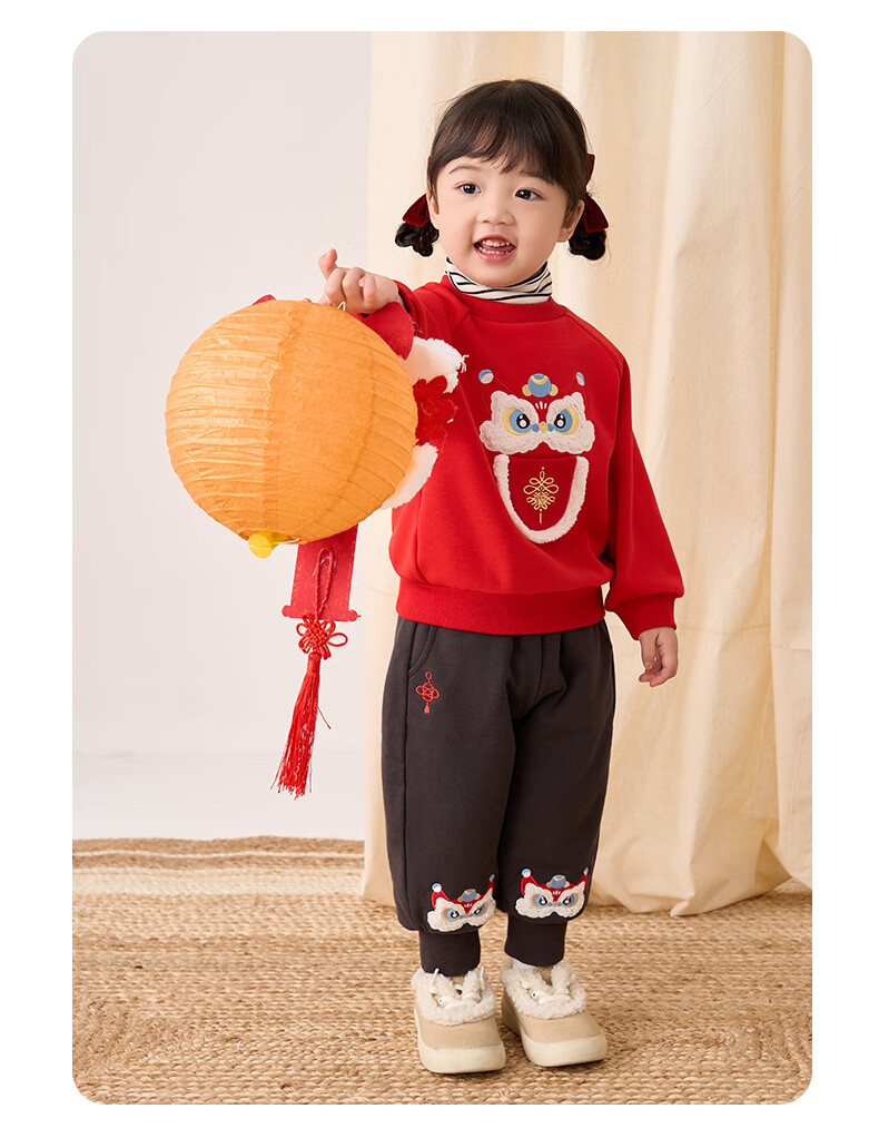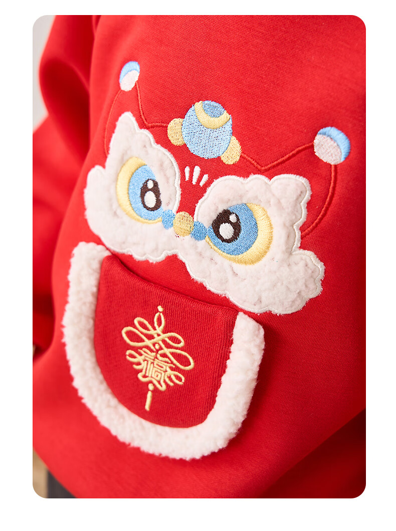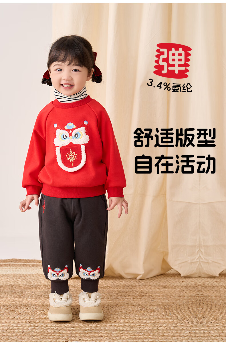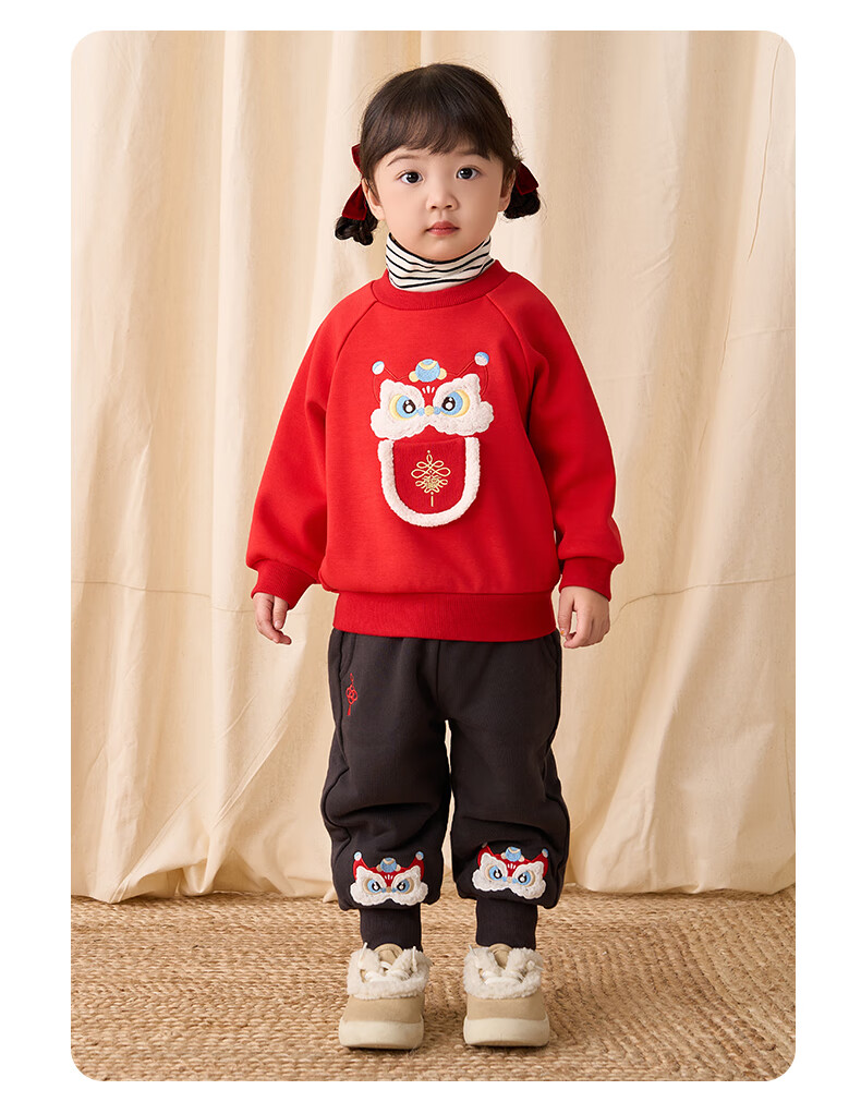 博睿恩(Pureborn)男女宝宝新年卫衣秋冬新款婴童加绒保暖醒狮女孩拜年服 爆竹红 120