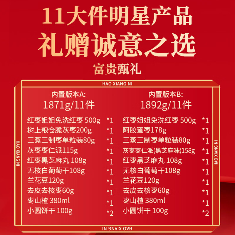 好想你_红枣坚果礼盒 休闲零食果干蜜饯新疆特产坚果高端大礼包年货送礼 【8大样】红枣健康礼1524g
