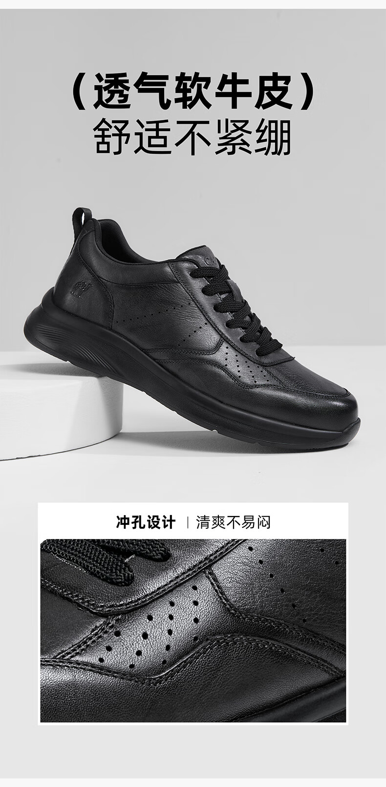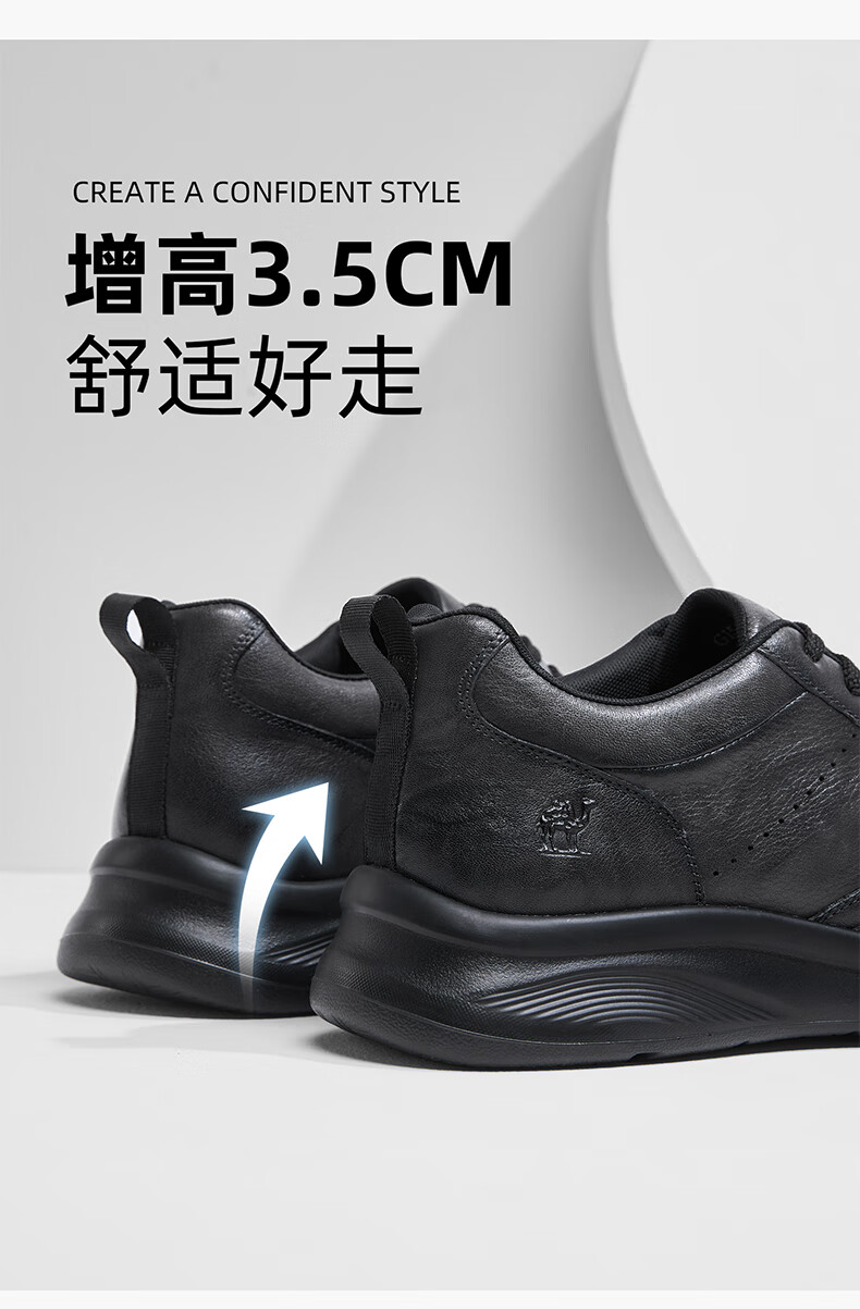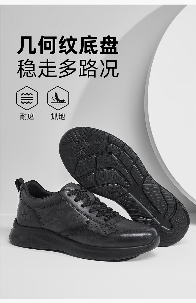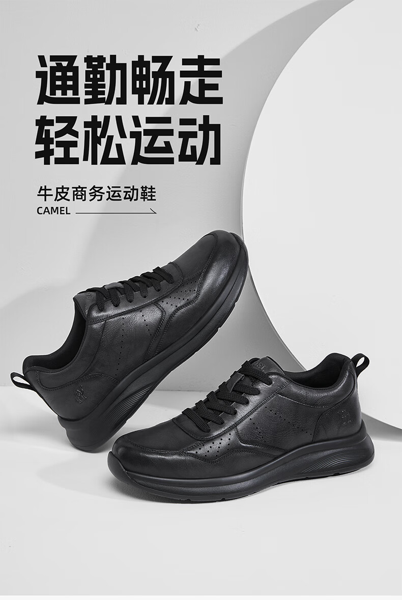骆驼(CAMEL)牛皮软底舒适通勤休闲轻商务运动皮鞋男士 G15A220076 黑色 42