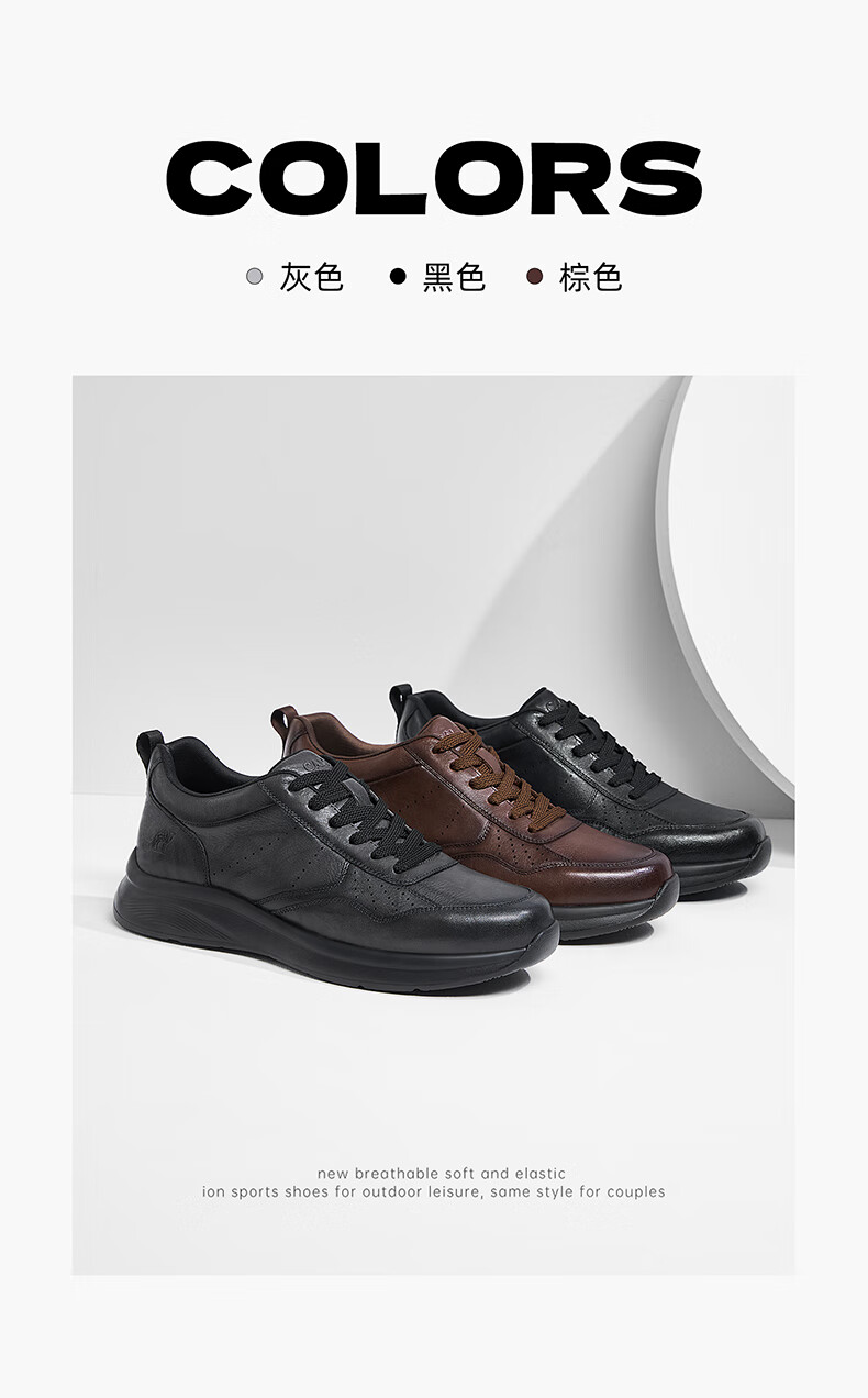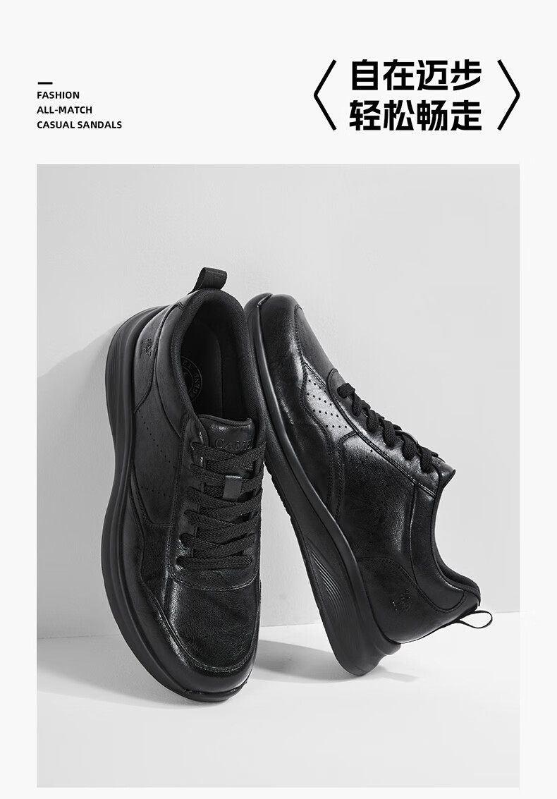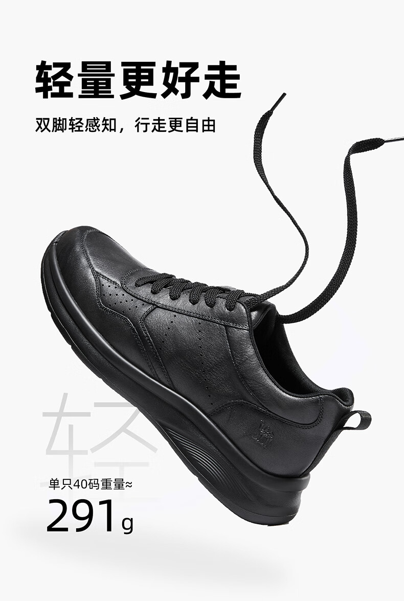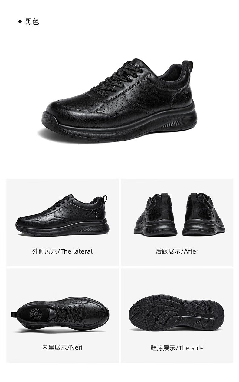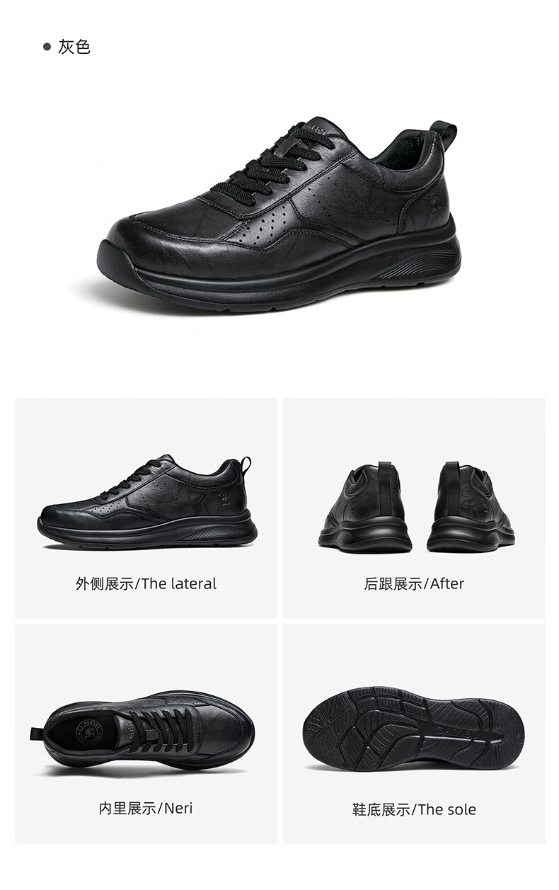 骆驼(CAMEL)牛皮软底舒适通勤休闲轻商务运动皮鞋男士 G15A220076 黑色 42