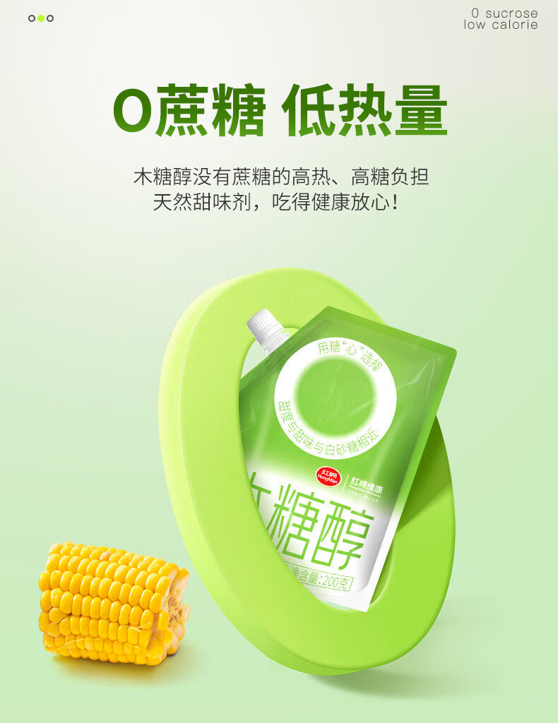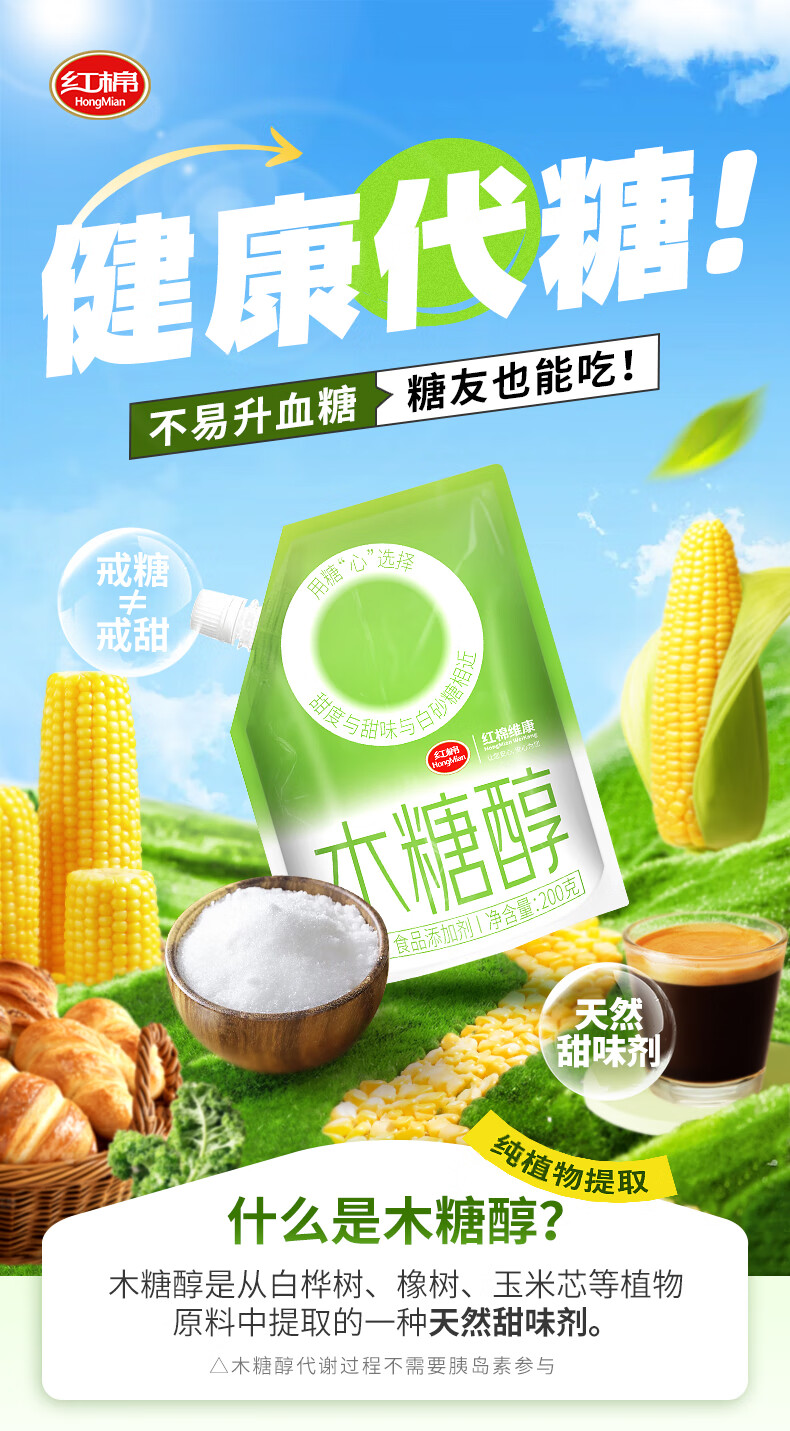 红棉木糖醇无蔗糖烘焙原料代替白砂糖健康代糖咖啡伴侣木糖醇200g