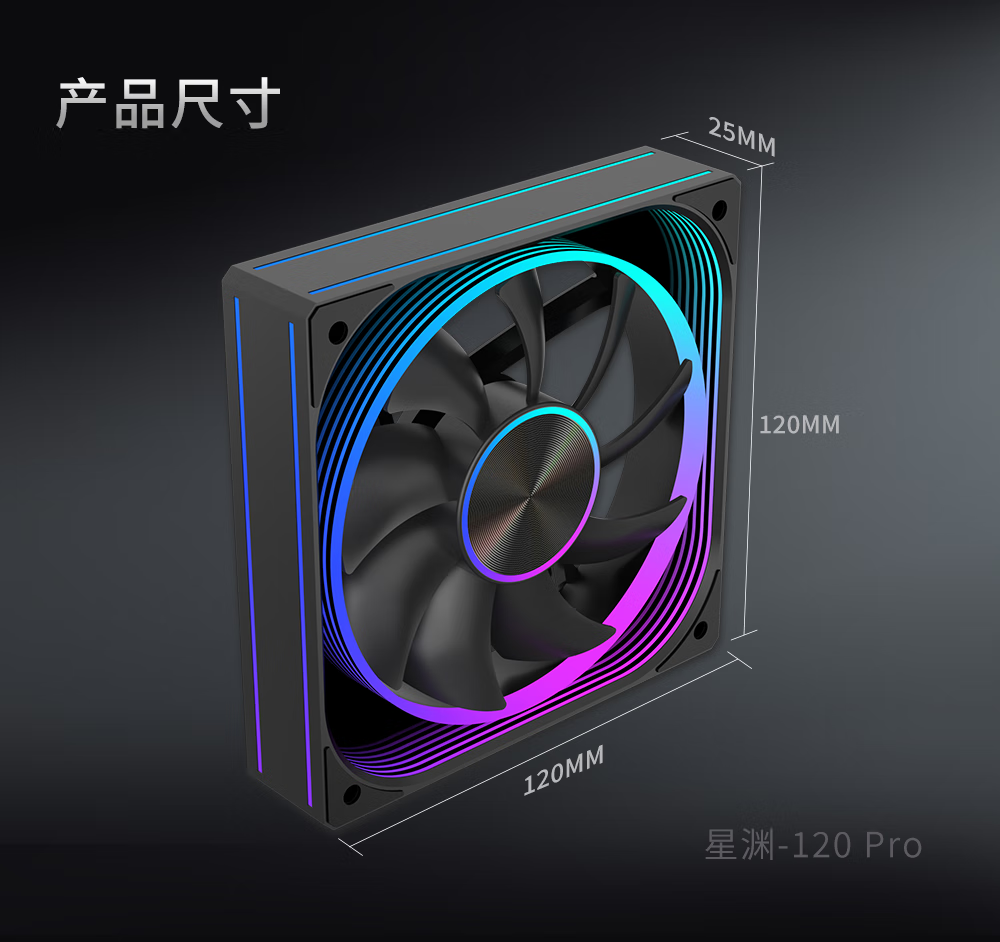雷利酷棱镜7PRORS12CM机箱风扇正反叶ARGB神光同步台式电脑主机大风量CPU水冷PWM智能温控静音散热风扇 星渊 RS 黑色正叶【正品盒装】