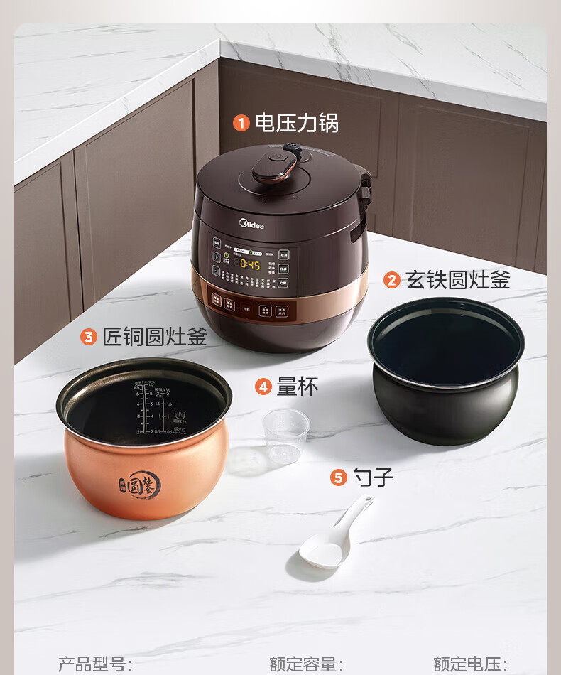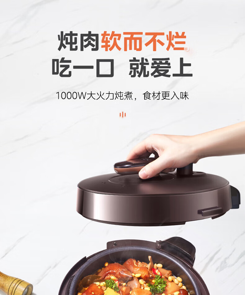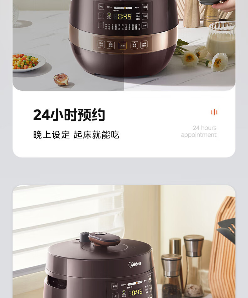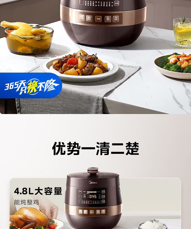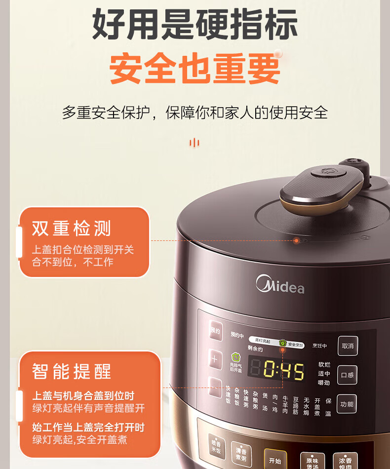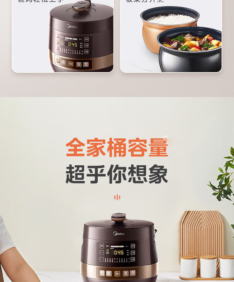 美的(Midea)高压浓香电压力锅家用大容量电高压锅4-5人高压电饭煲煮饭煲汤炖肉一锅双胆1000W火力15大功能菜单 能炖整鸡【匀火速热】 4.8L