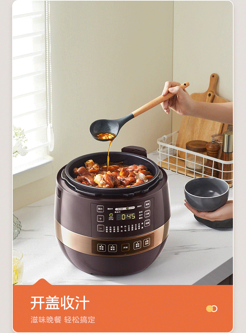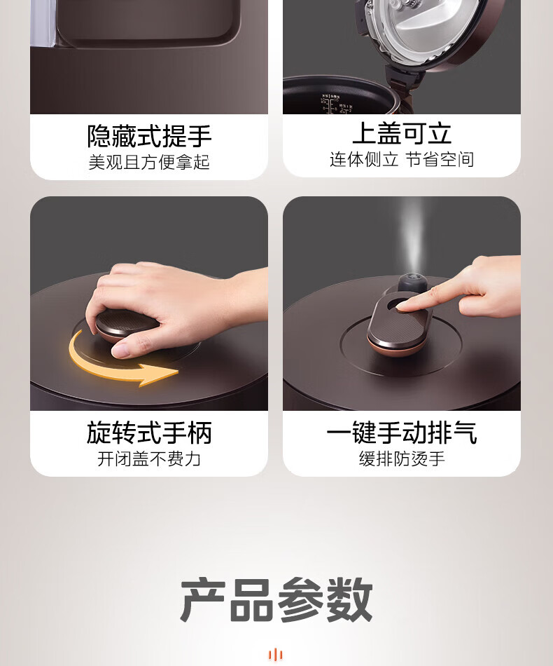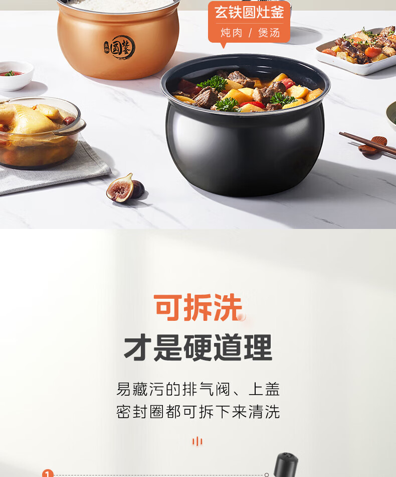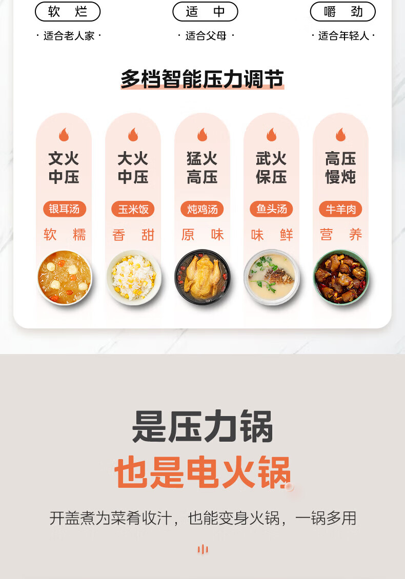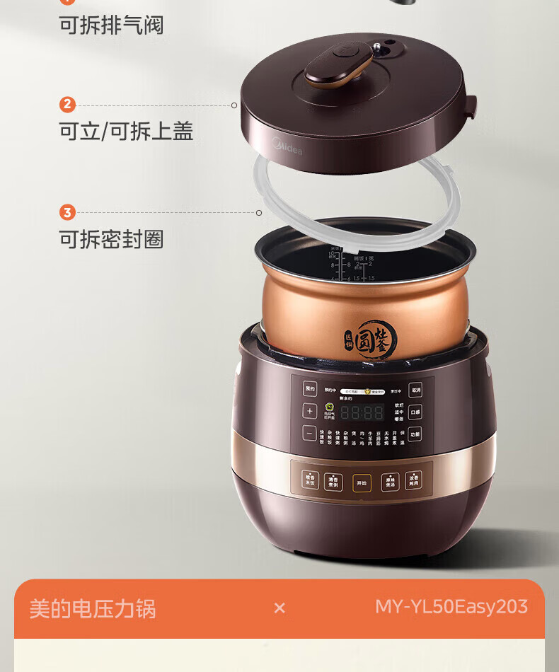 美的(Midea)高压浓香电压力锅家用大容量电高压锅4-5人高压电饭煲煮饭煲汤炖肉一锅双胆1000W火力15大功能菜单 能炖整鸡【匀火速热】 4.8L