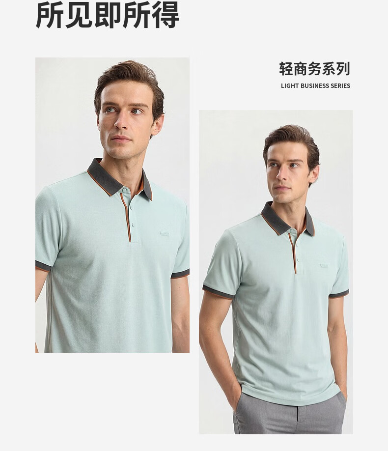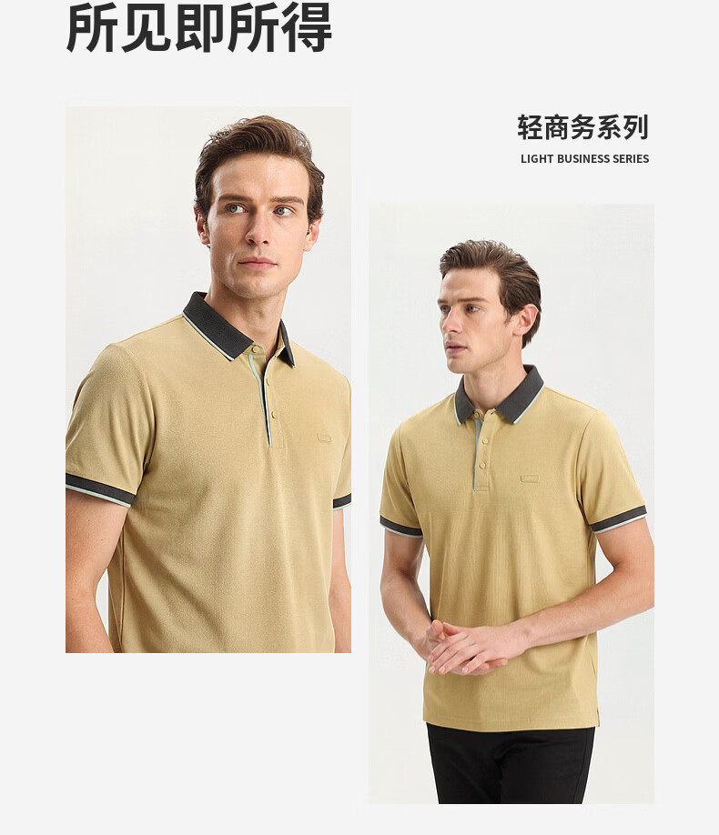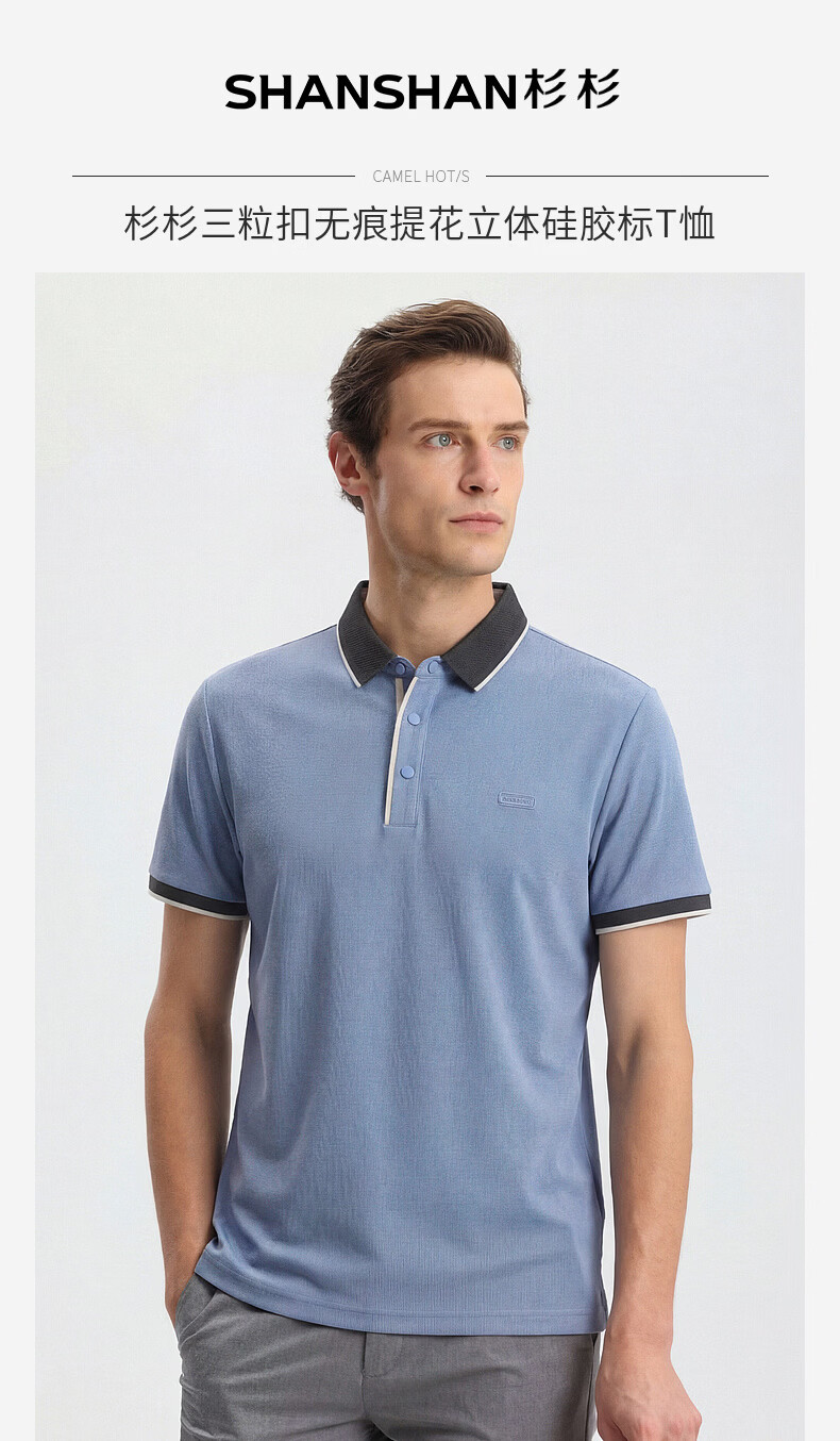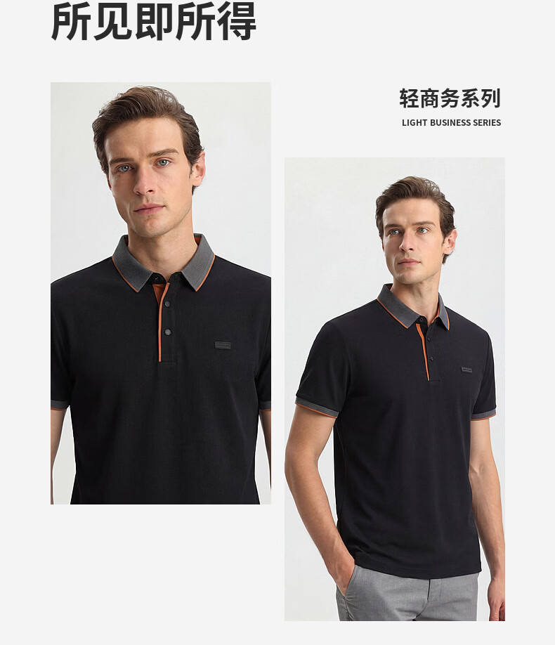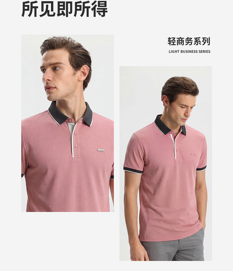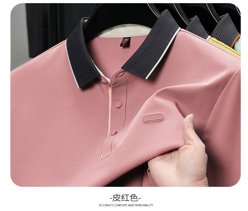 SHANSHAN杉杉【无痕商务休闲】短袖t恤男撞色翻领POLO衫锦氨夏季 皮红色 XL /180