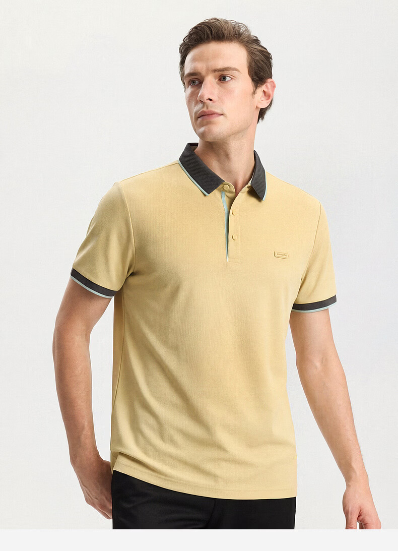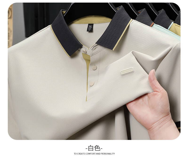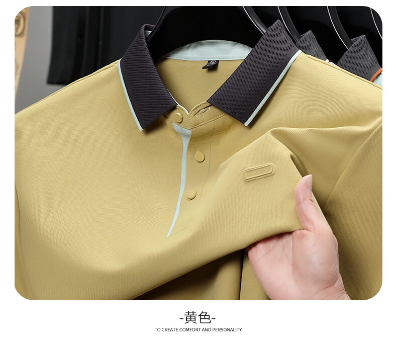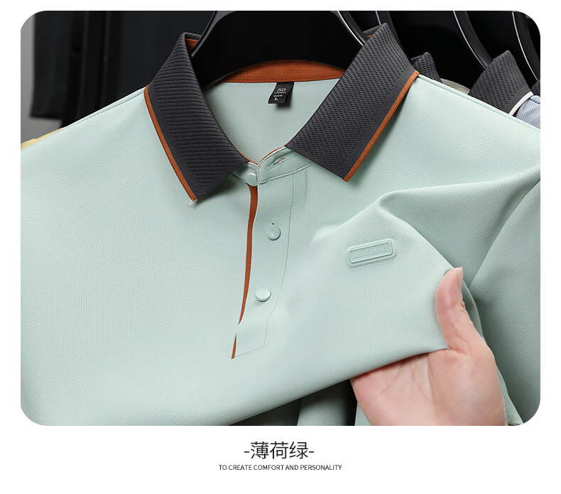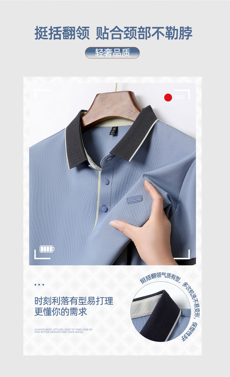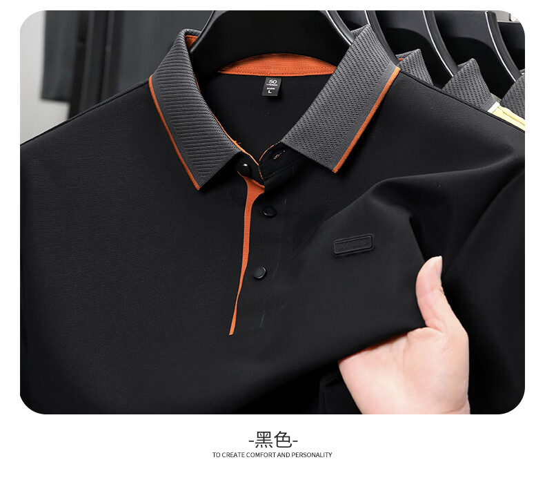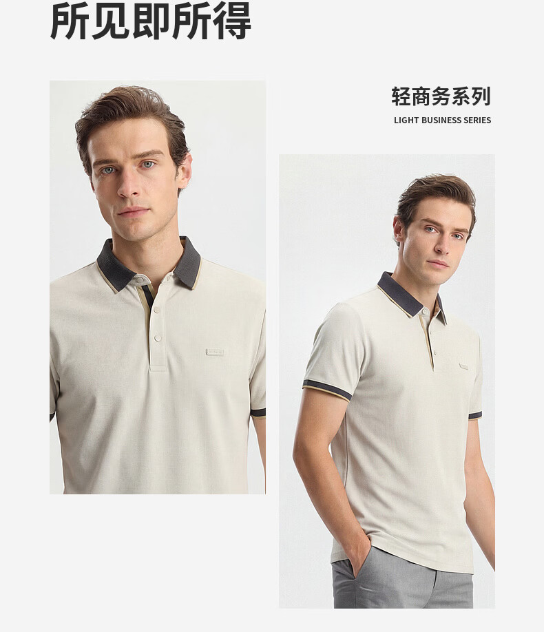 SHANSHAN杉杉【无痕商务休闲】短袖t恤男撞色翻领POLO衫锦氨夏季 皮红色 XL /180